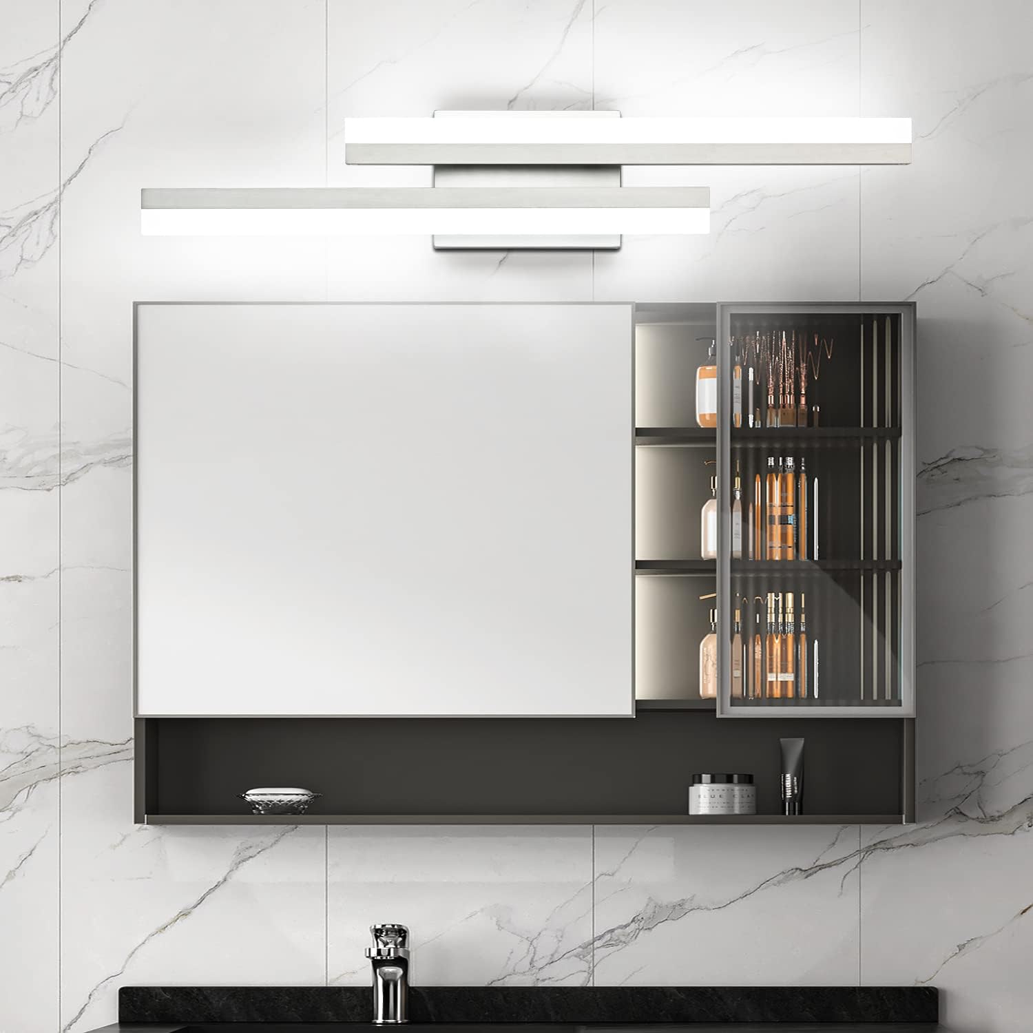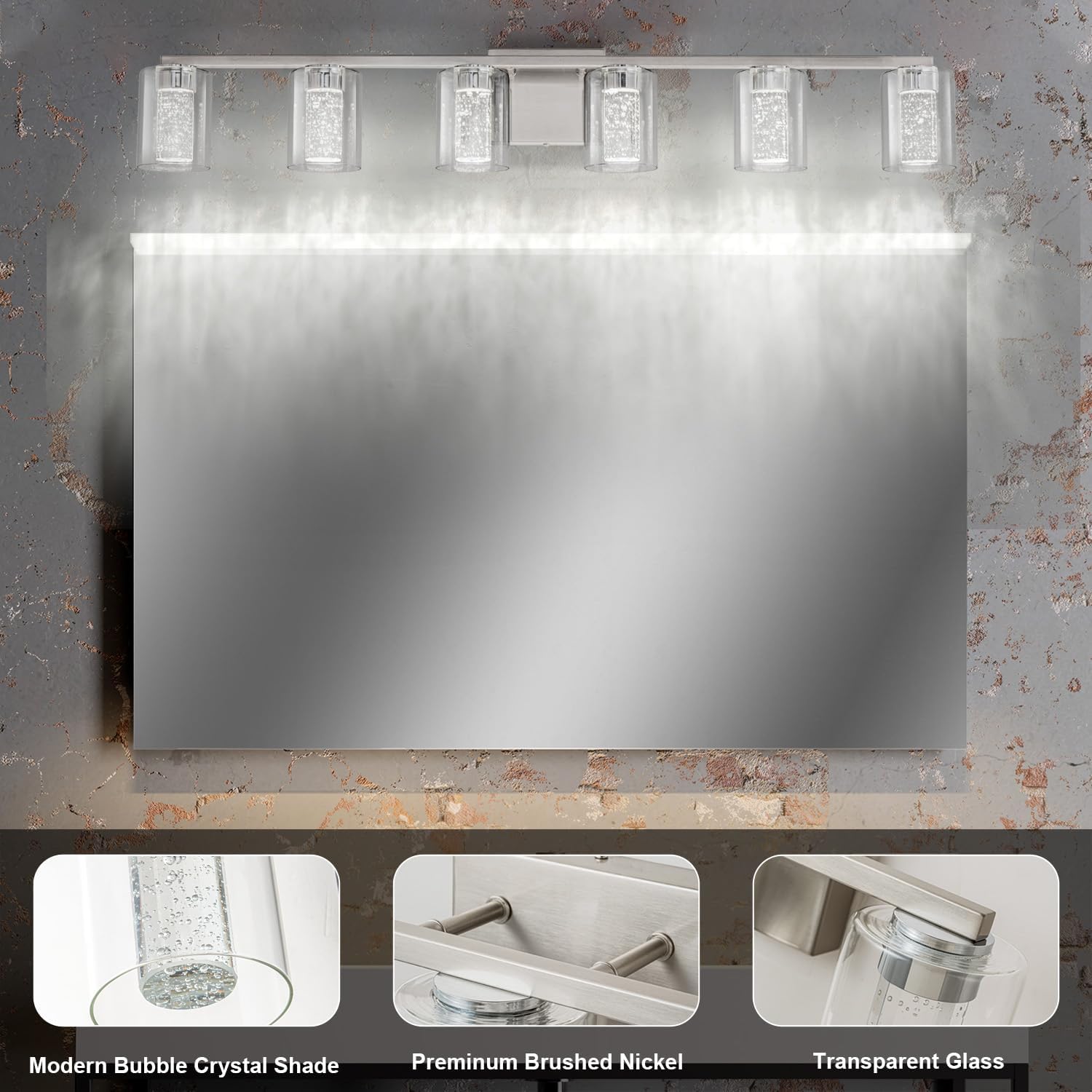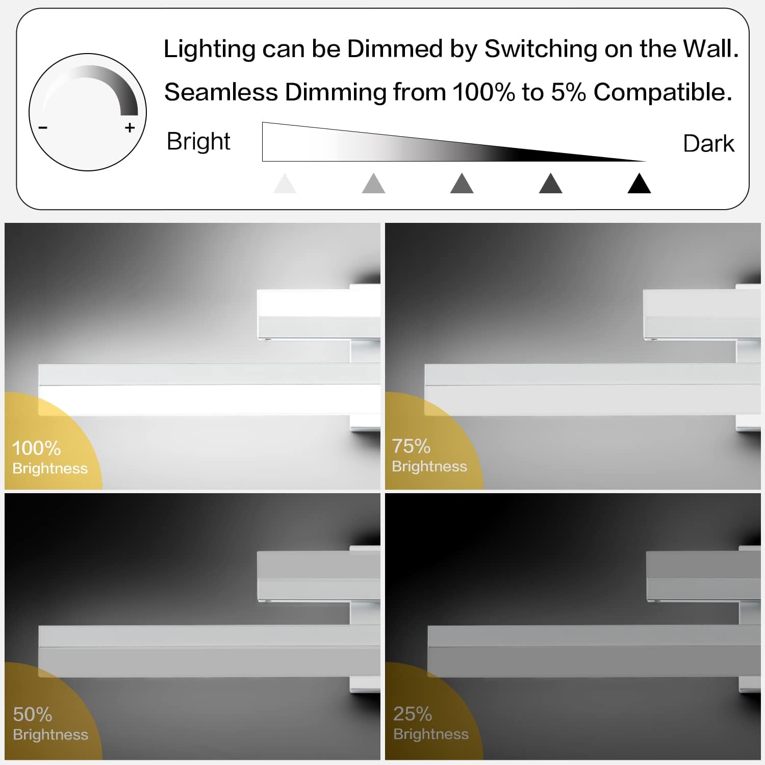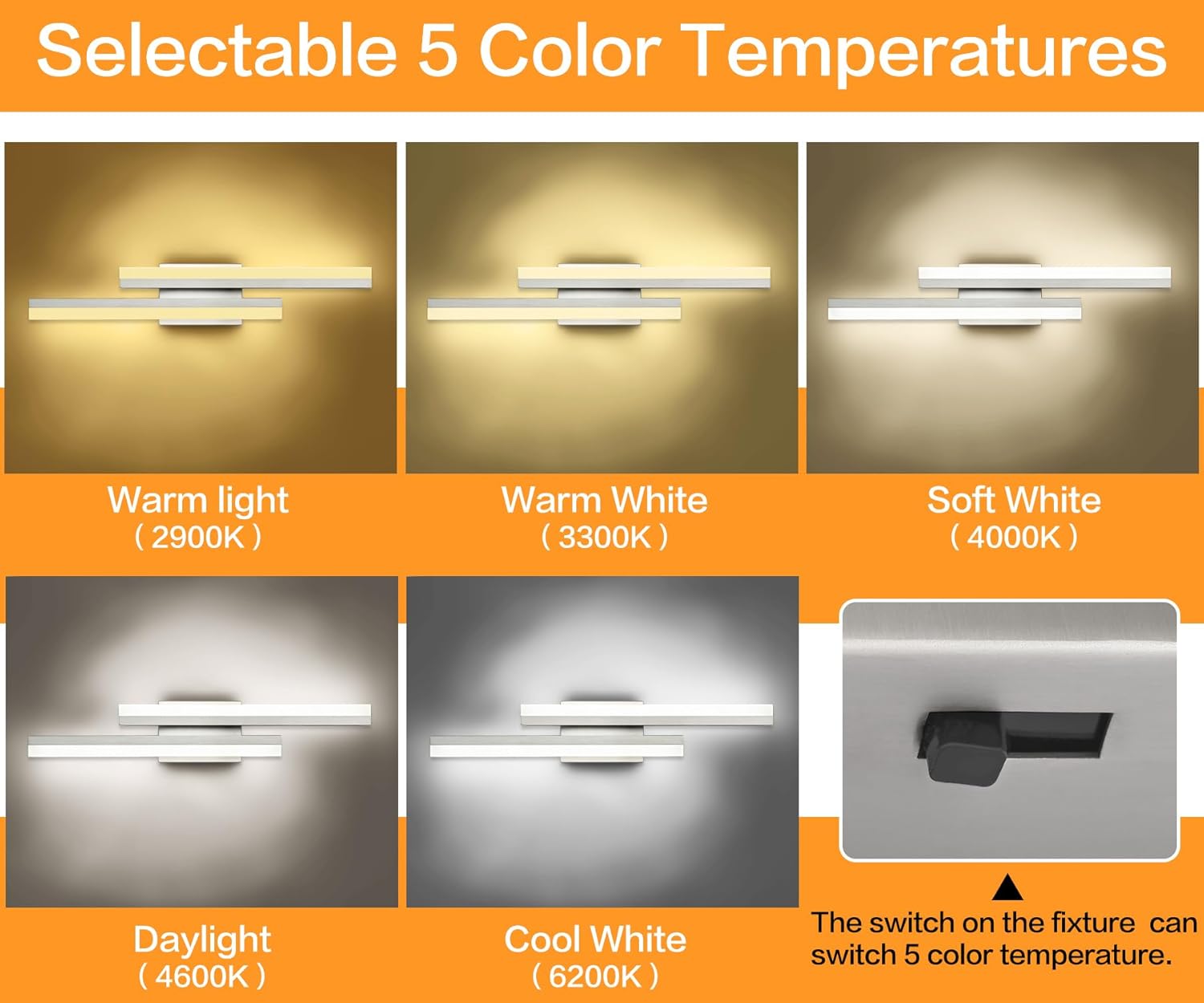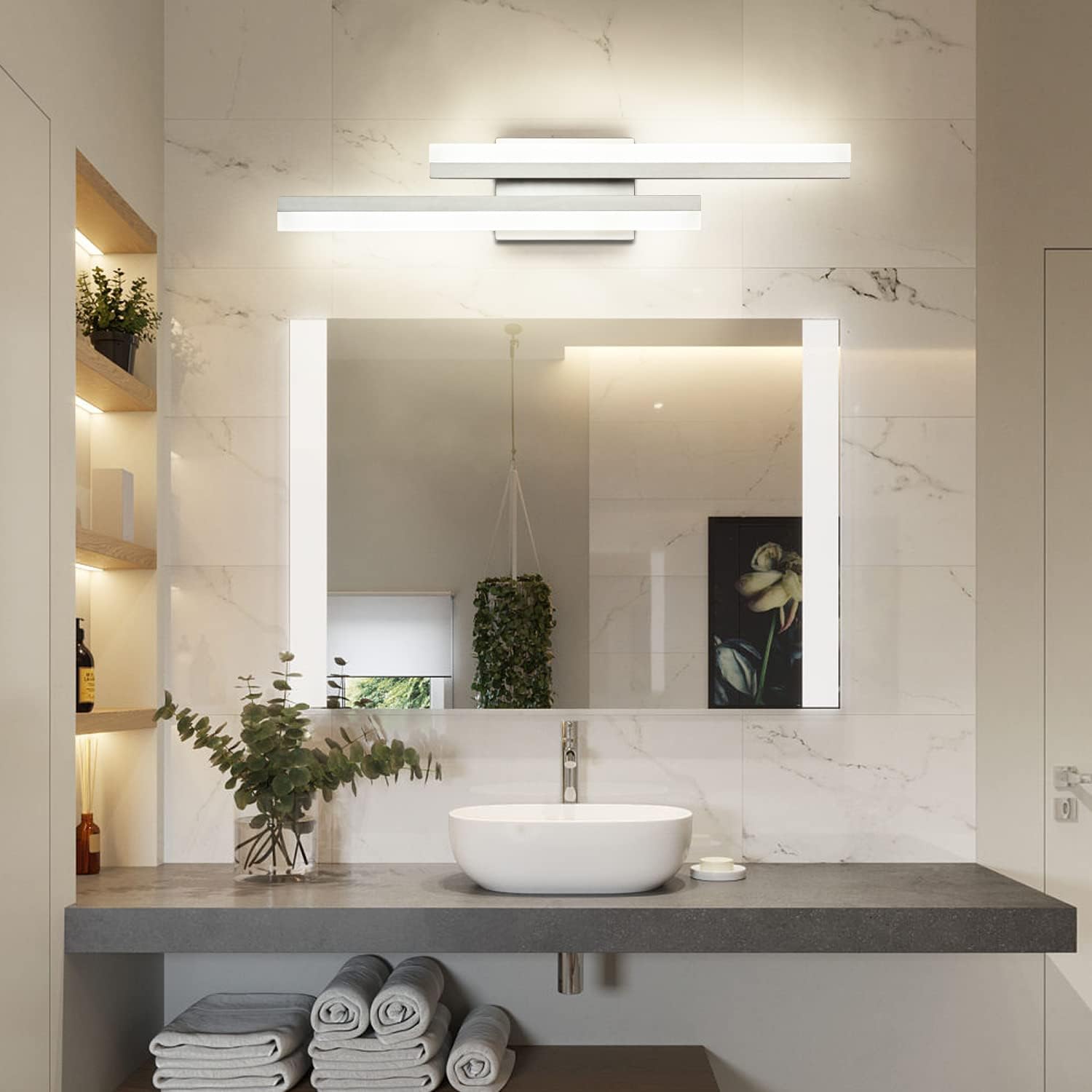 SineRise Brushed Nickel Vanity Light (3-Light, 17-Inch), (3000K/4000K/6000K, Dimmable), Eye Protection LED Bathroom Light Fixture, Modern Wall Light Over Mirror with Clear Glass Shade