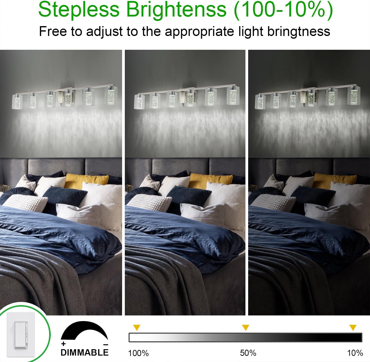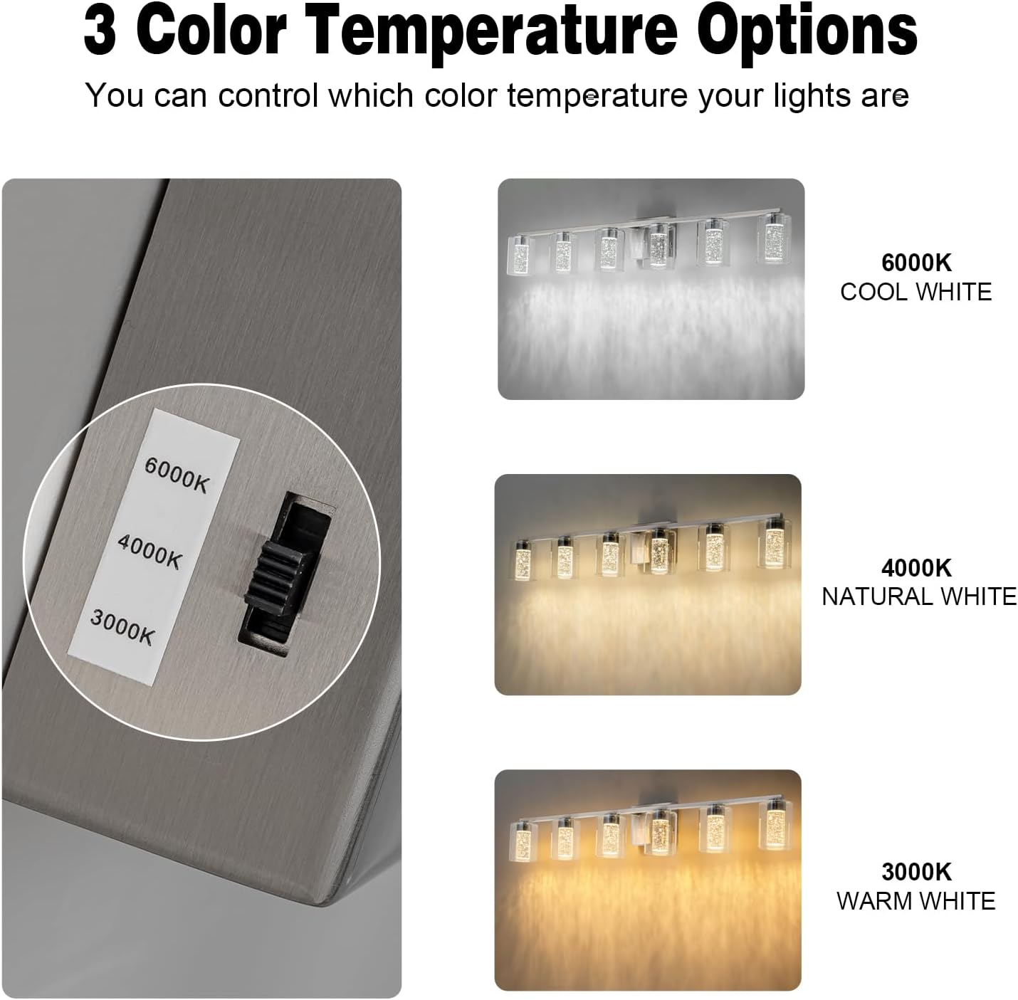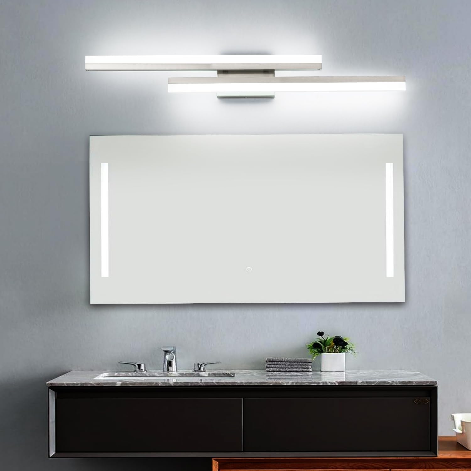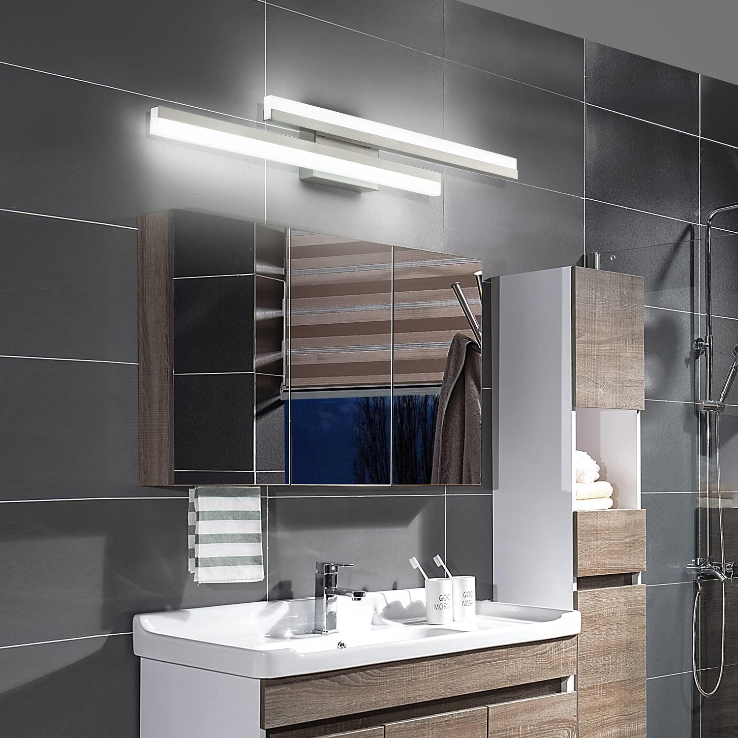 SineRise Brushed Nickel Vanity Light (3-Light, 17-Inch), (3000K/4000K/6000K, Dimmable), Eye Protection LED Bathroom Light Fixture, Modern Wall Light Over Mirror with Clear Glass Shade