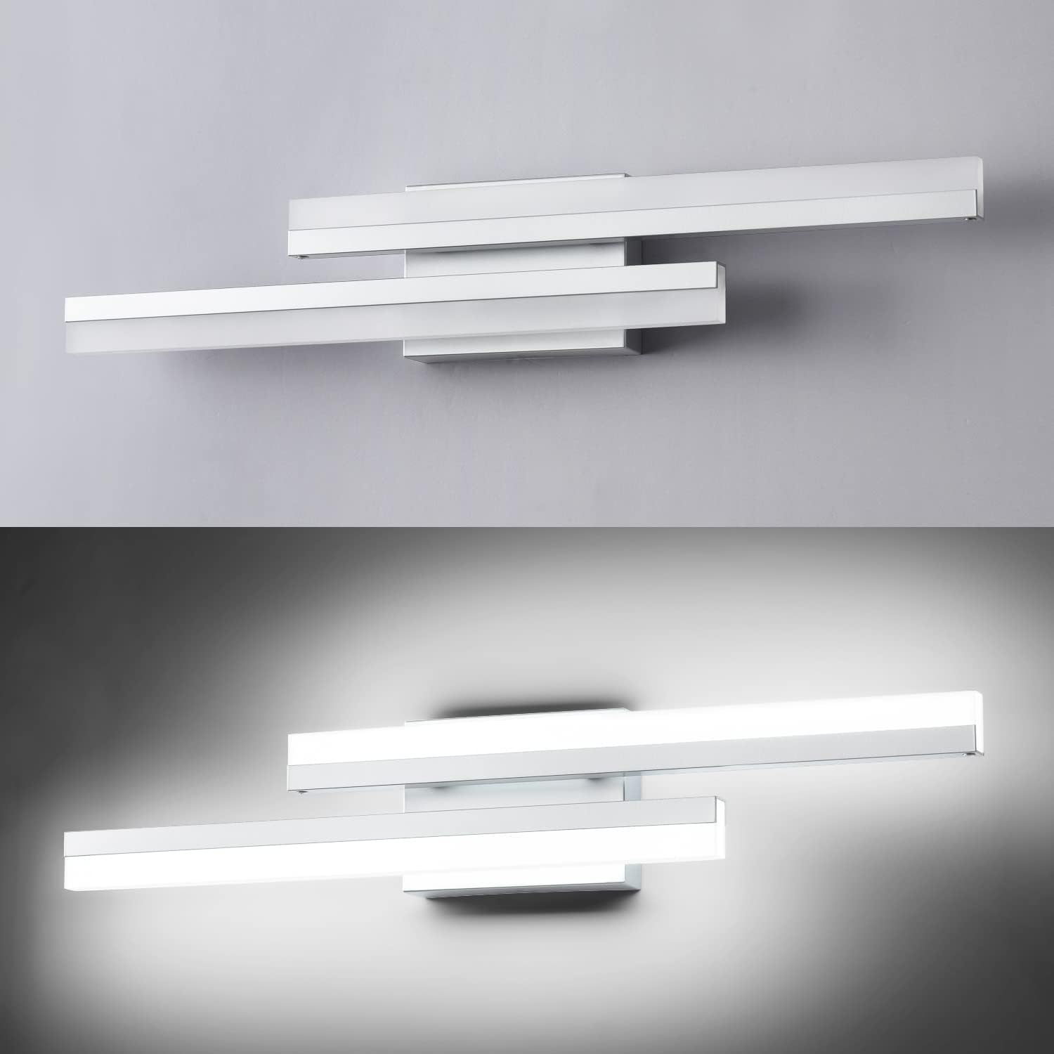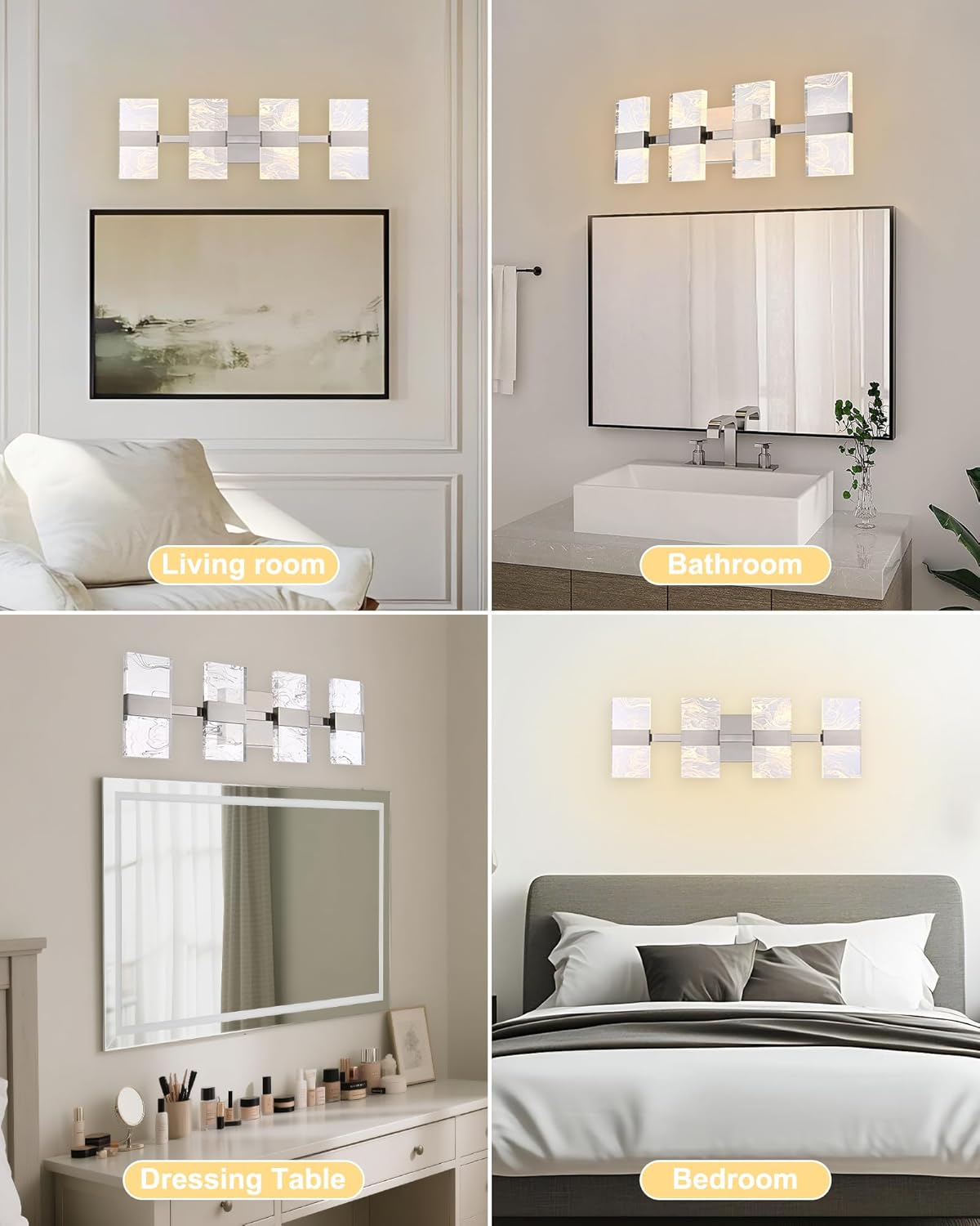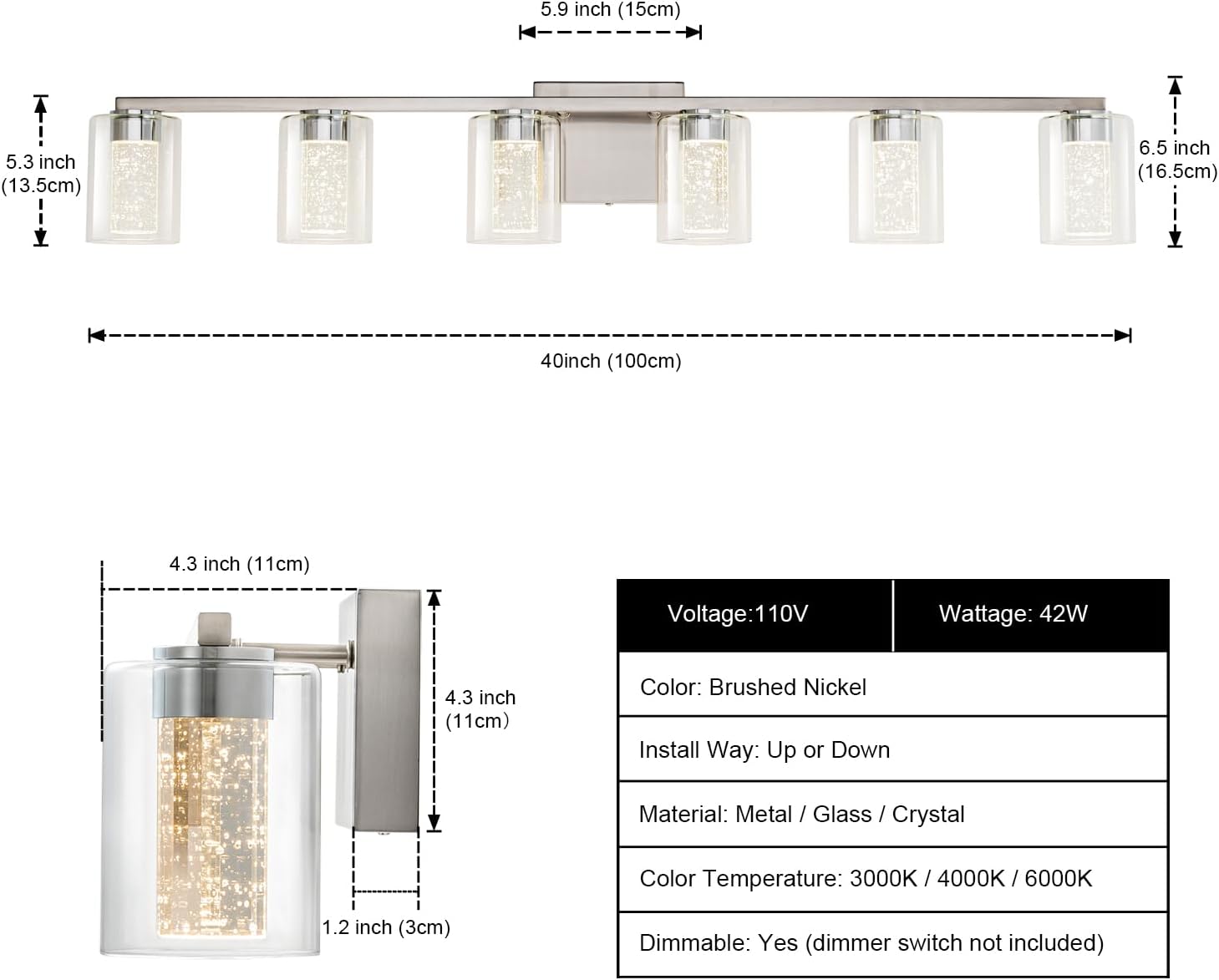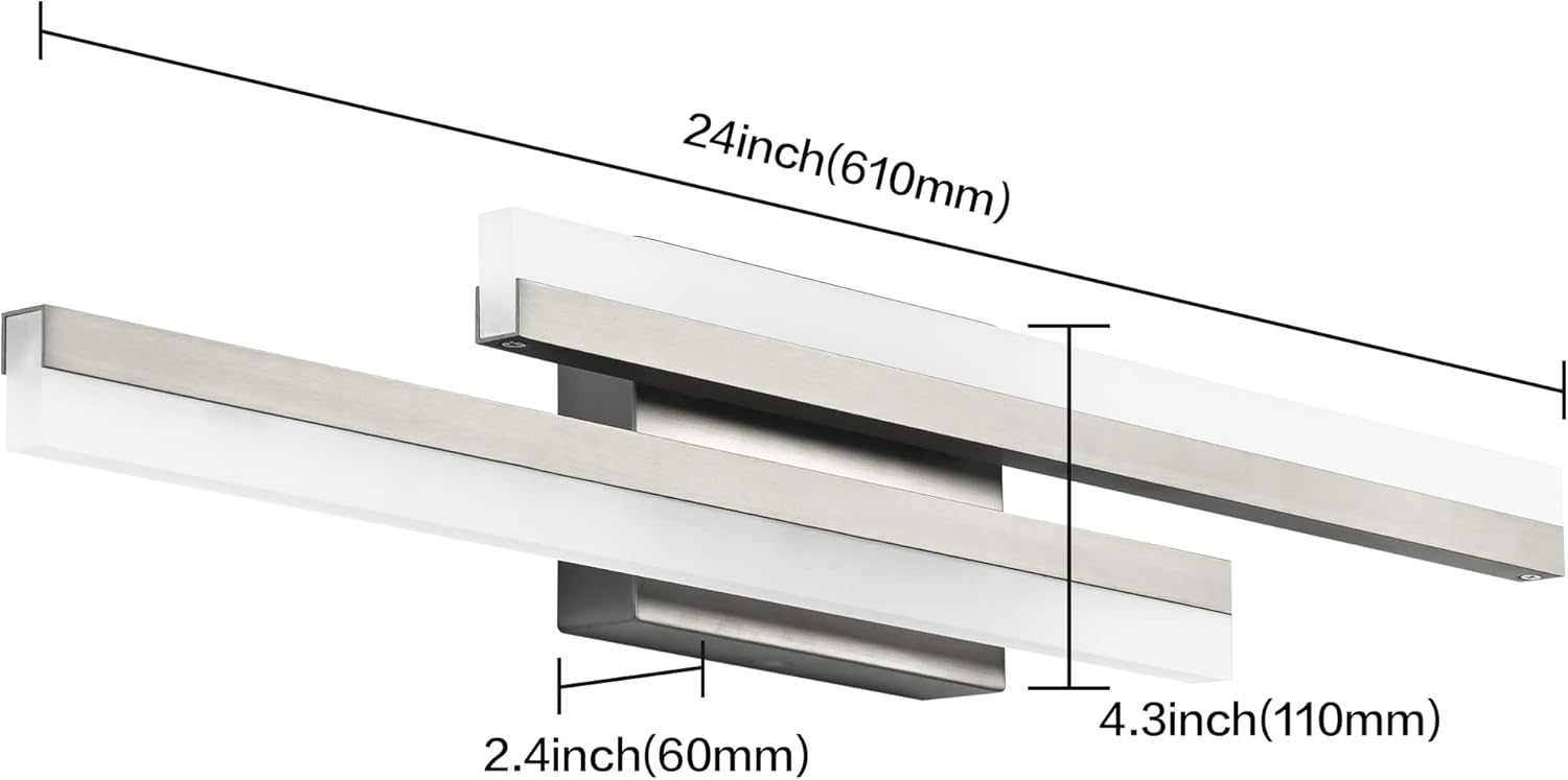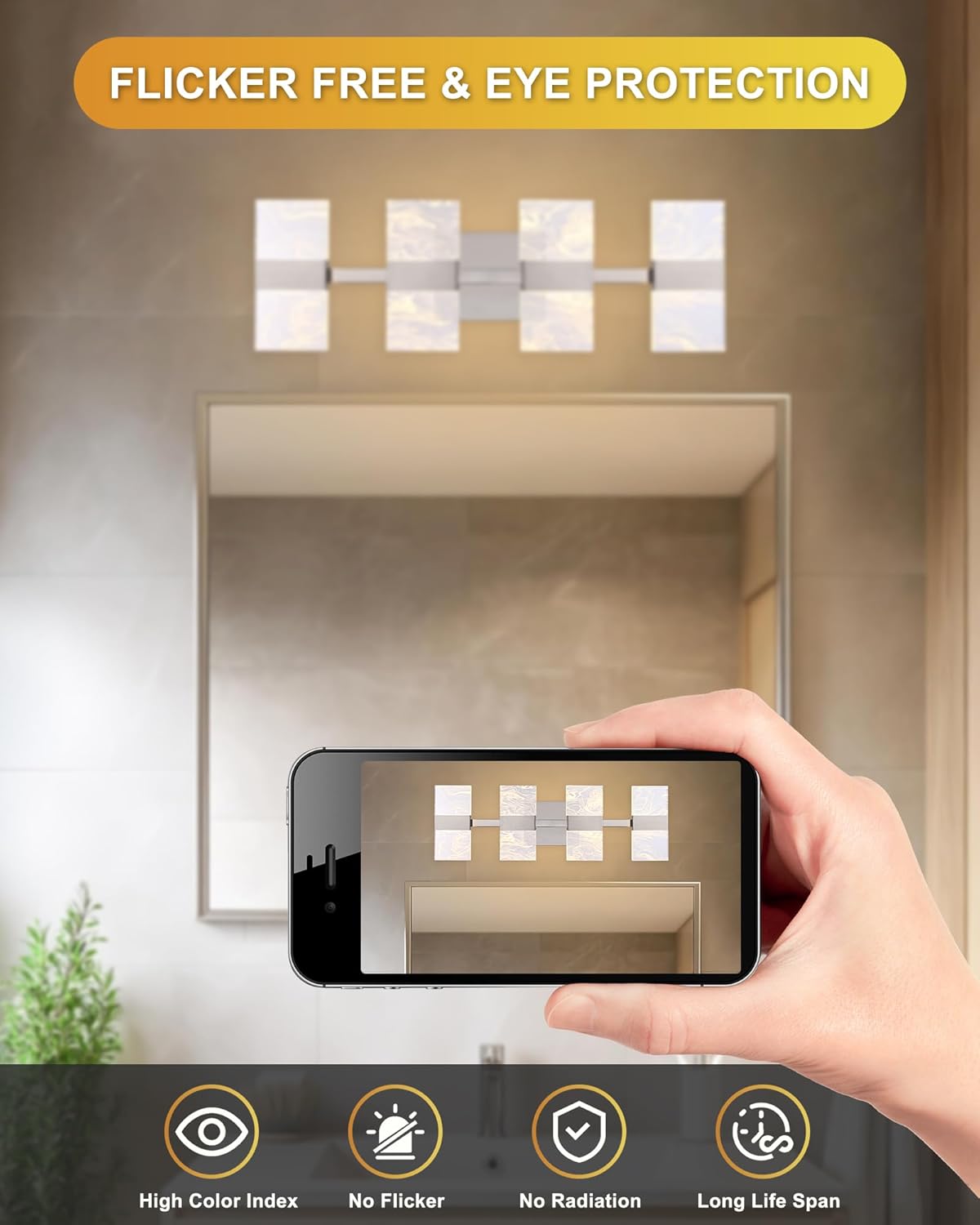 SineRise Brushed Nickel Vanity Light (3-Light, 17-Inch), (3000K/4000K/6000K, Dimmable), Eye Protection LED Bathroom Light Fixture, Modern Wall Light Over Mirror with Clear Glass Shade