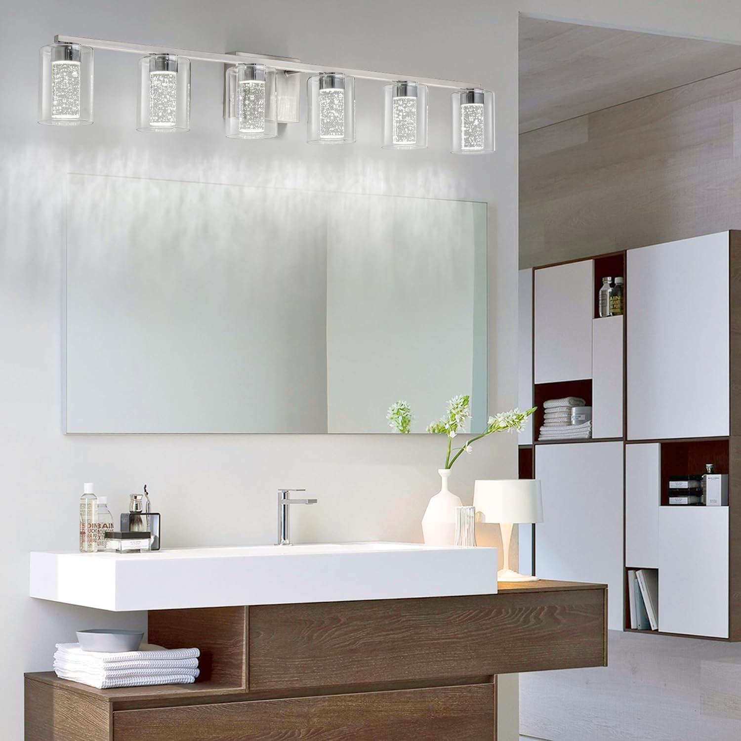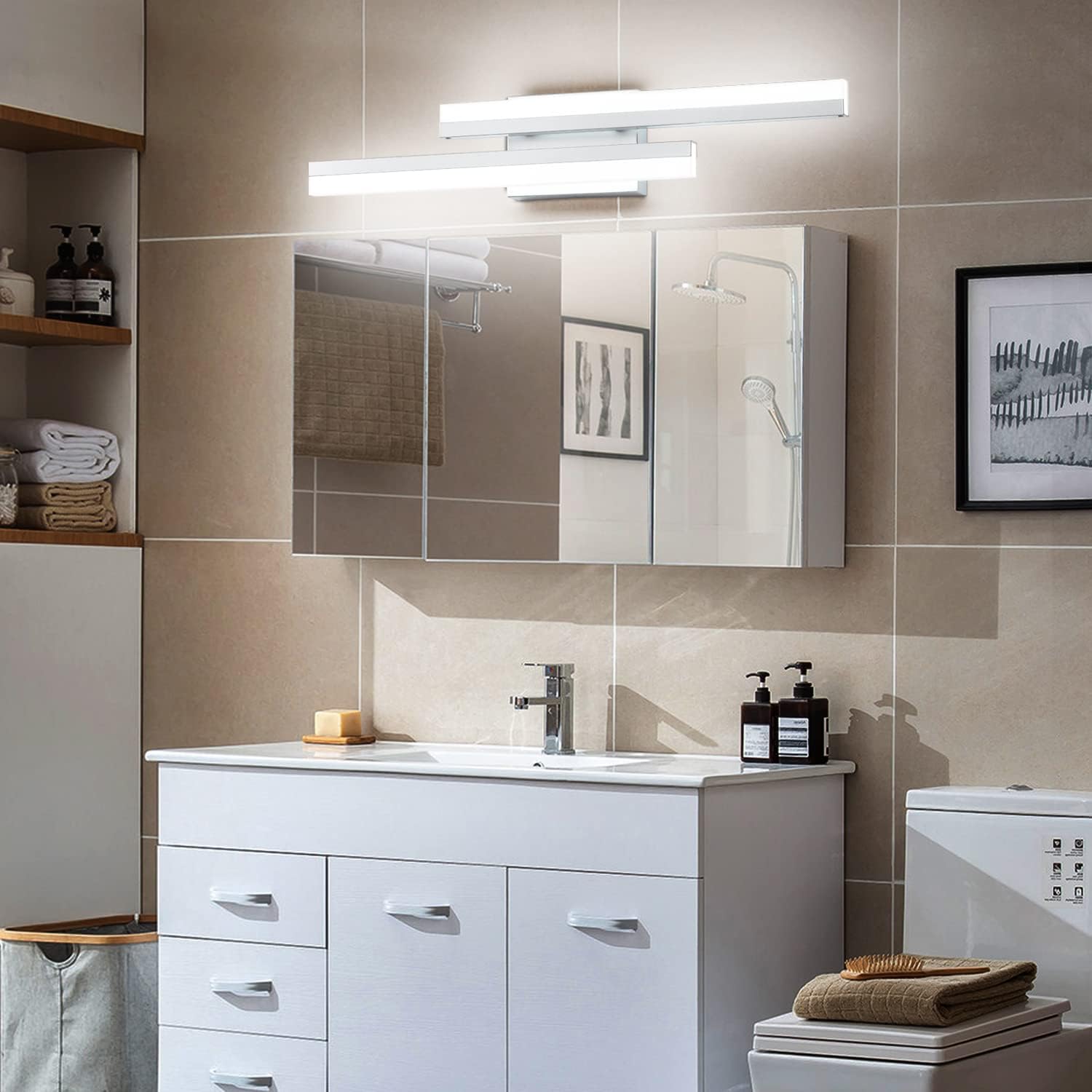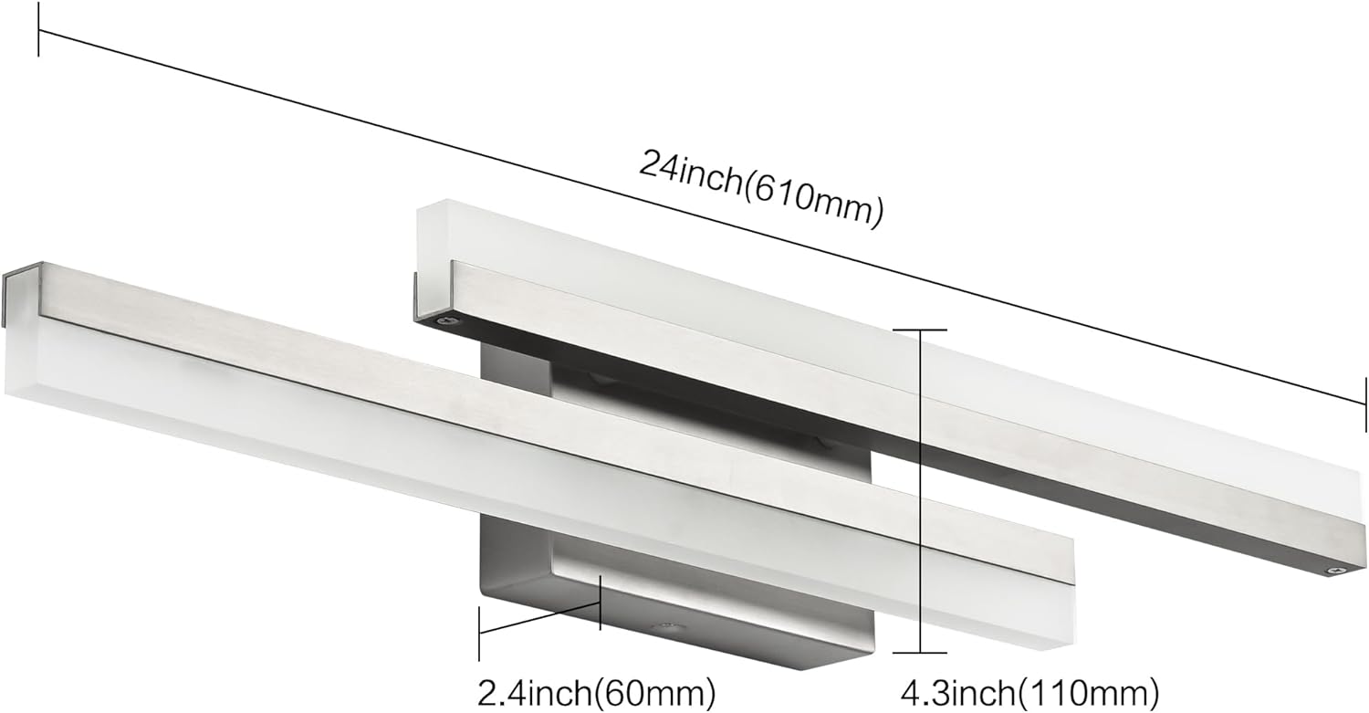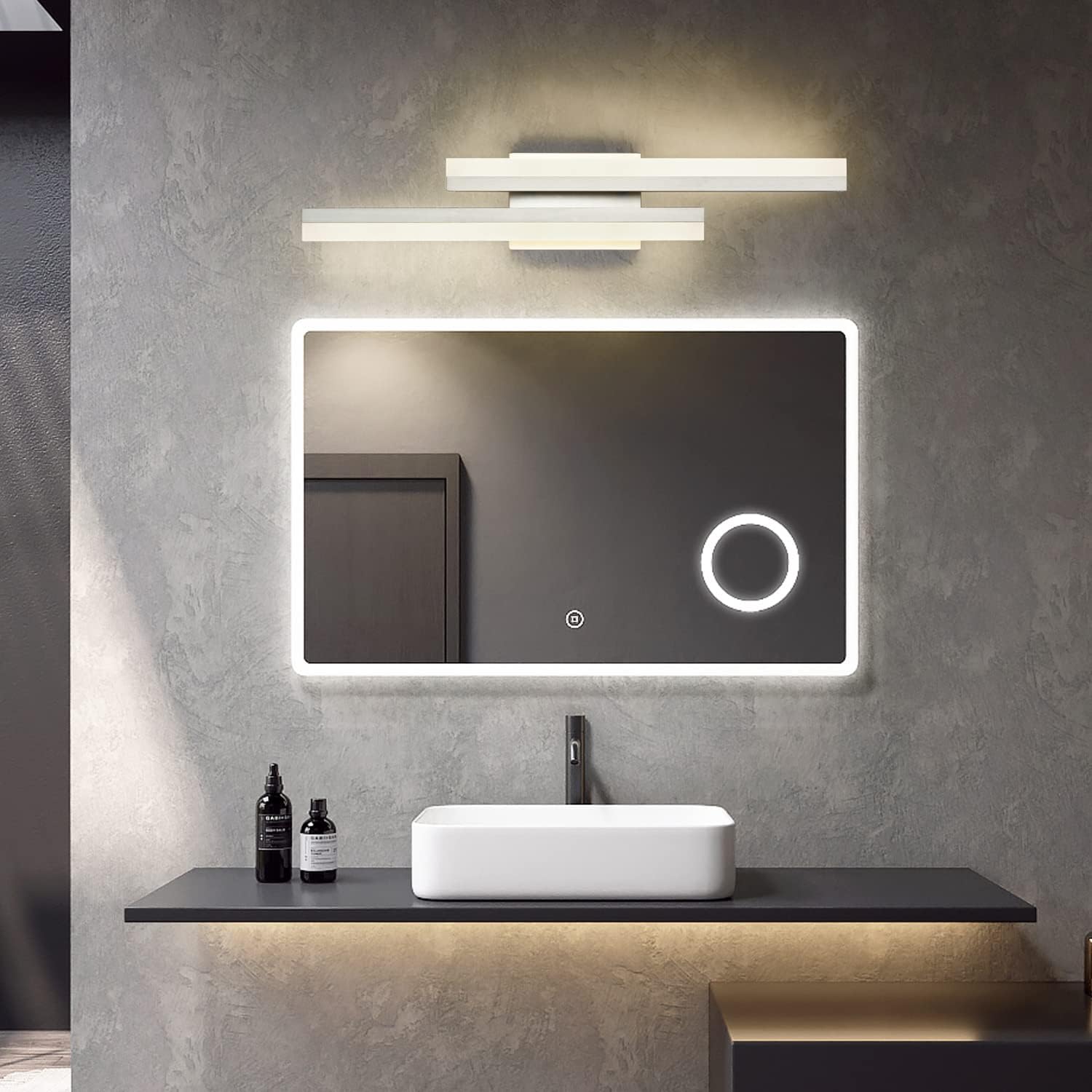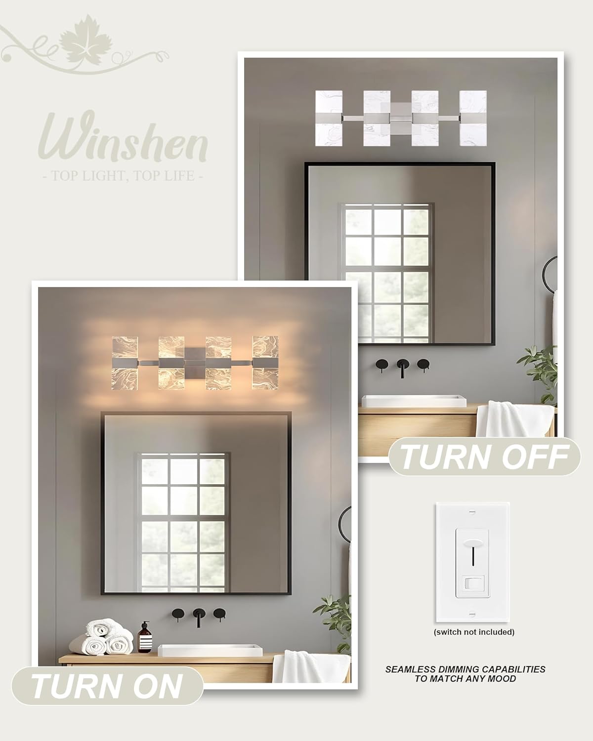 SineRise Brushed Nickel Vanity Light (3-Light, 17-Inch), (3000K/4000K/6000K, Dimmable), Eye Protection LED Bathroom Light Fixture, Modern Wall Light Over Mirror with Clear Glass Shade