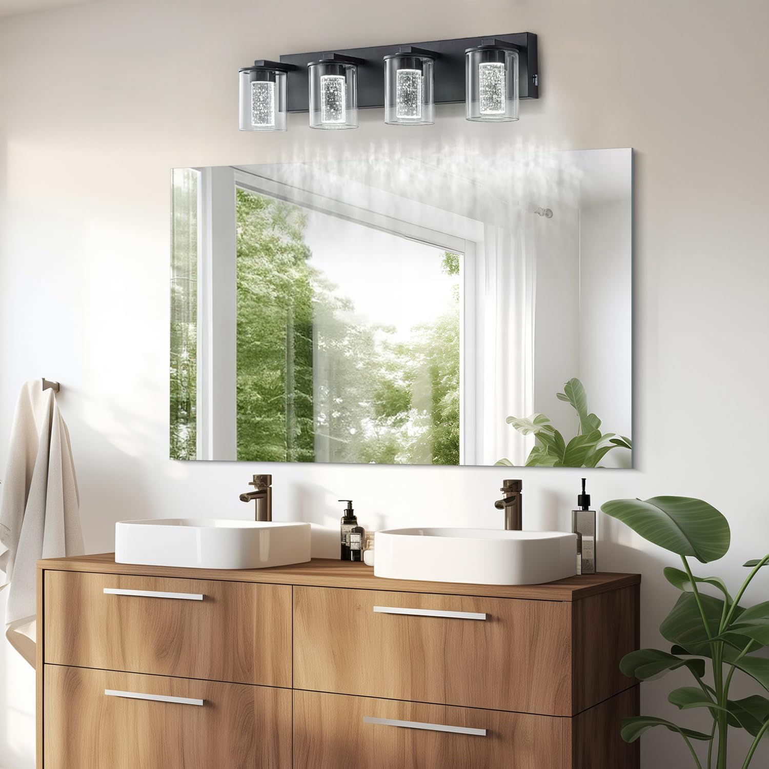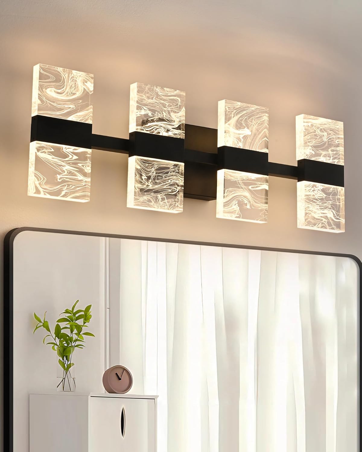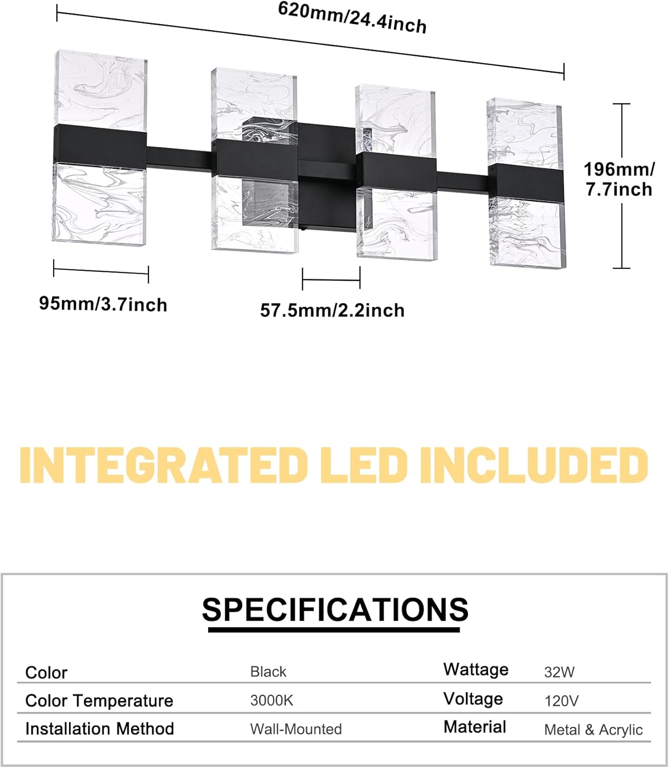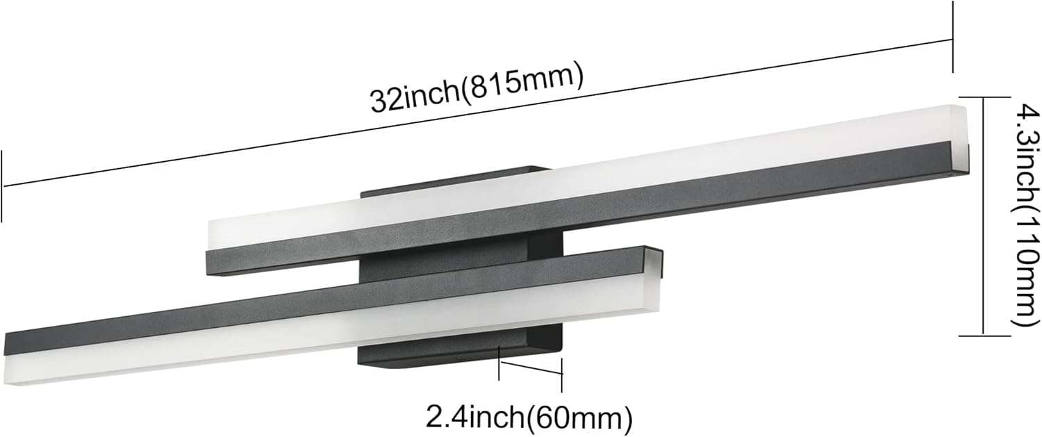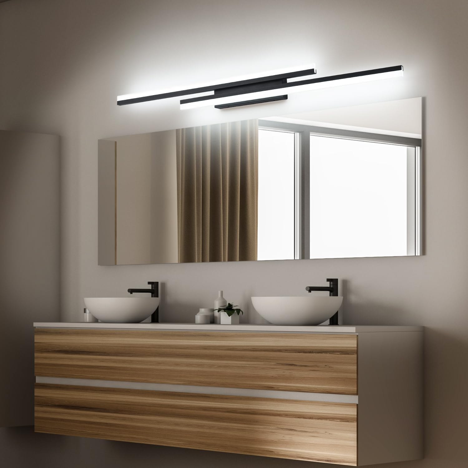 PRESDE 32inch Black Bathroom Light Fixtures Over Mirror LED Vanity Light for Bathroom Modern Bath Vanity Lighting Bar Dimmable