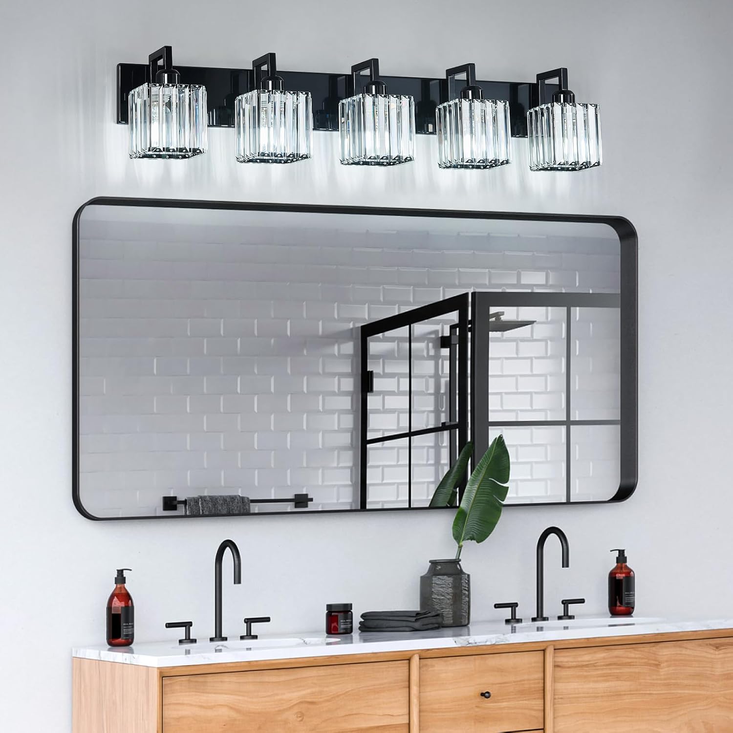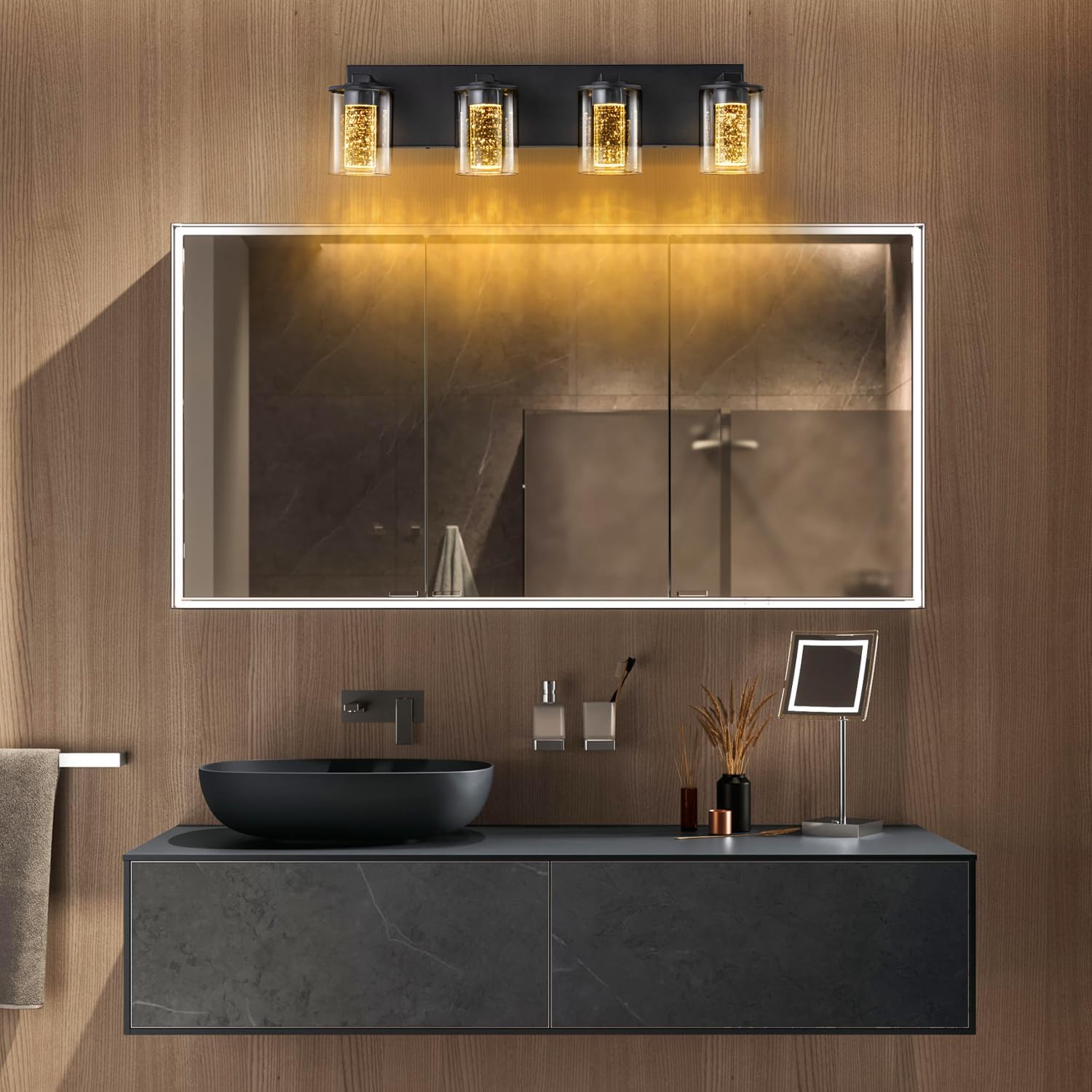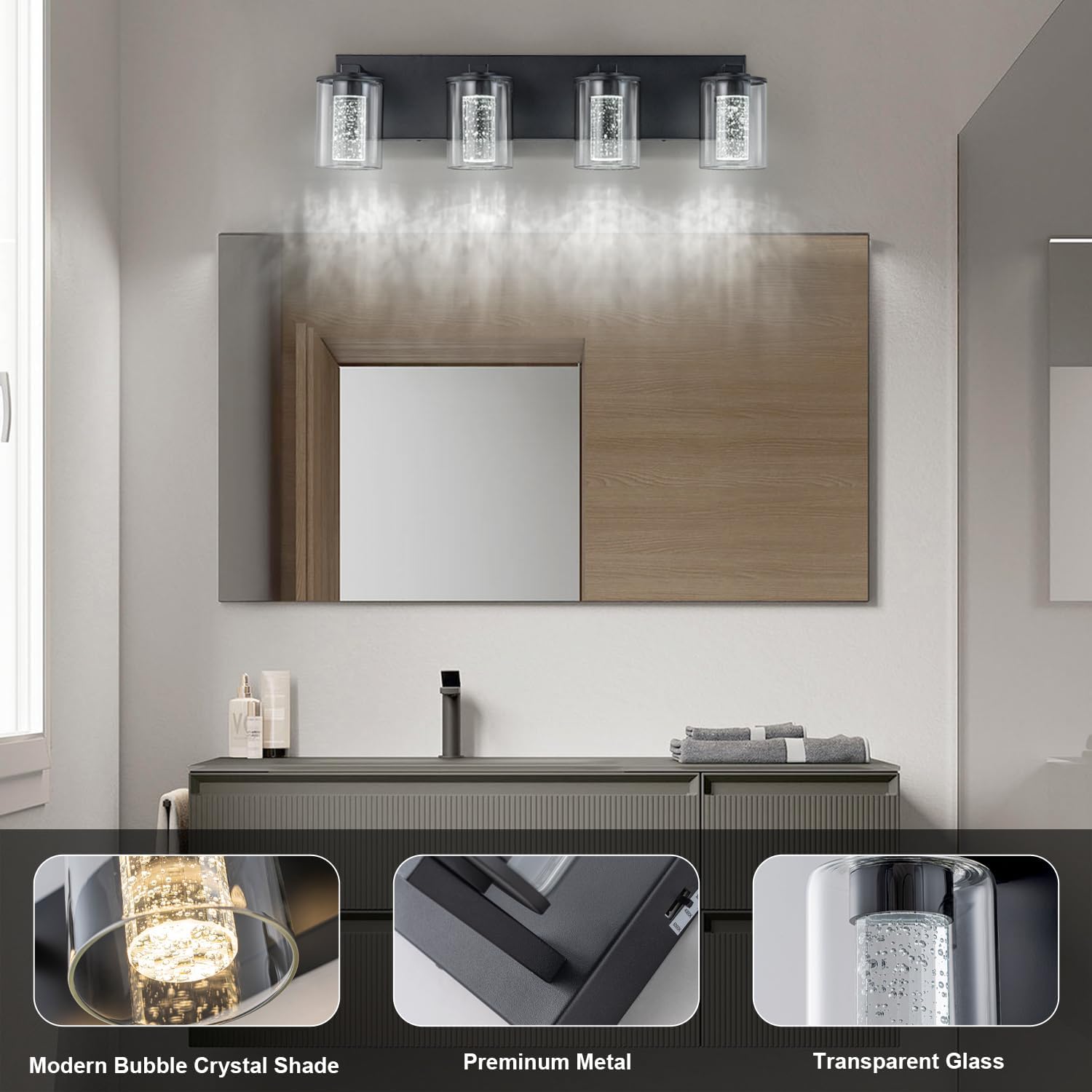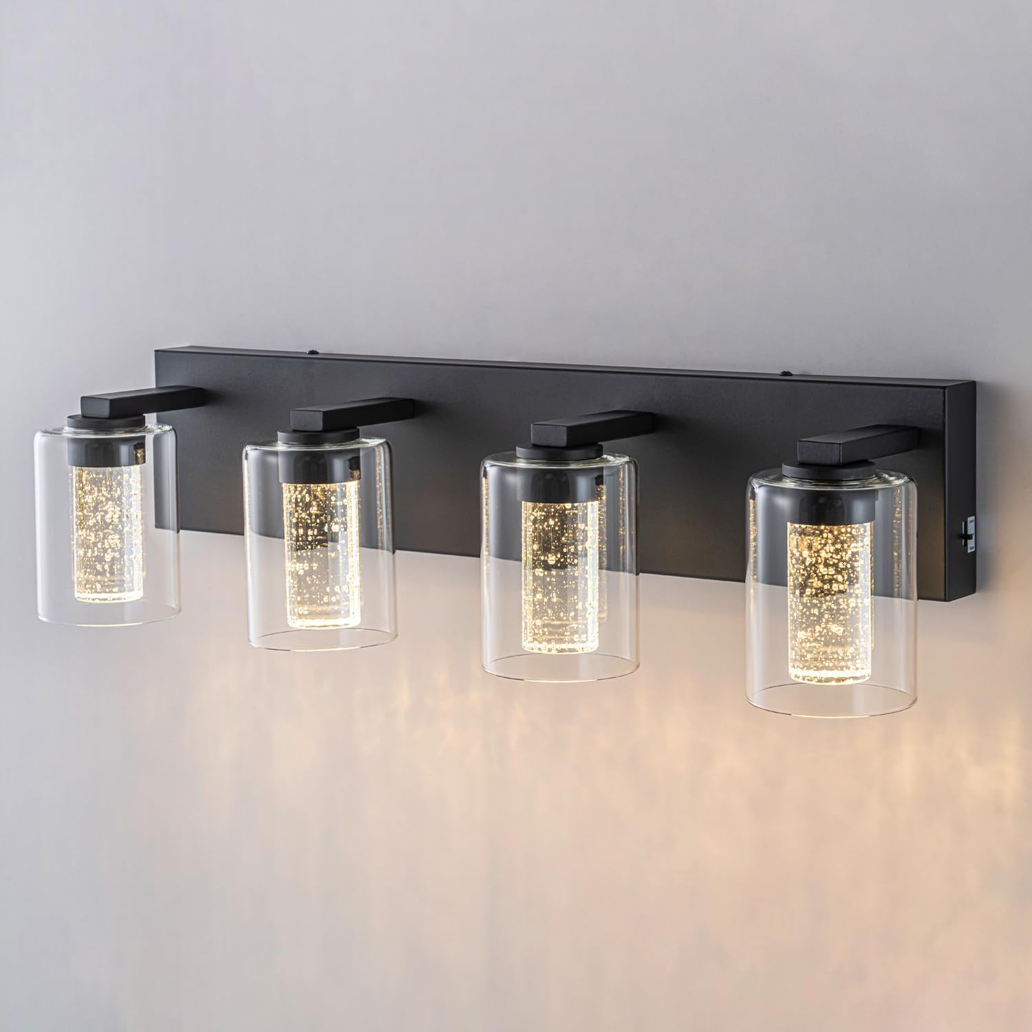 PRESDE 32inch Black Bathroom Light Fixtures Over Mirror LED Vanity Light for Bathroom Modern Bath Vanity Lighting Bar Dimmable