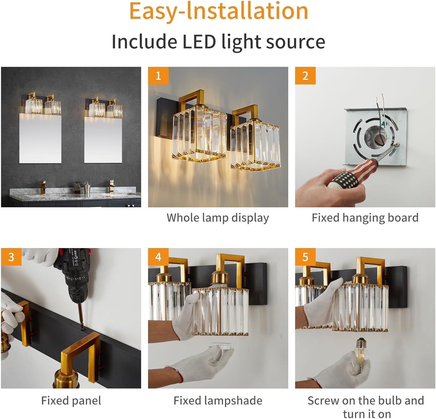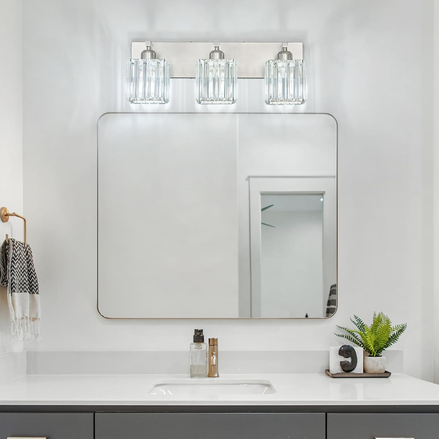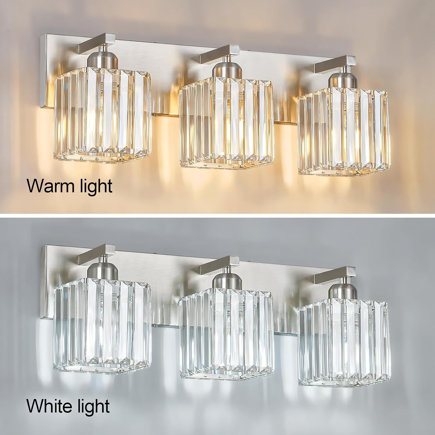 Modern Bathroom Vanity Light 3-Lights Gold Crystal Wall Lamp Bathroom Modern Crystal Vanity Lighting