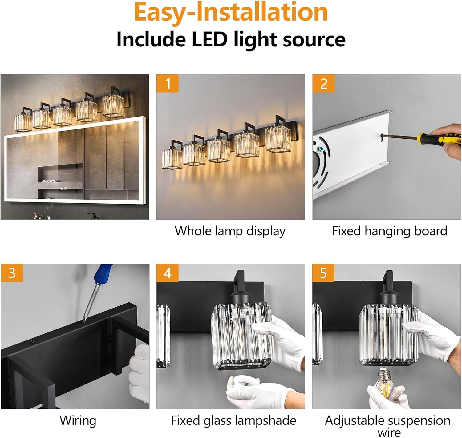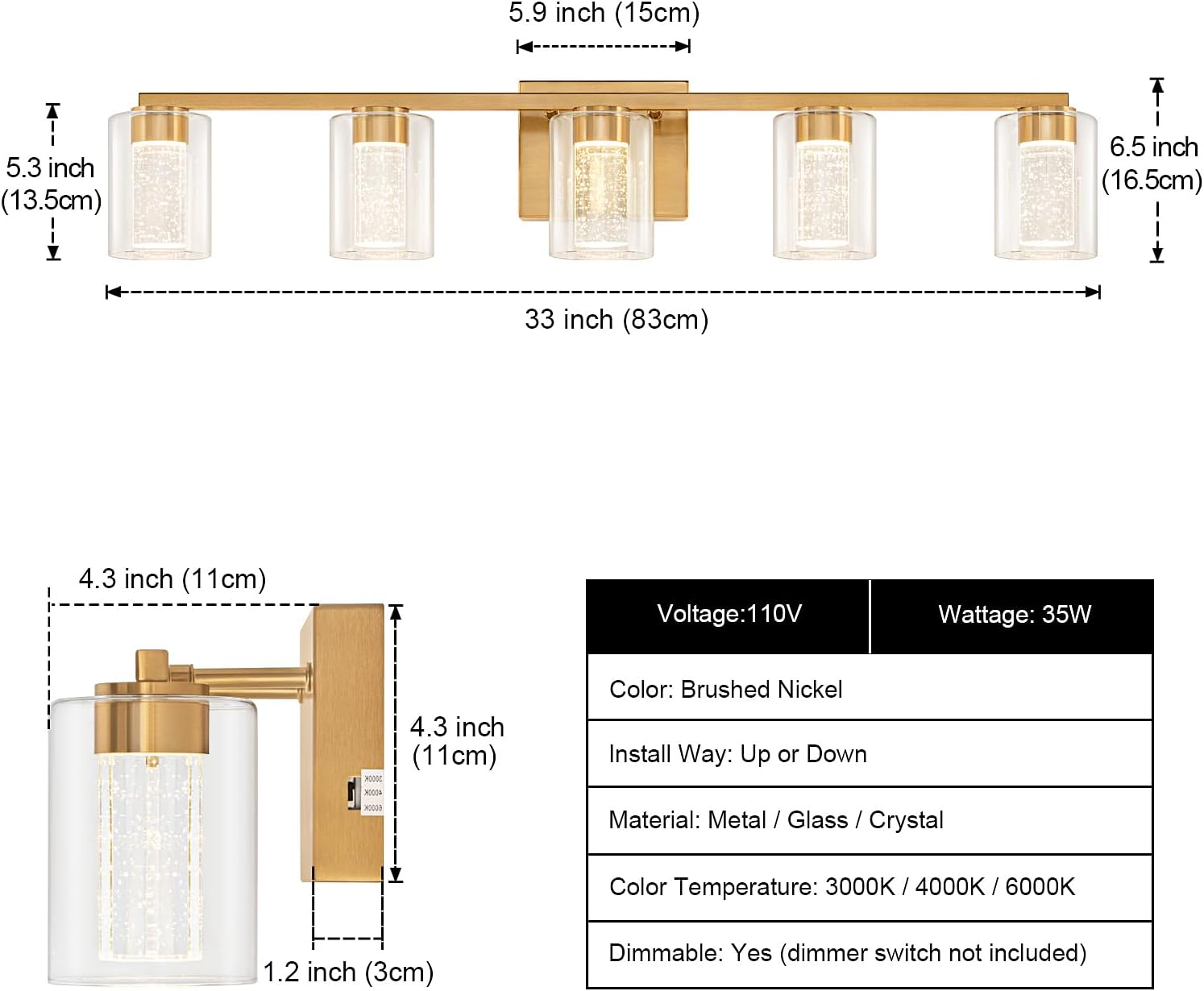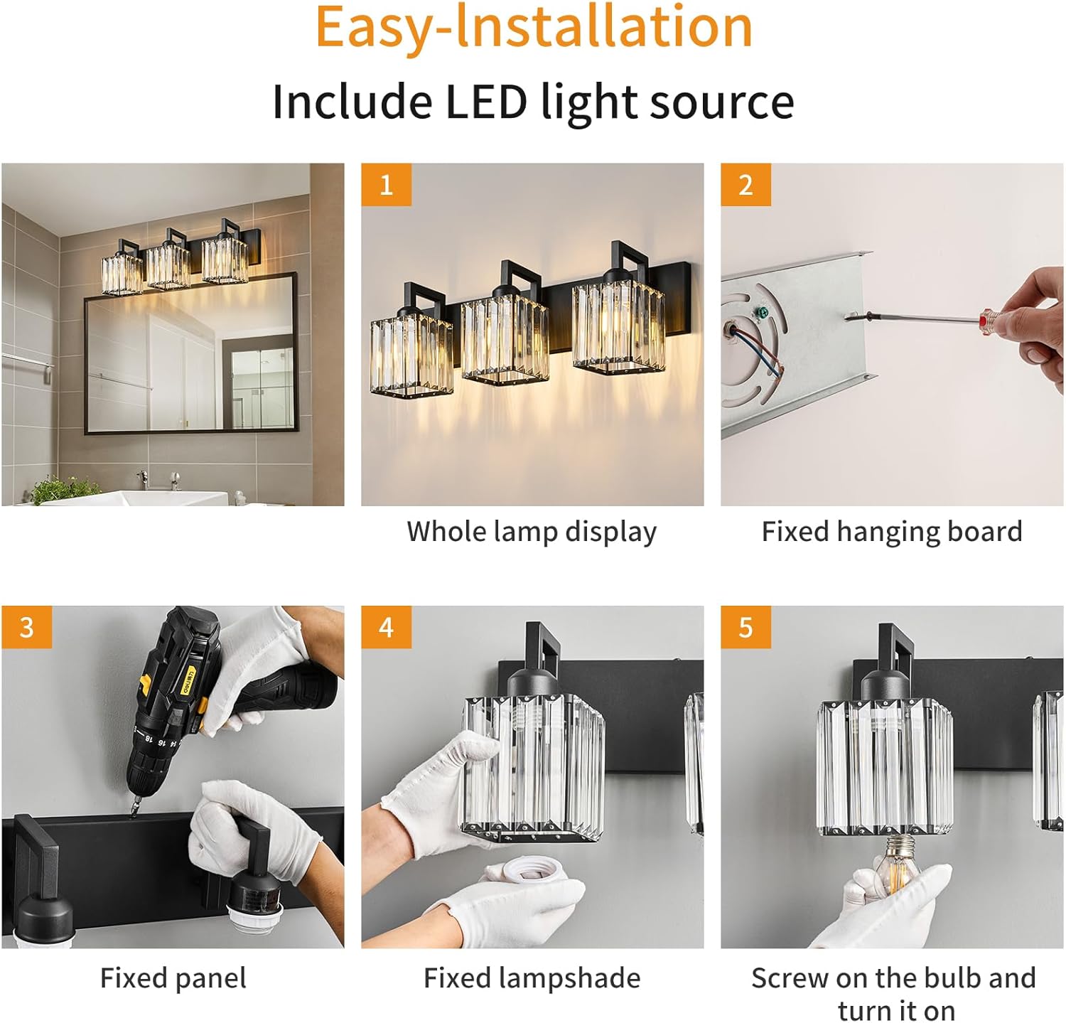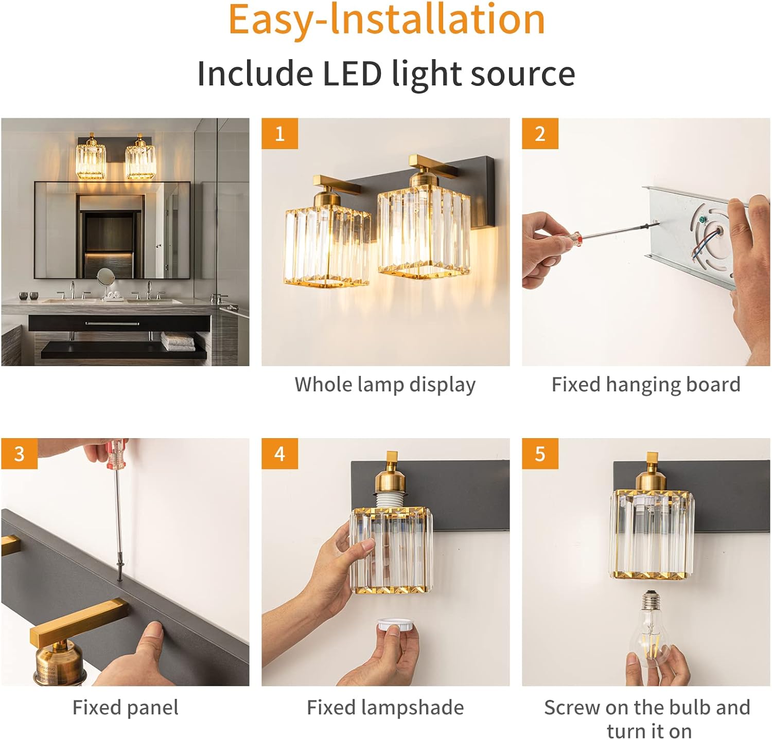 Modern Bathroom Vanity Light 3-Lights Gold Crystal Wall Lamp Bathroom Modern Crystal Vanity Lighting