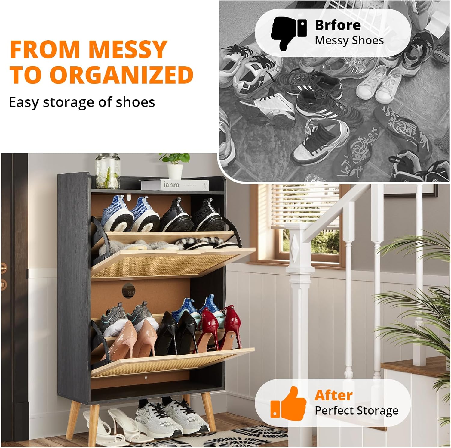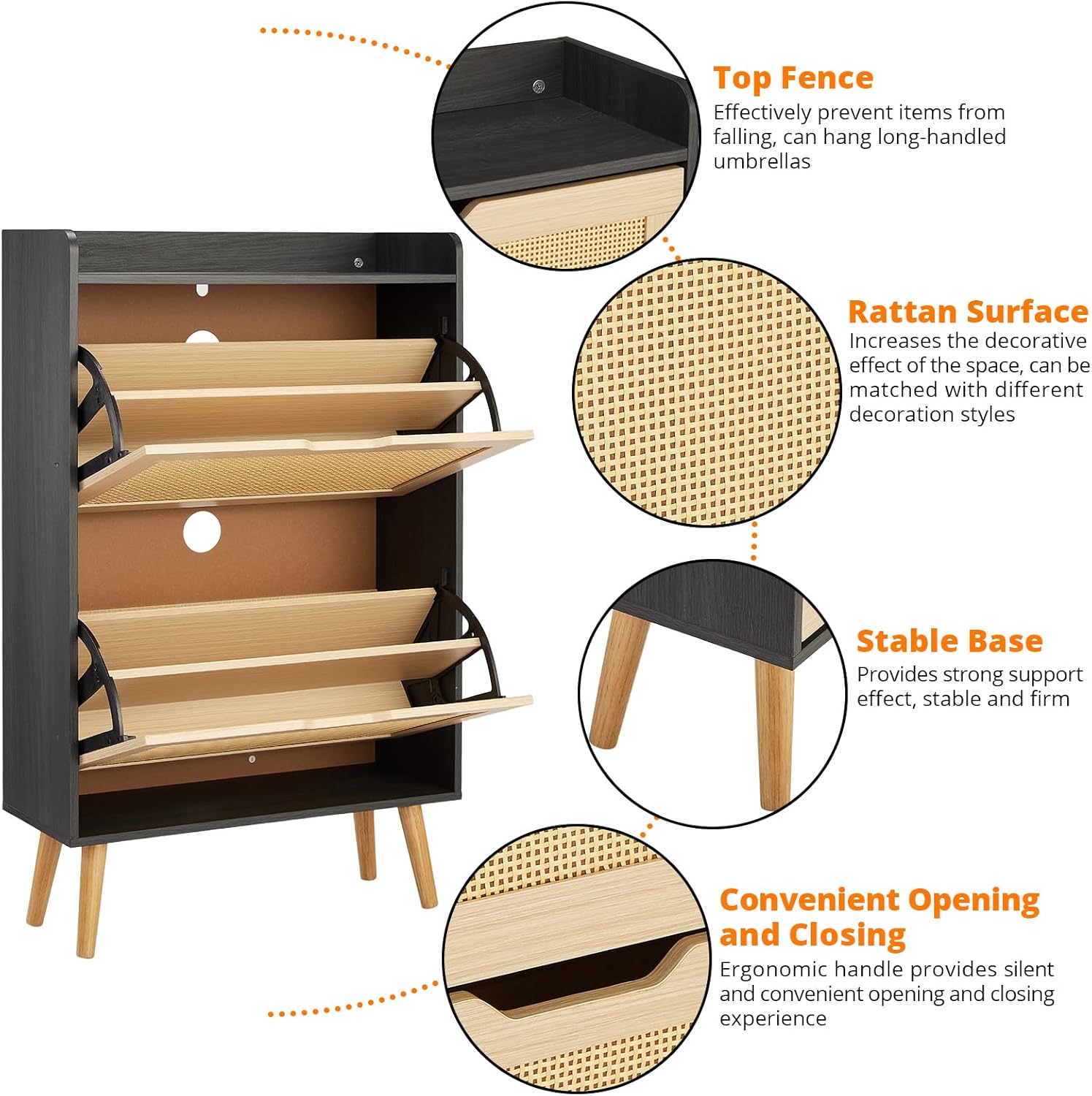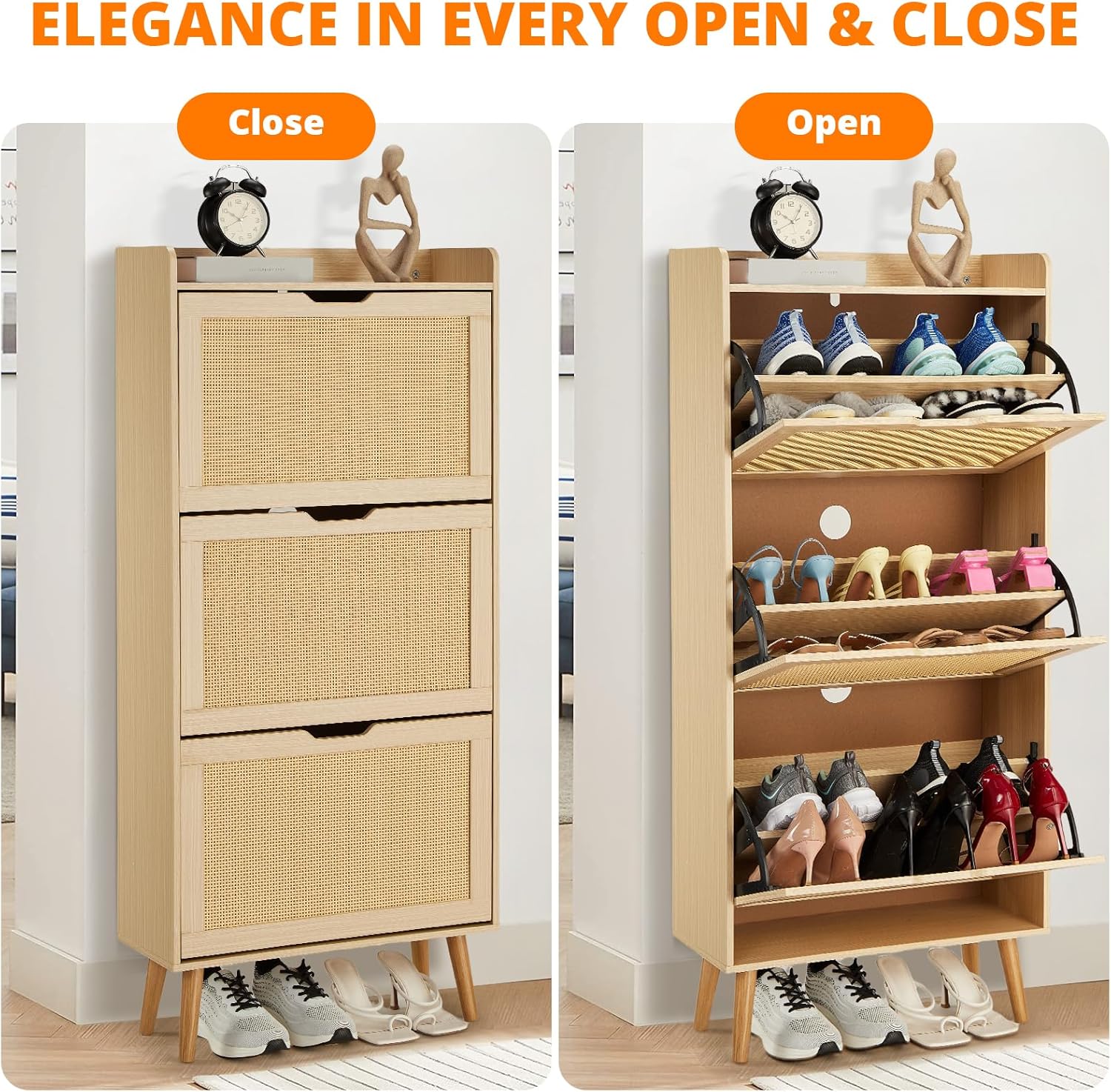 IDEALHOUSE Shoe Cabinet for Entryway, Rattan Storage Organizer with Flip-Drawer & Anti-Tip Design, Shoe Storage Cabinet - Holds 15-20 Pairs of Shoes for Closet/Bedroom