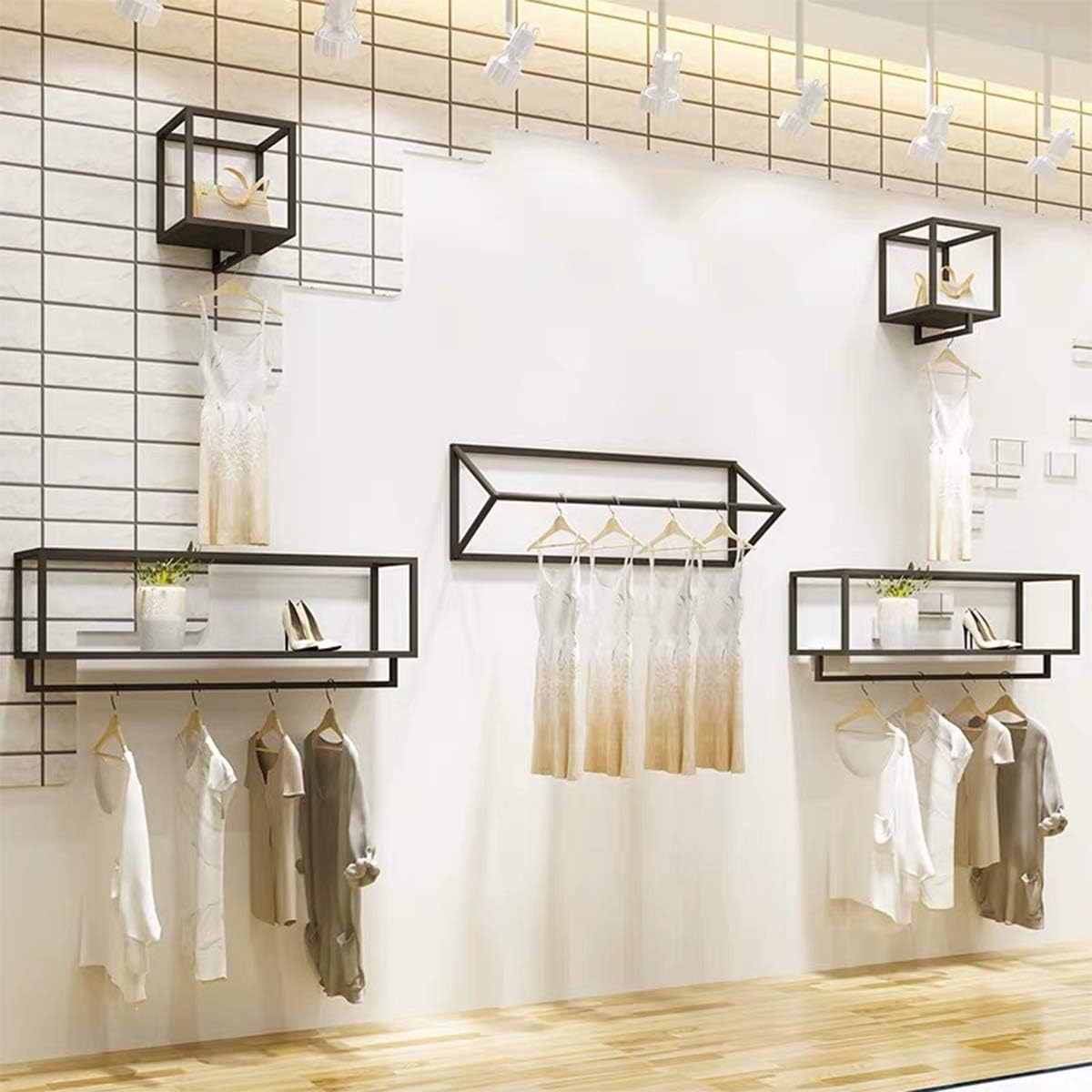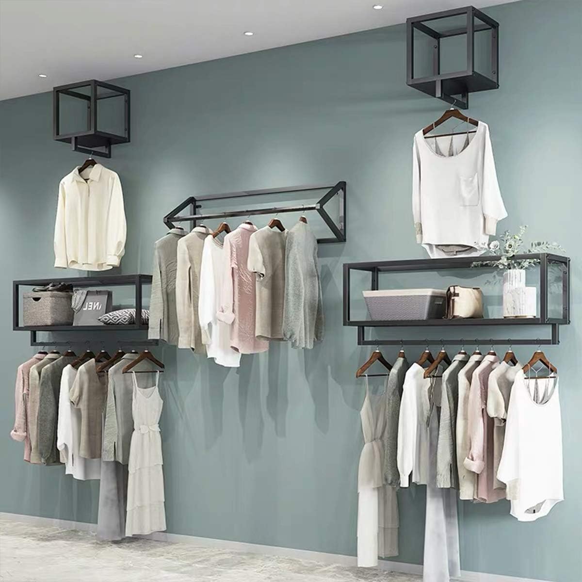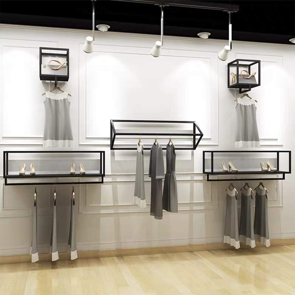 Creative Square Display Garment Racks in Boutique Clothing Stores, Wall-Mounted Hanging Clothes Shelf in Home, Towel Racks for Bathroom Storage Shelves (Black, 31.5" L)