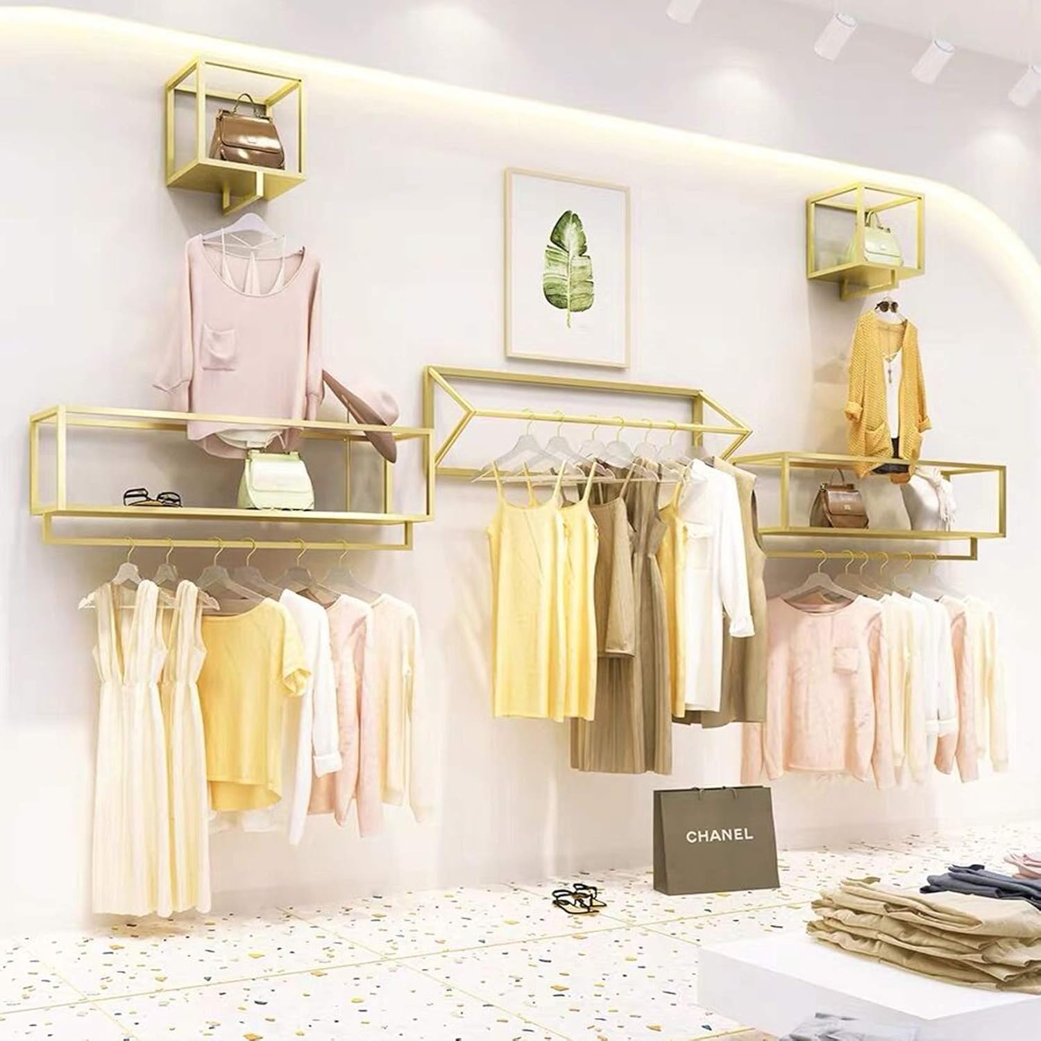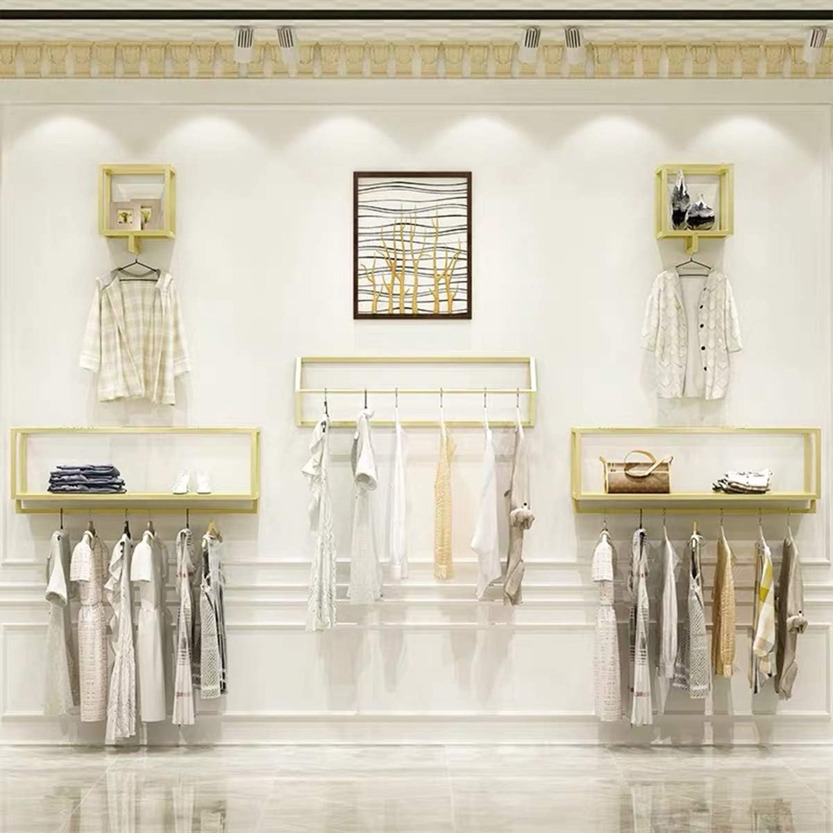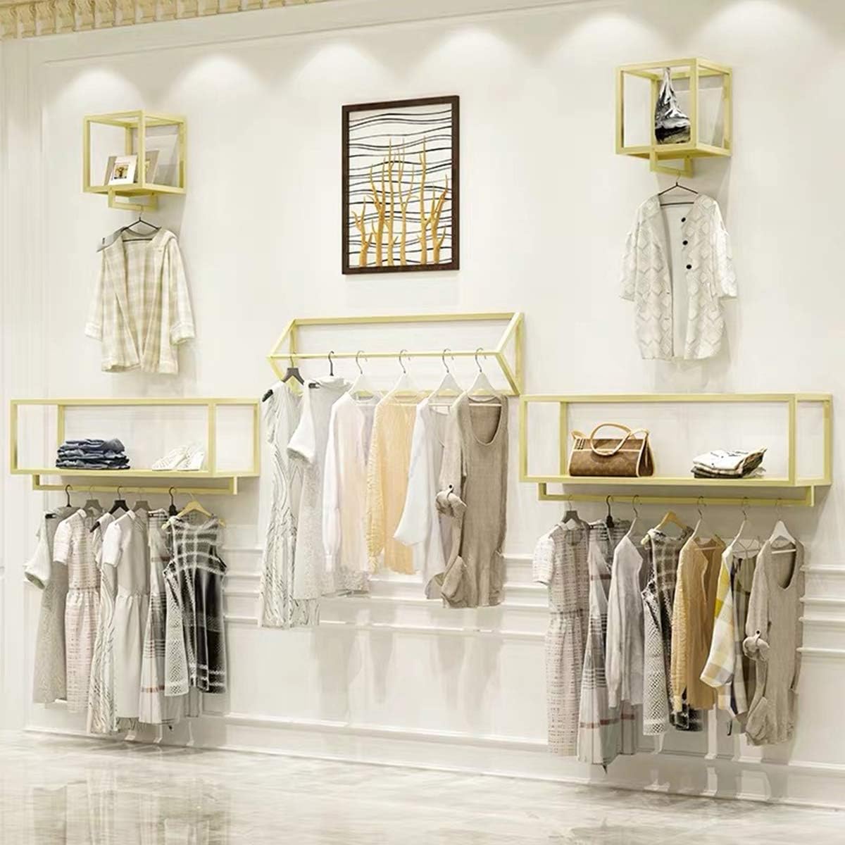 Creative Square Display Garment Racks in Boutique Clothing Stores, Wall-Mounted Hanging Clothes Shelf in Home, Towel Racks for Bathroom Storage Shelves (Black, 31.5" L)