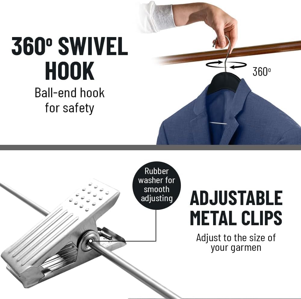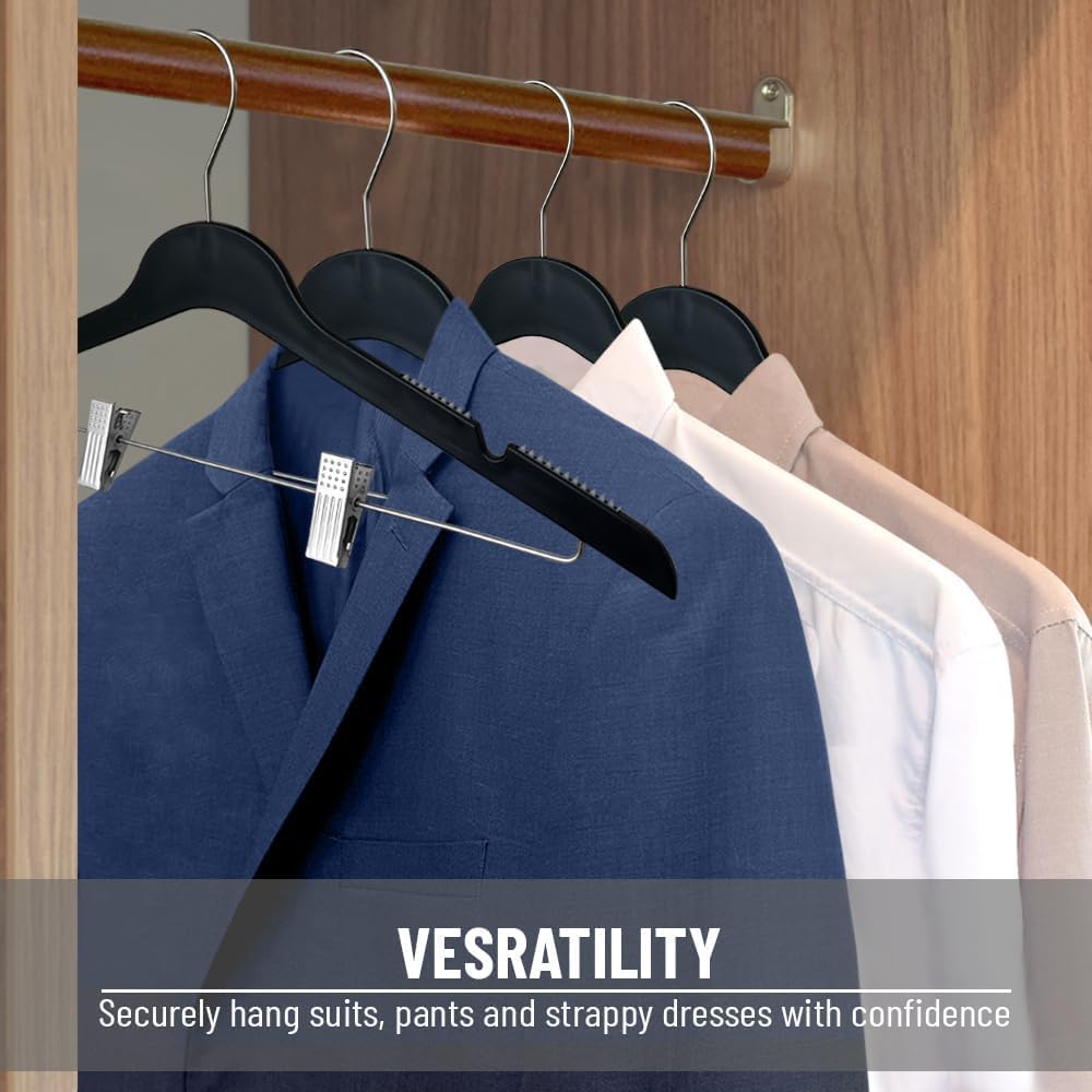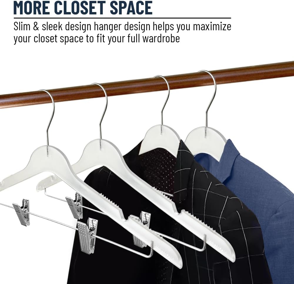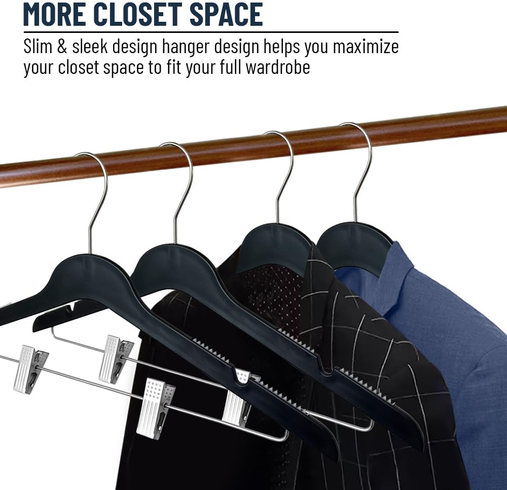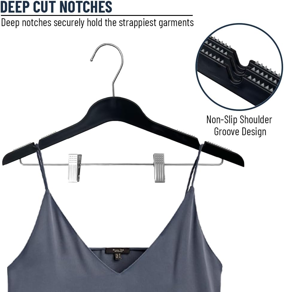 All Hung Up Hangers Slim Plastic Hangers with Clips (Black, 24pk)