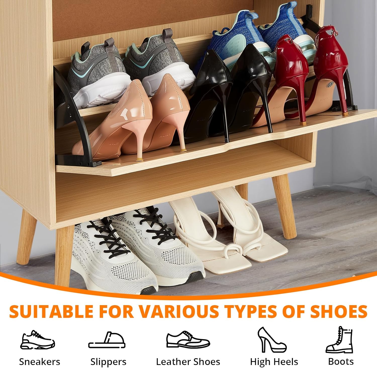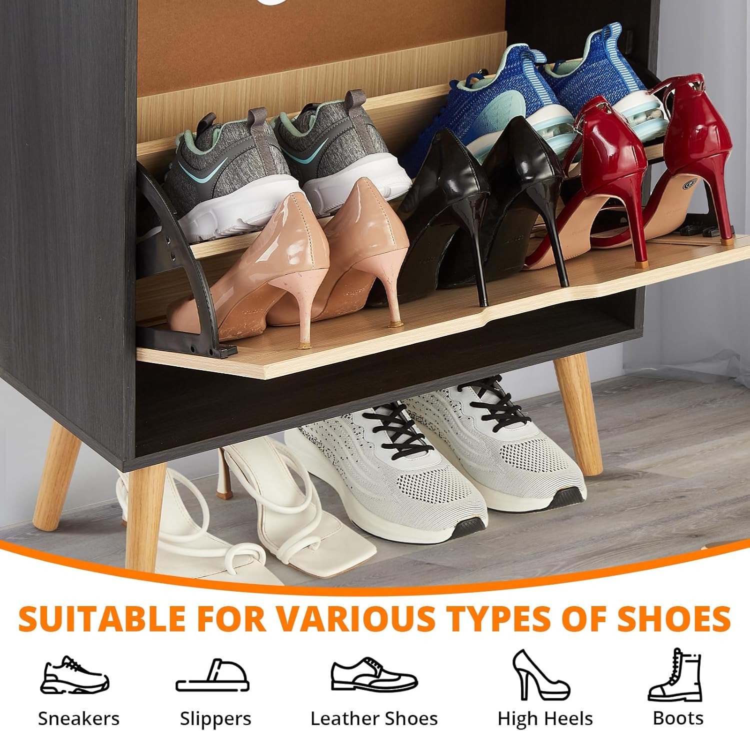 GarveeHome Wave Design Shoe Cabinet with 3 Slip Drawers, 2 Drawers, Raised Edges, Fluted Shoe Cabinet, Slim Hidden Shoe Organizer, Wooden Shoe Storage for Entryway, Front Door, Living Room, Wood