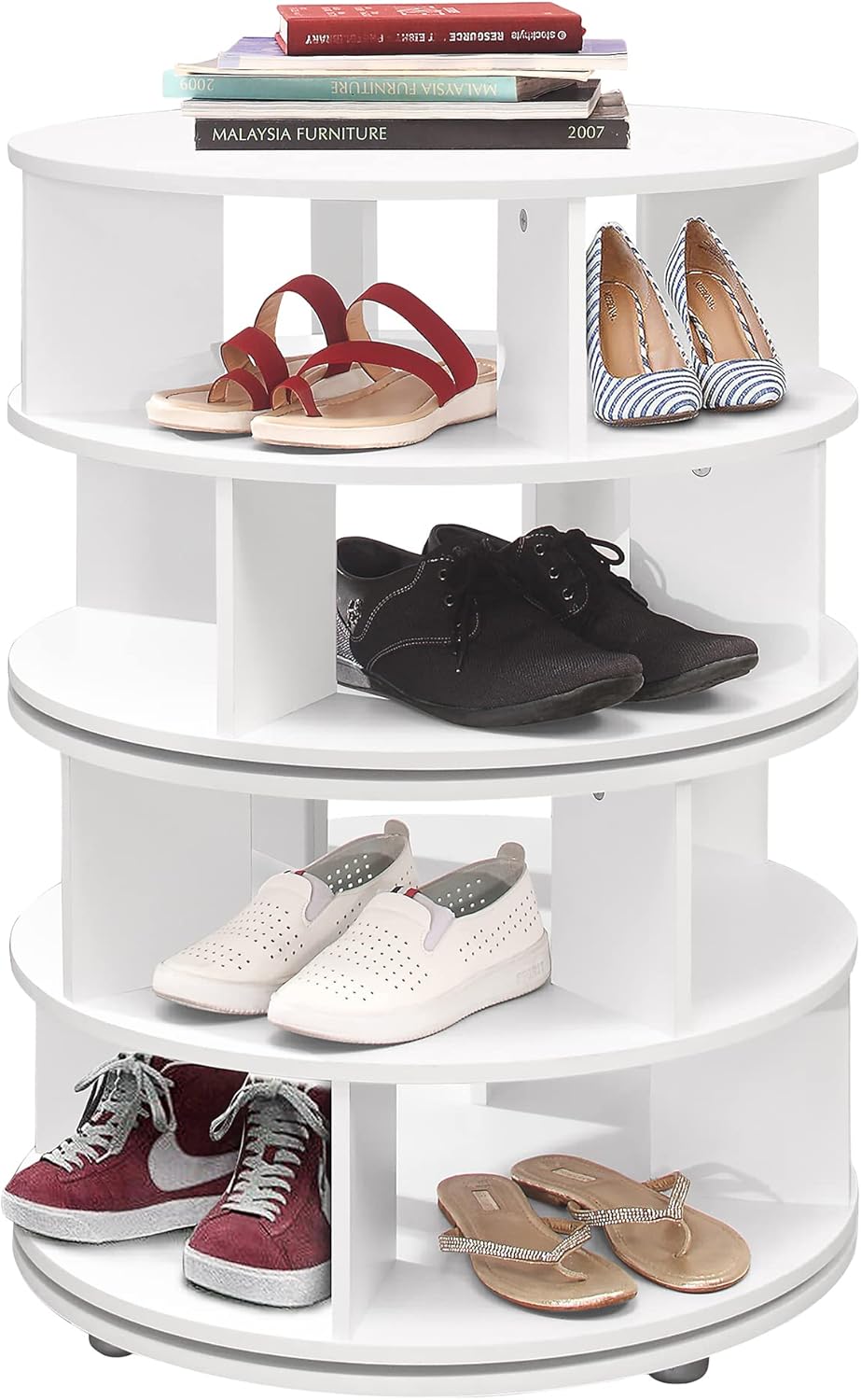 KB Designs - Revolving 16 Pair Shoe Rack Storage Organizer, White