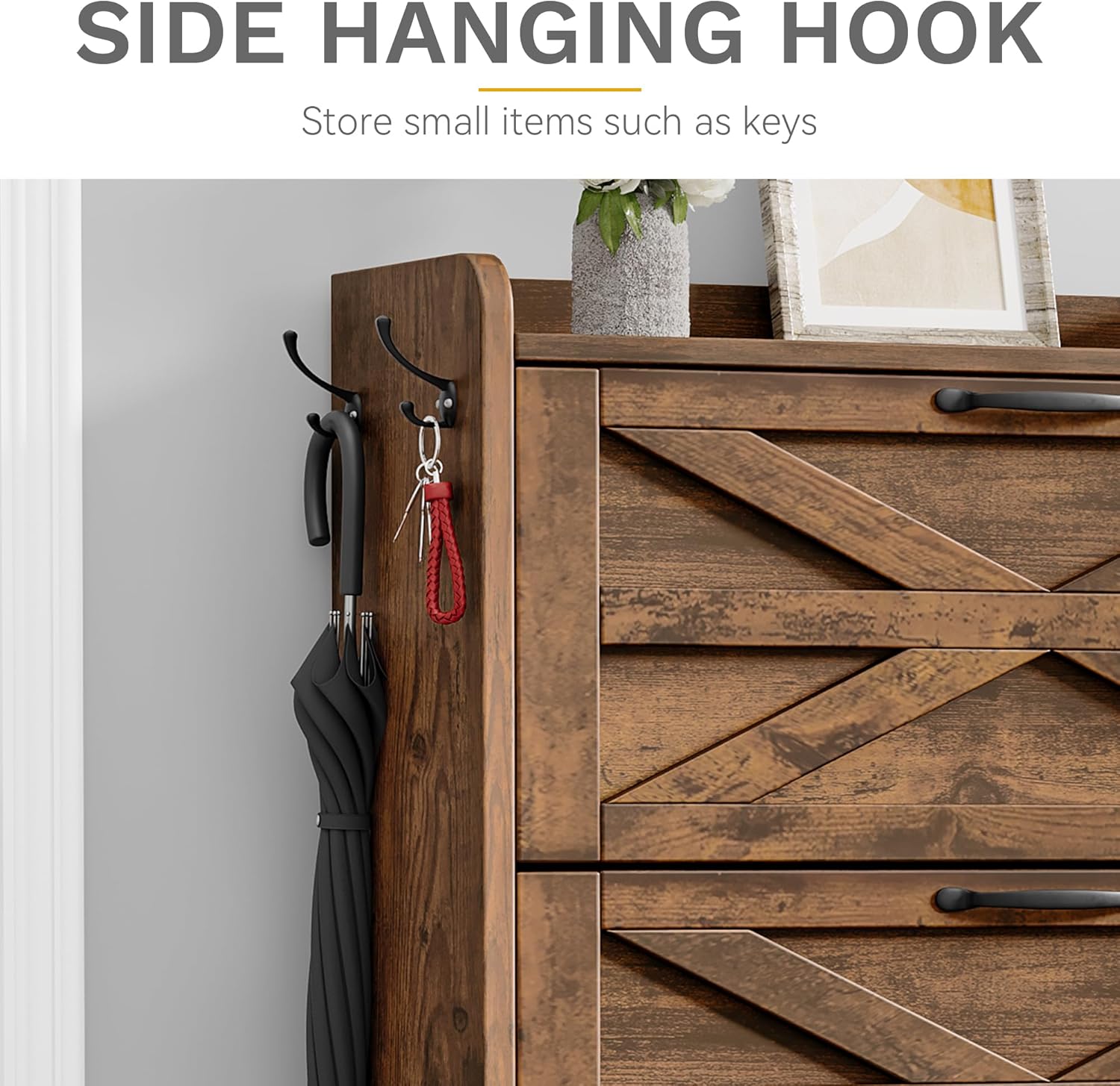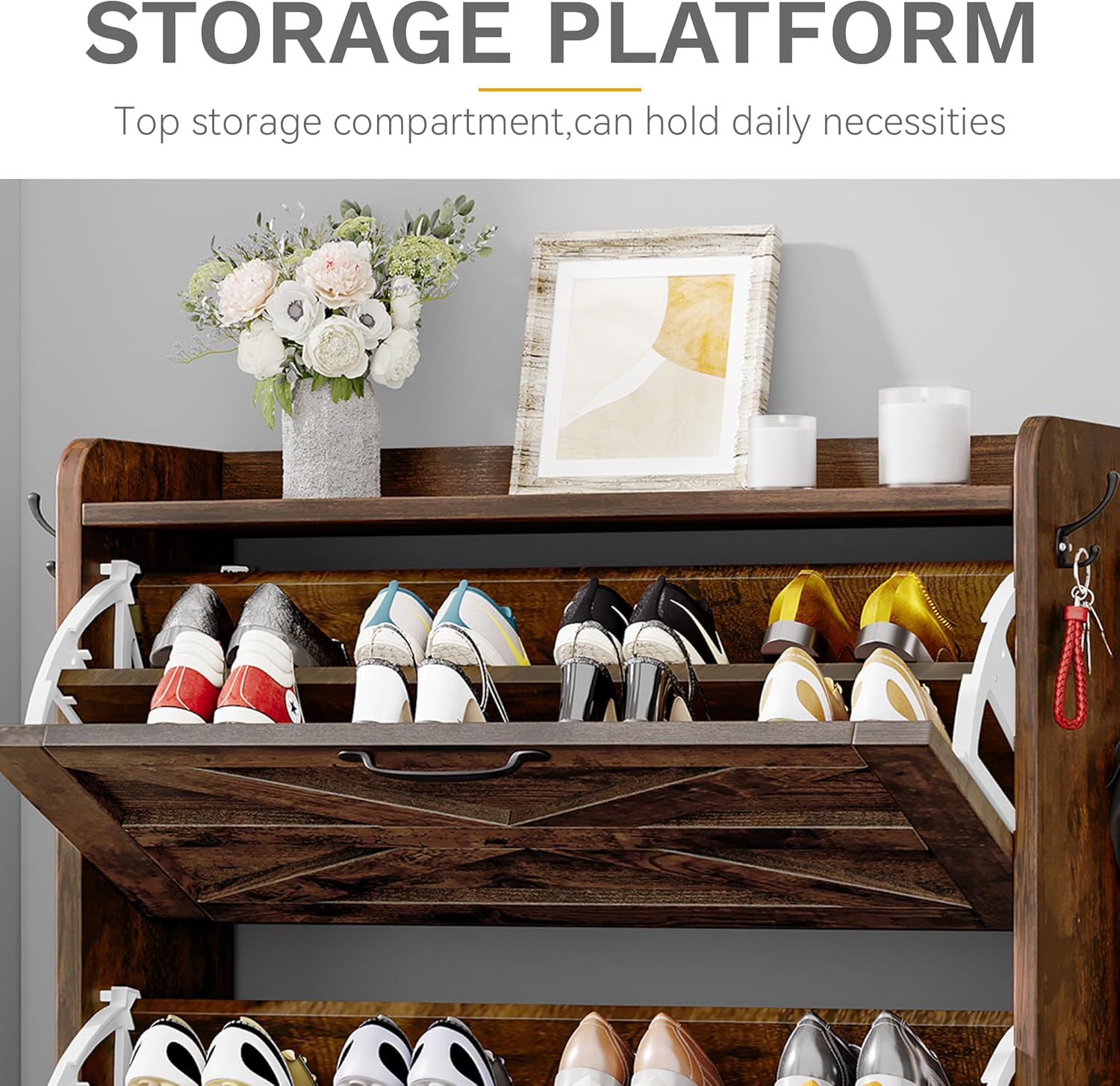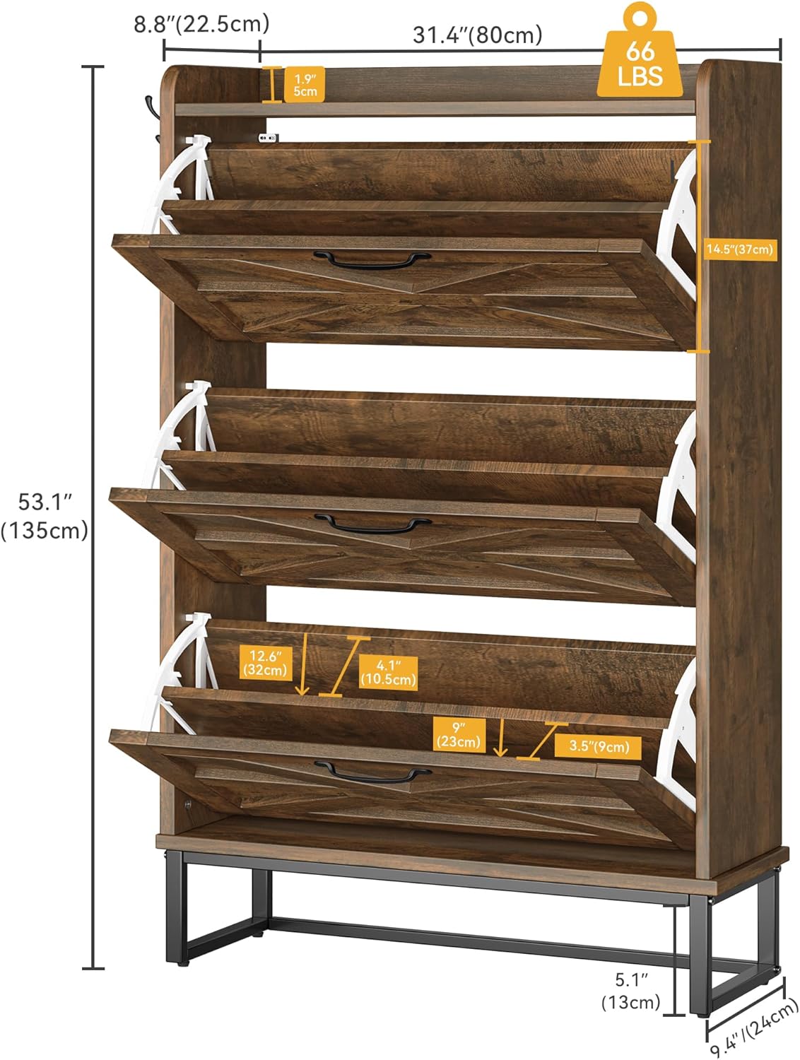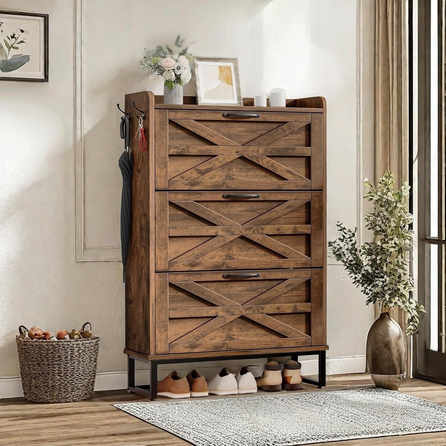 DWVO Shoe Cabinet with 3 Flip Drawers, Farmhouse Shoe Storage Organizer with Metal Legs for 24 Pairs of Shoes, Narrow Slim Shoe Rack Cabinet for Entryway, Living Room, Hallway (Dark Rustic Oak)