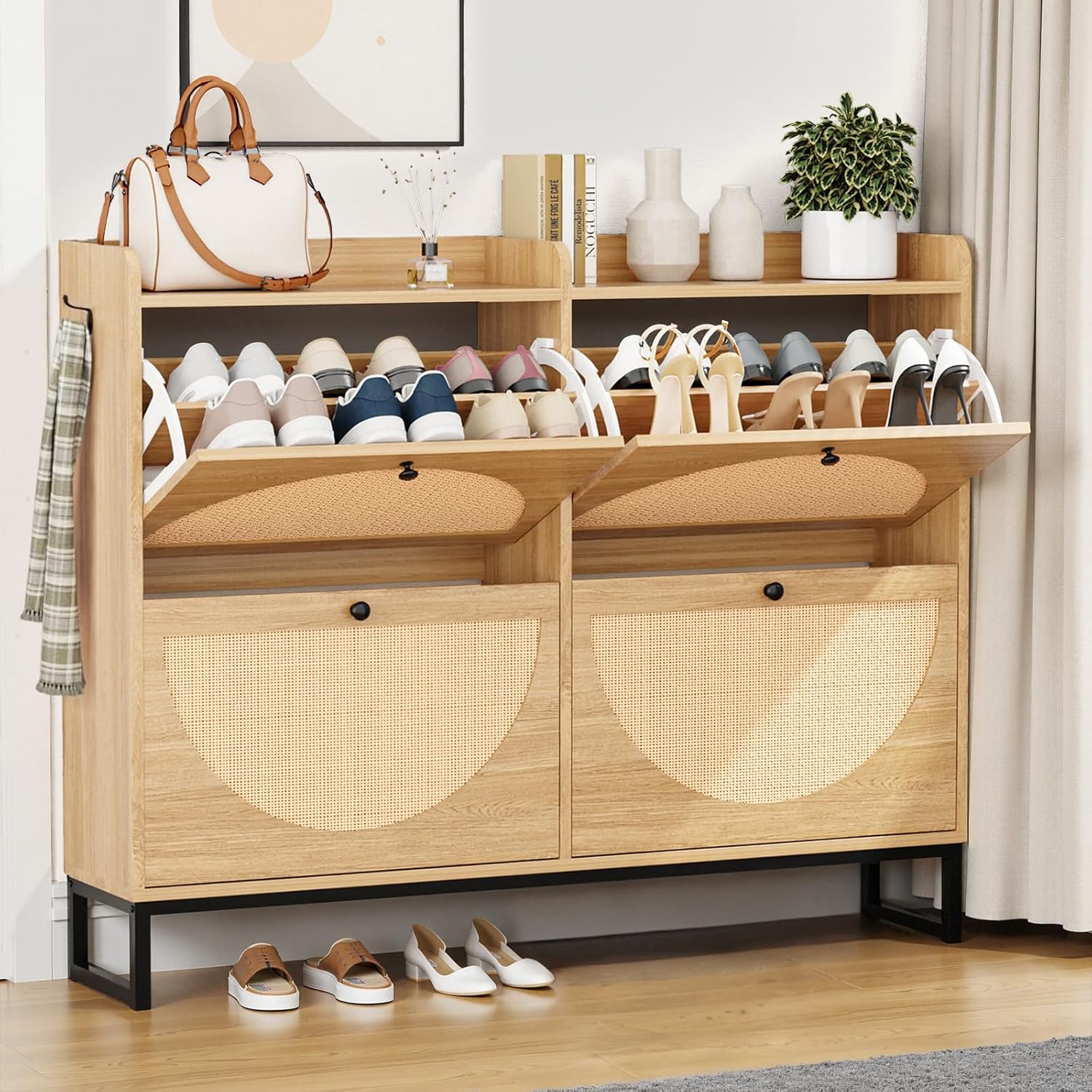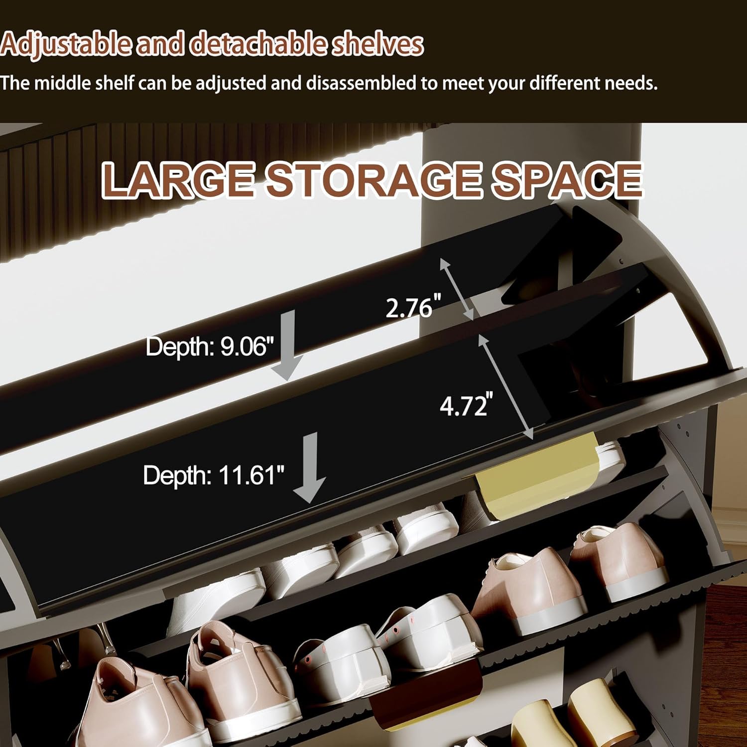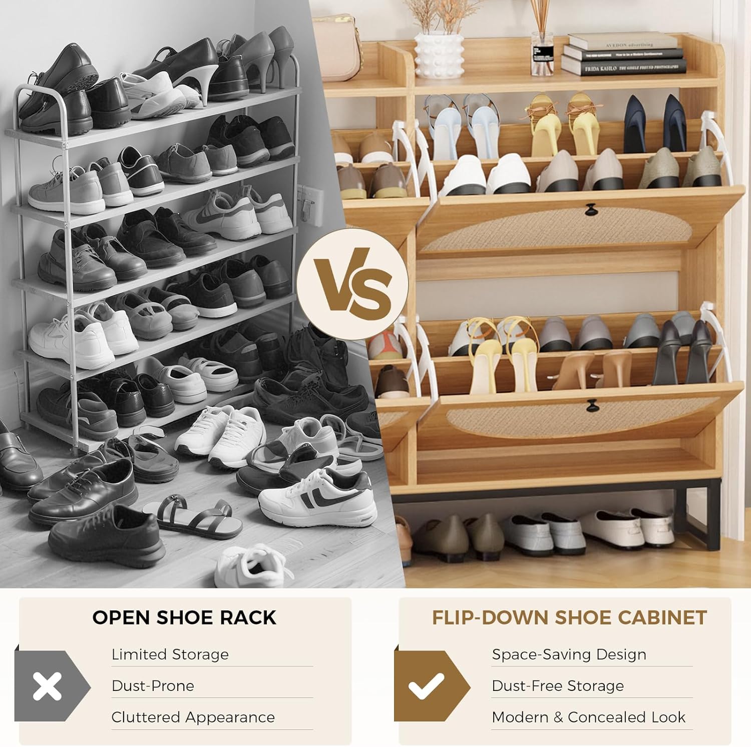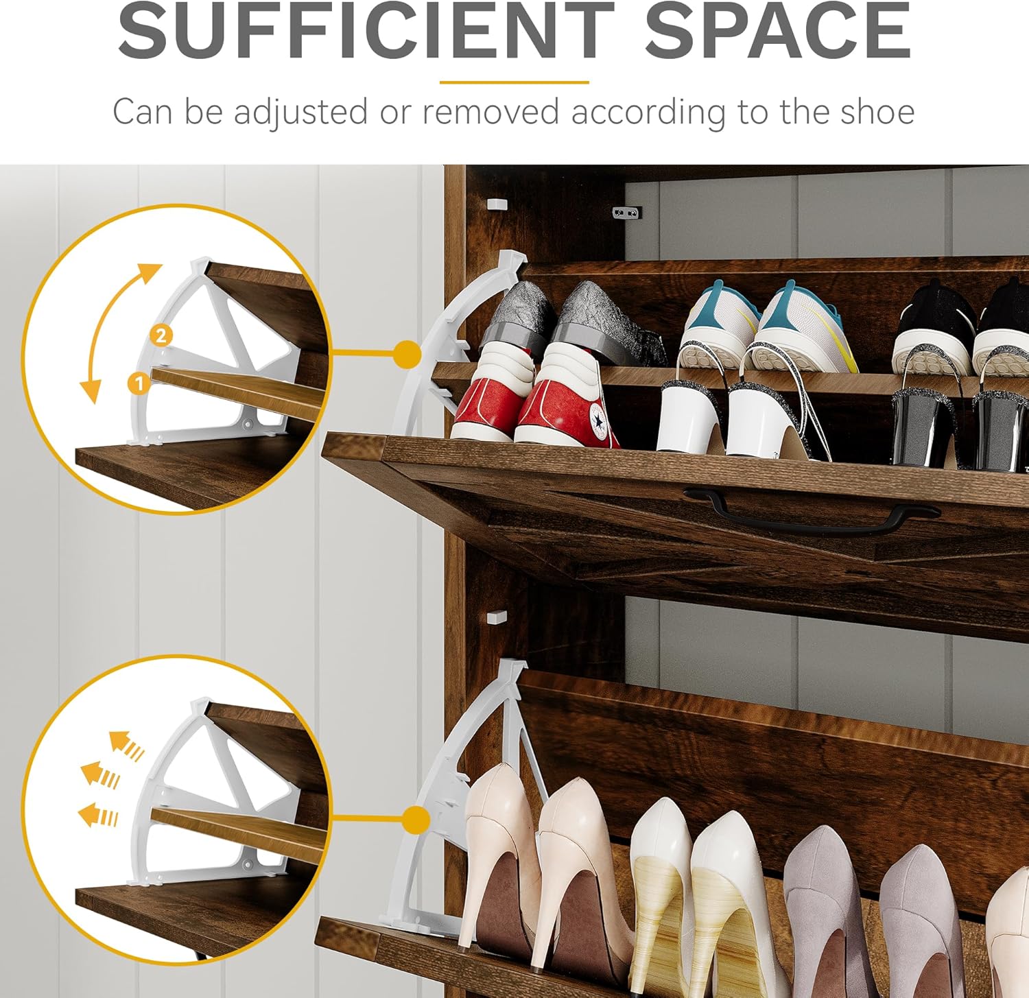 Shoe Cabinet Storage,Modern Shoe Organizer with 2 Flip Drawers,Wooden Shoe Cabinet for Entryway,Freestanding Shoe Closet Cabinet for Hallway,Living Room,Walnut Furniture