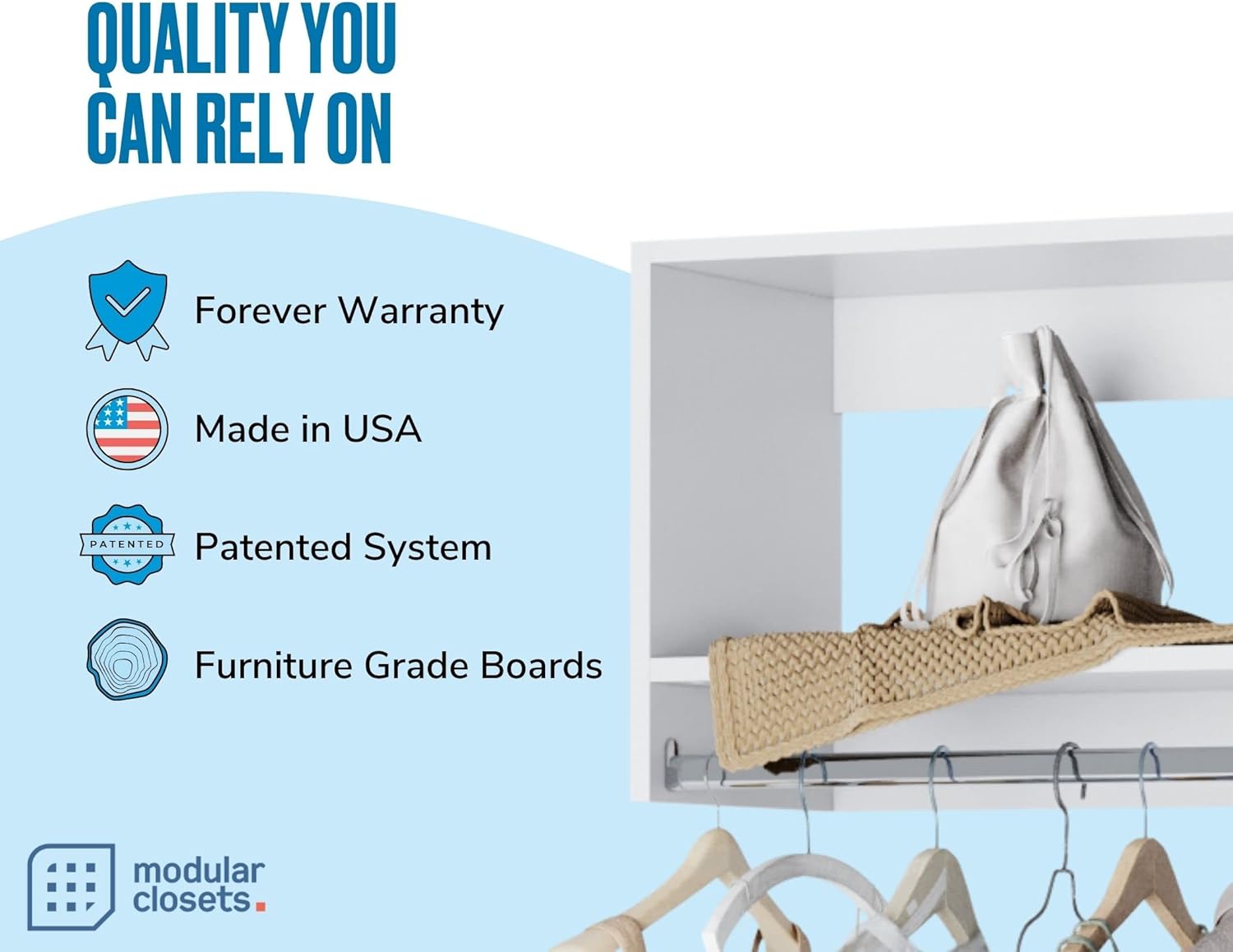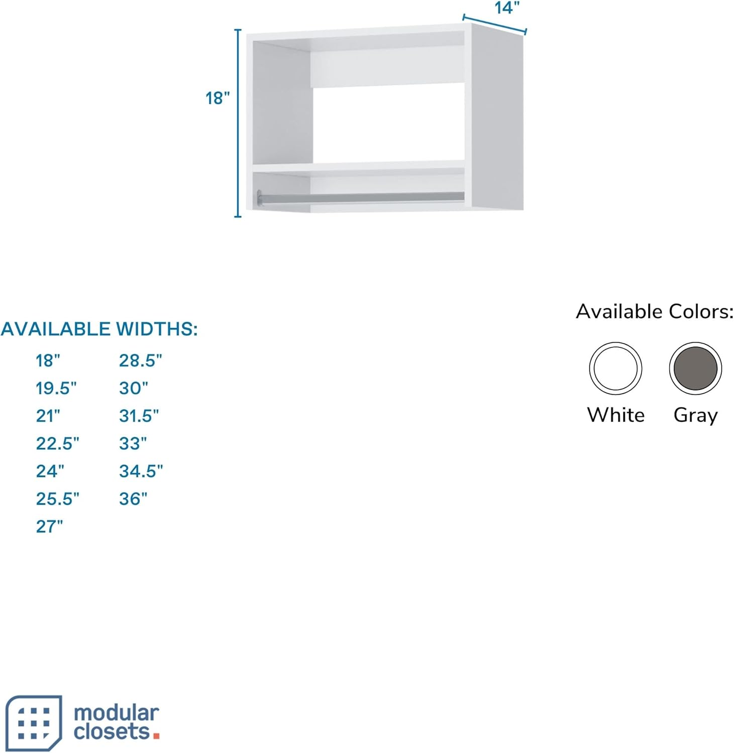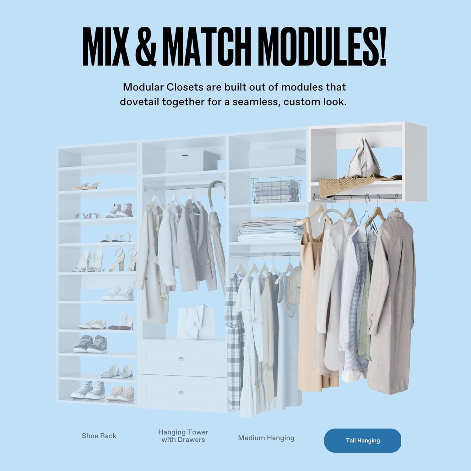 Tall Hanging Closet Unit - Modular Closet System for Hanging - Corner Closet System - Closet Organizers and Storage Shelves (White, 25.5 inches Wide) Closet Shelves