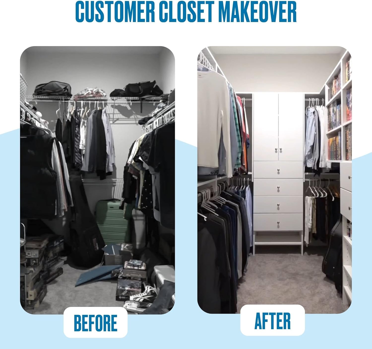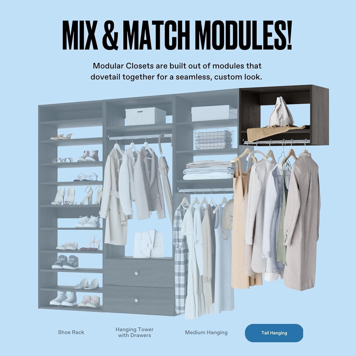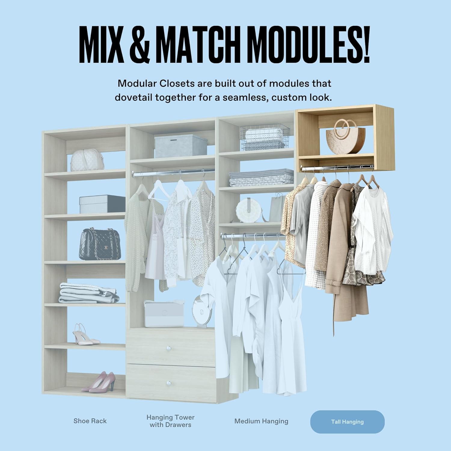 Tall Hanging Closet Unit - Modular Closet System for Hanging - Corner Closet System - Closet Organizers and Storage Shelves (White, 25.5 inches Wide) Closet Shelves