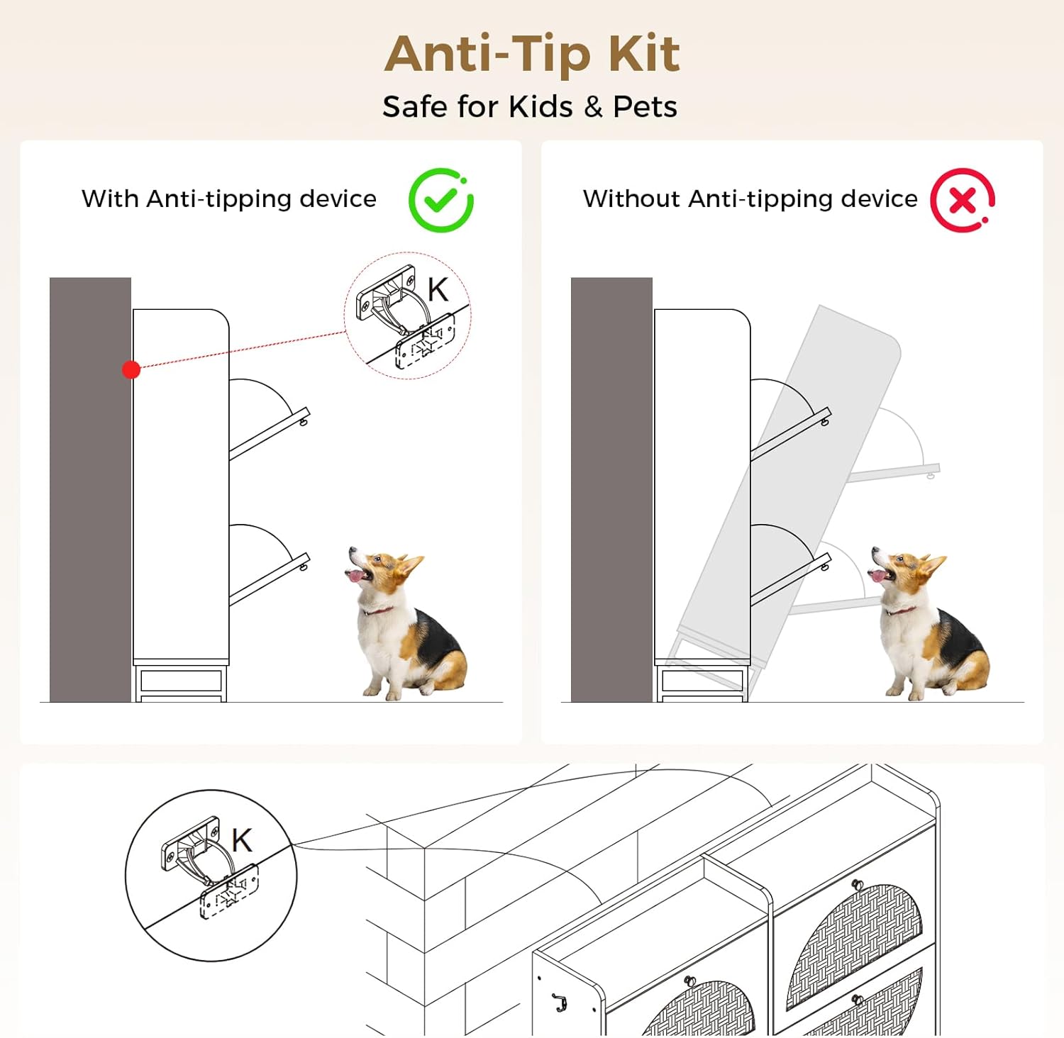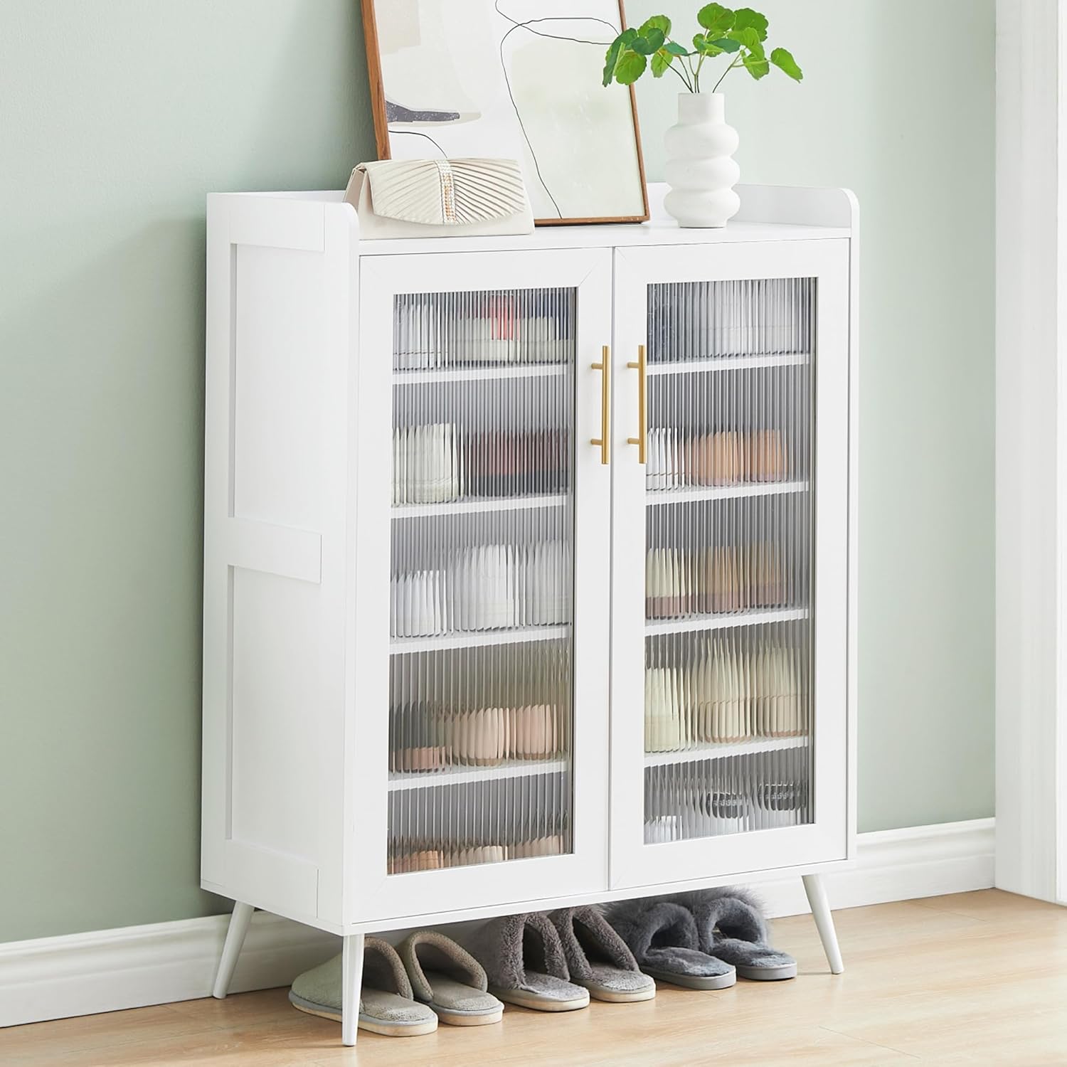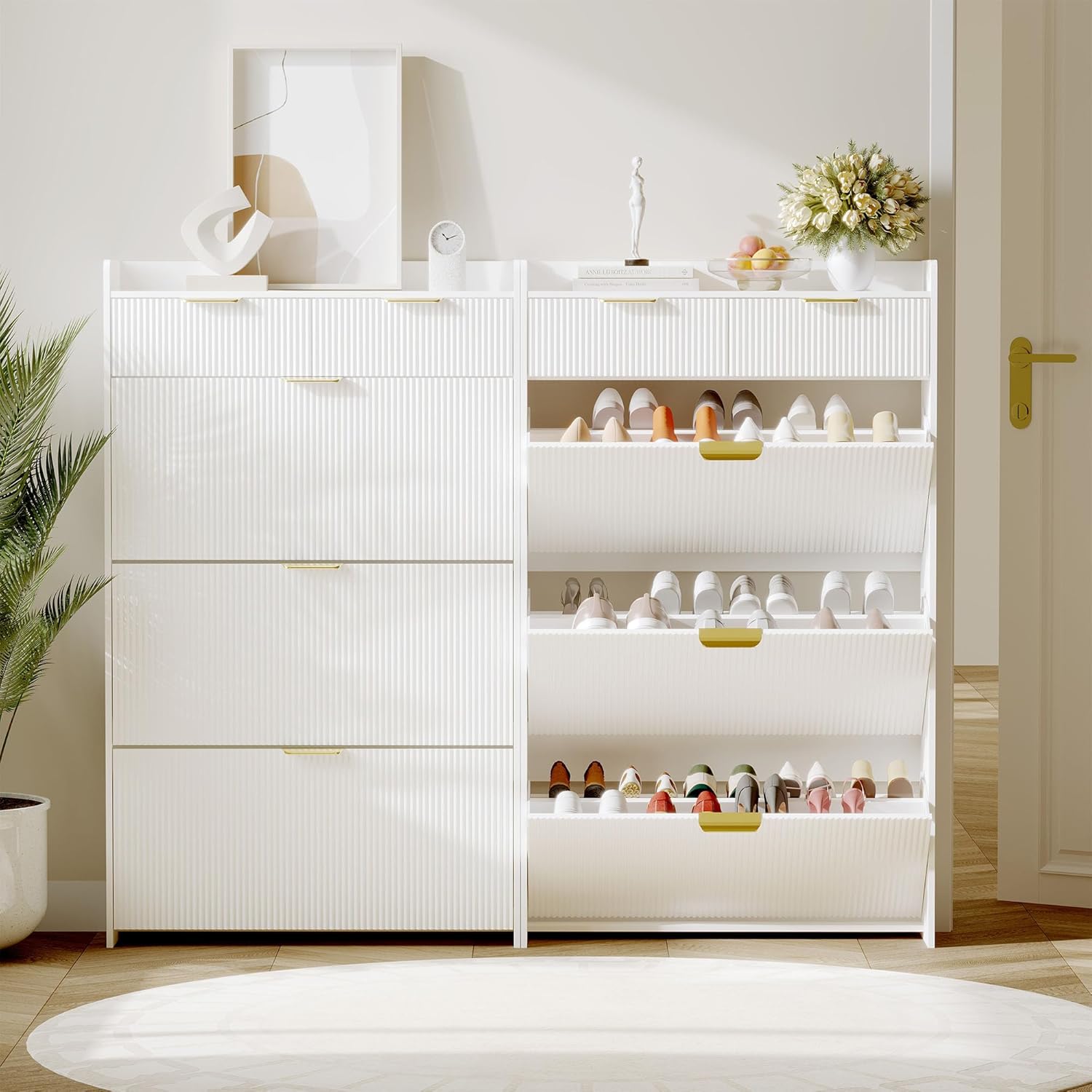 GarveeHome Wave Design Shoe Cabinet with 3 Slip Drawers, 2 Drawers, Raised Edges, Fluted Shoe Cabinet, Slim Hidden Shoe Organizer, Wooden Shoe Storage for Entryway, Front Door, Living Room, White