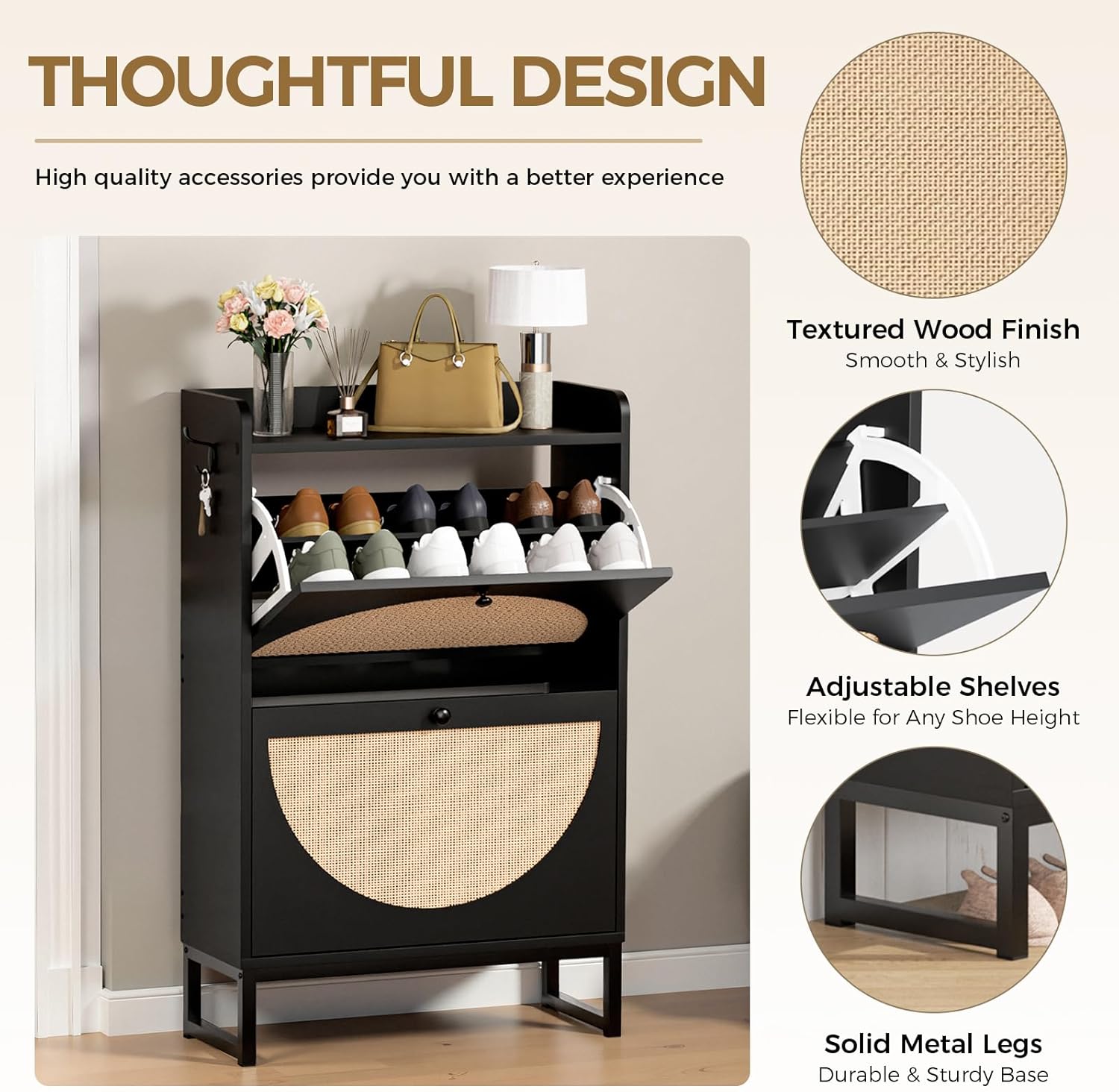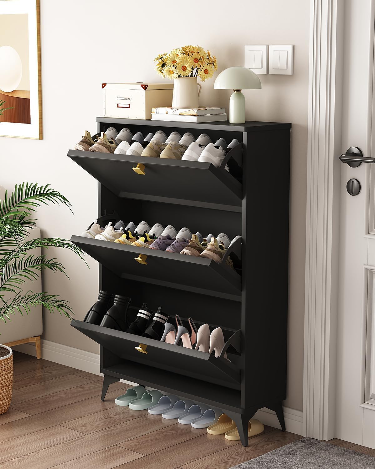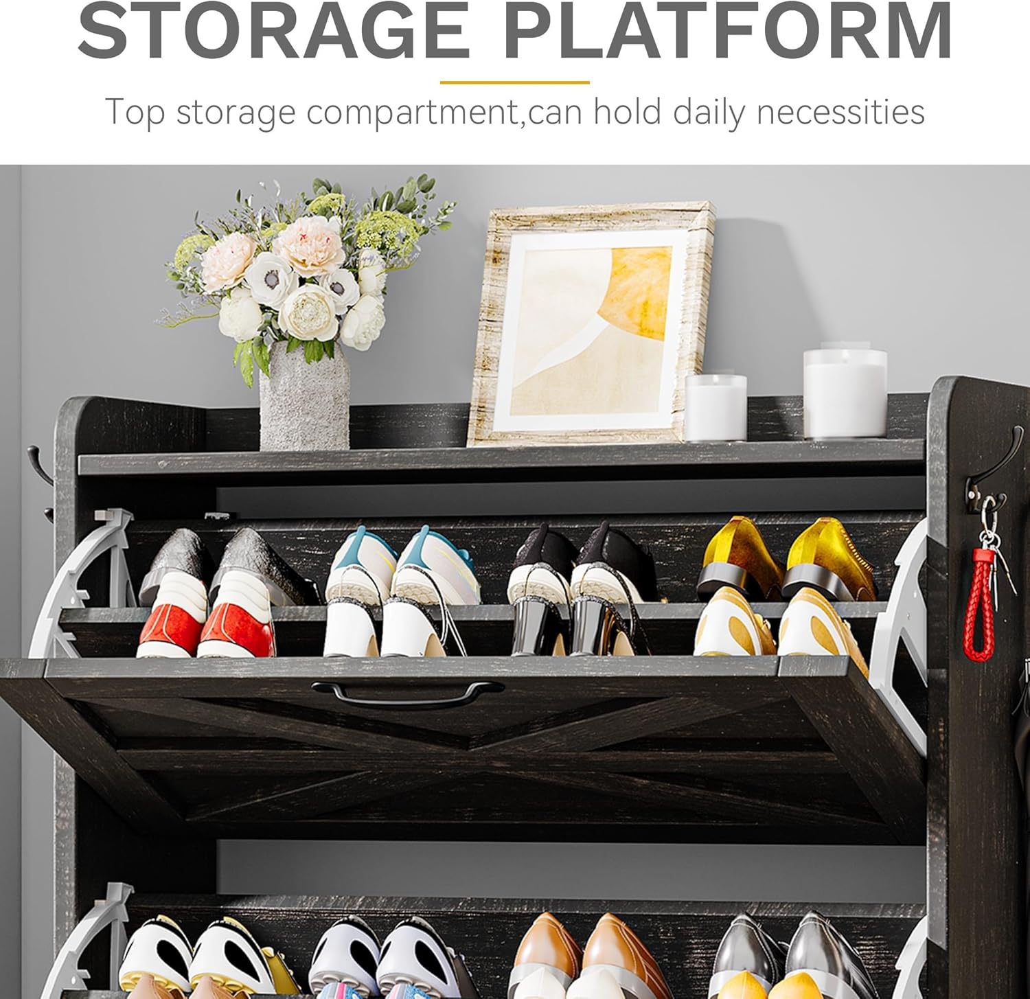 LUCKLIFE Shoe Storage Cabinet, Slim Shoe Cabinet Storage with Flip Drawers, Hidden Narrow Shoe Cabinet for Entryway Hallway