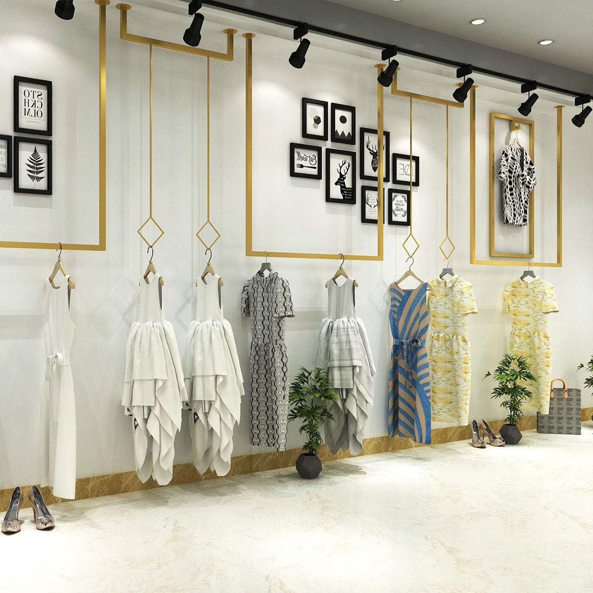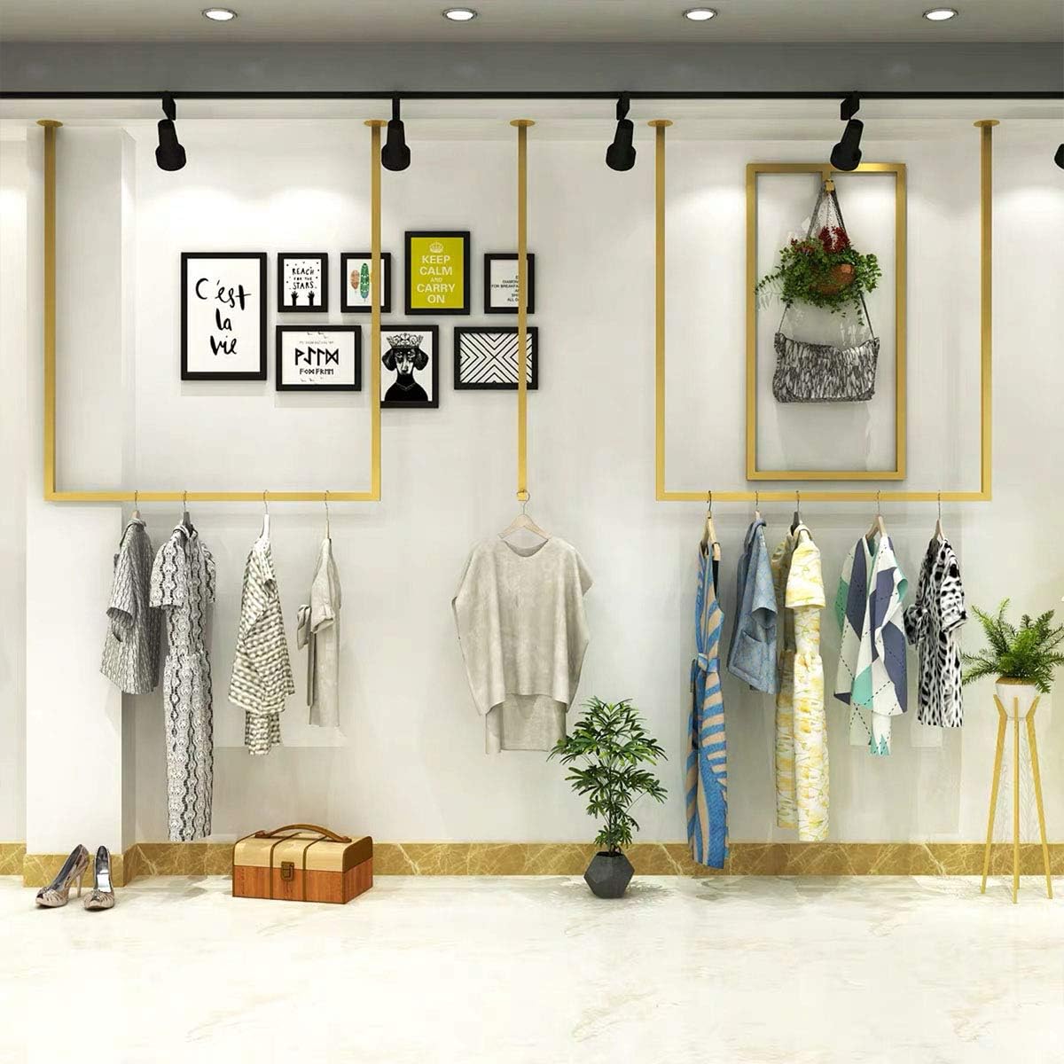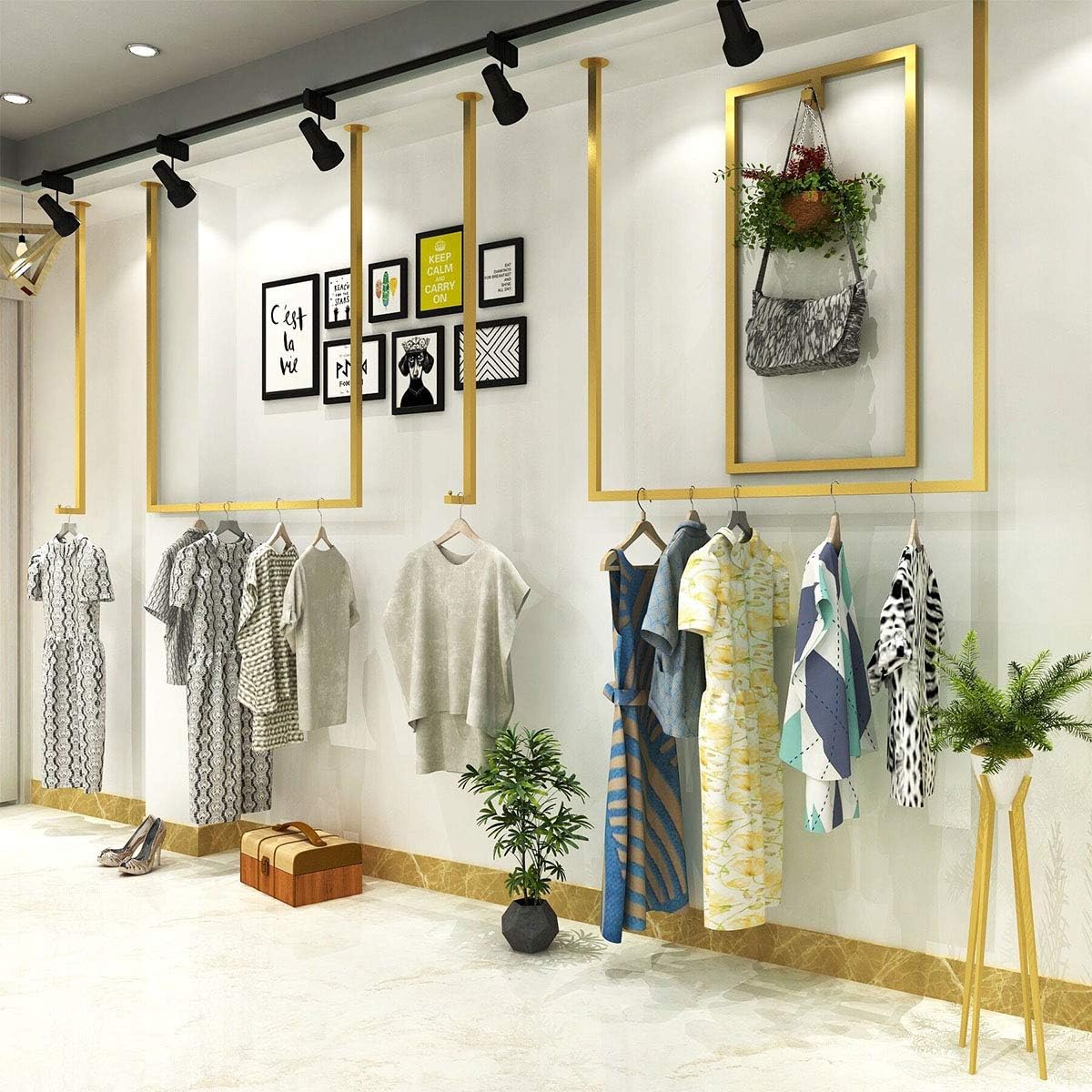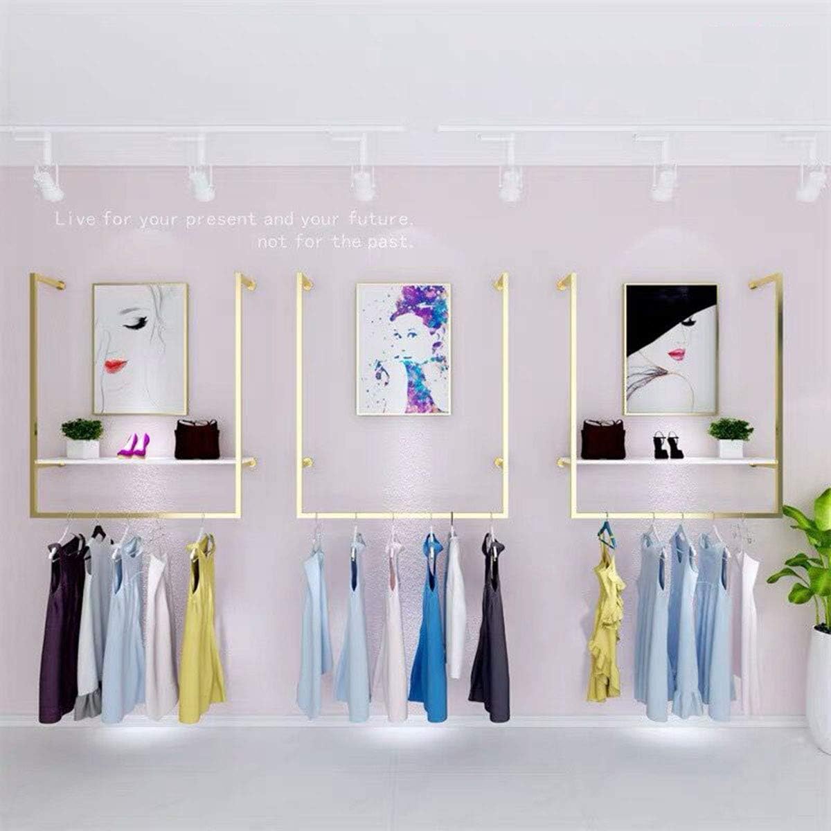 Clothing Store Simple Wall Mounted Metal Display rack, Window Hanging Garment Racks, U-shaped Shelf, Wedding Dress Organization, Home Clothes Rod Storage Towel Rack (Gold C, 59" L)