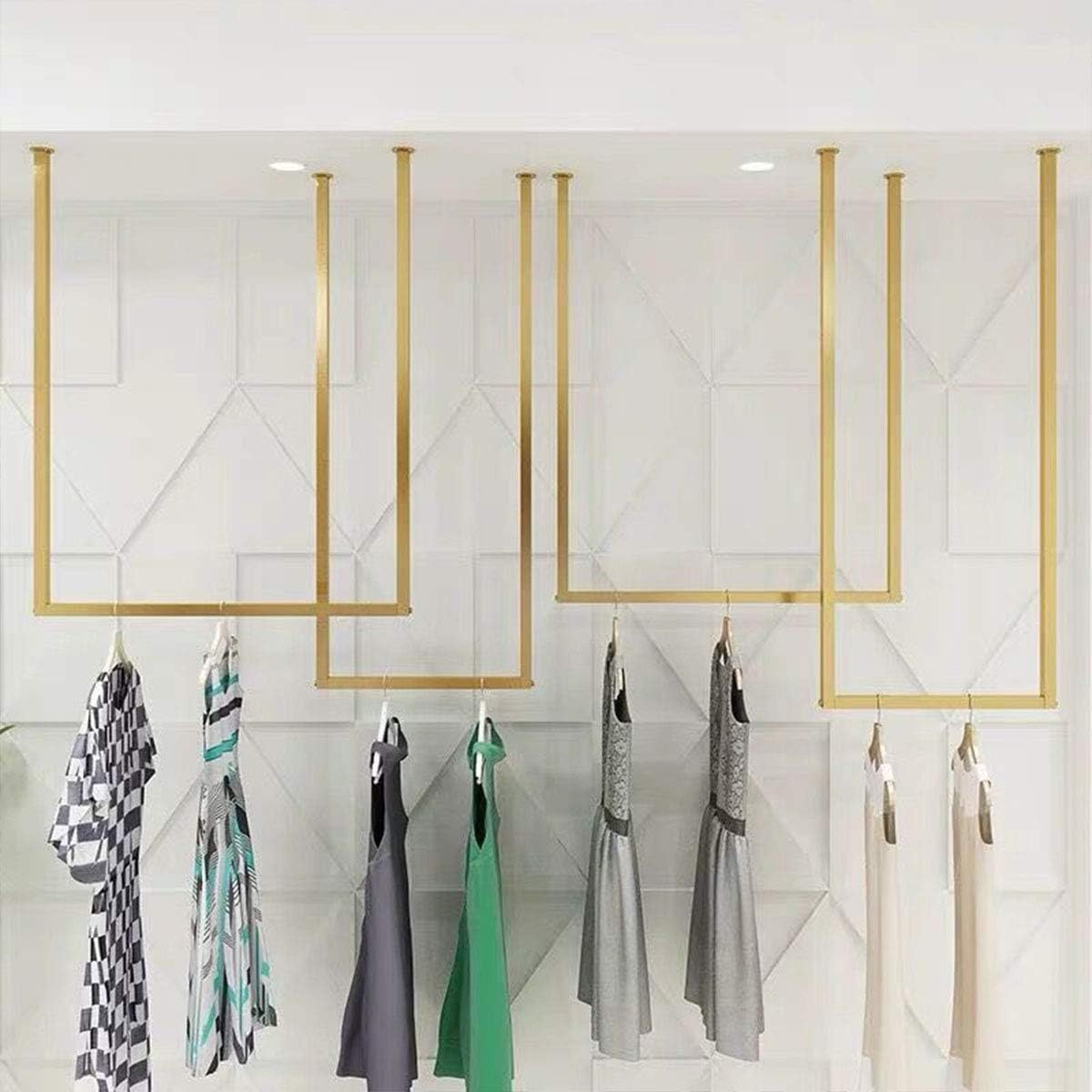 Clothing Store Simple Wall Mounted Metal Display Rack, Window Ceiling Hanging Garment Racks, U-shaped Shelf, Wedding Dress Organization, Home Clothes Rod Storage Towel Rack (Gold A, 39" L)