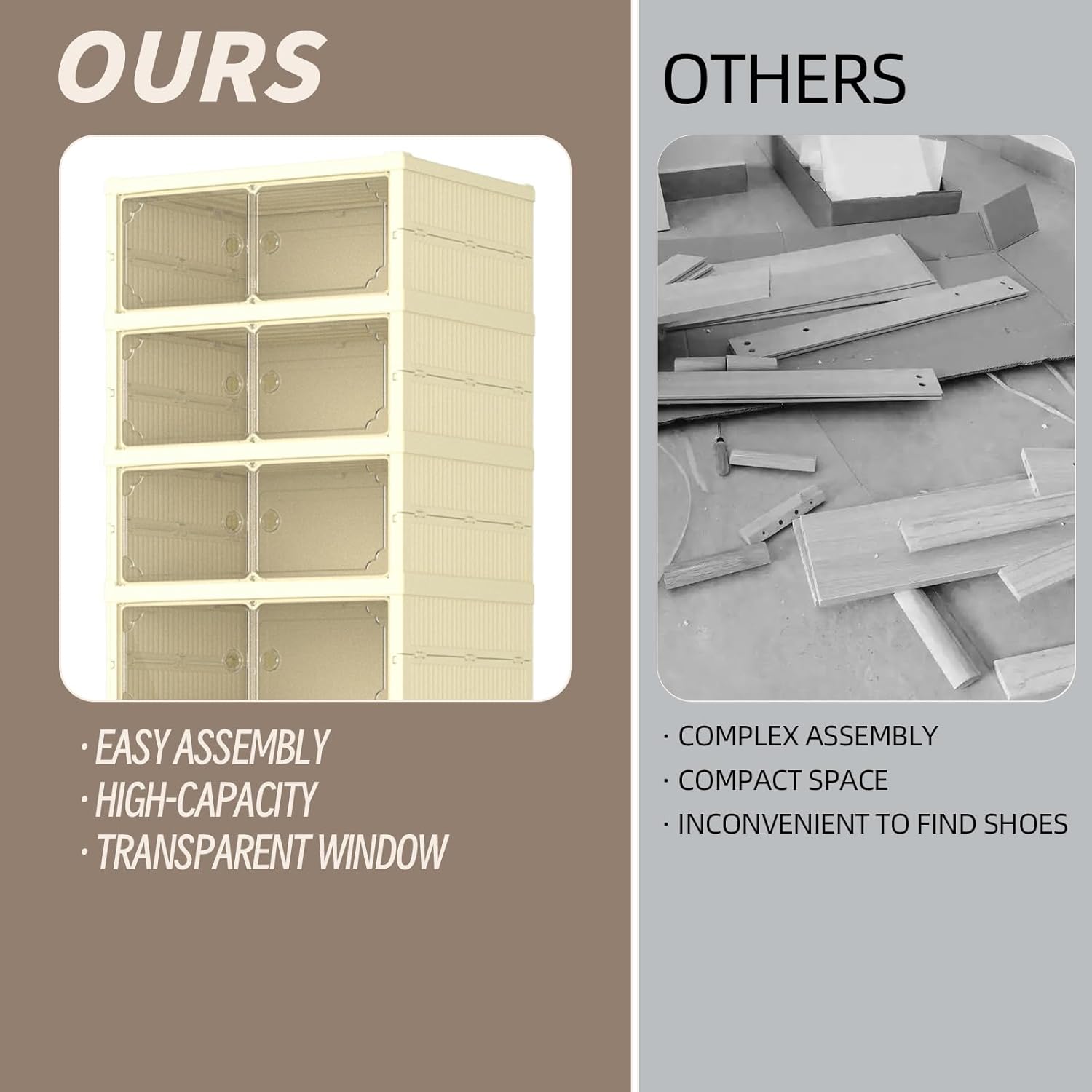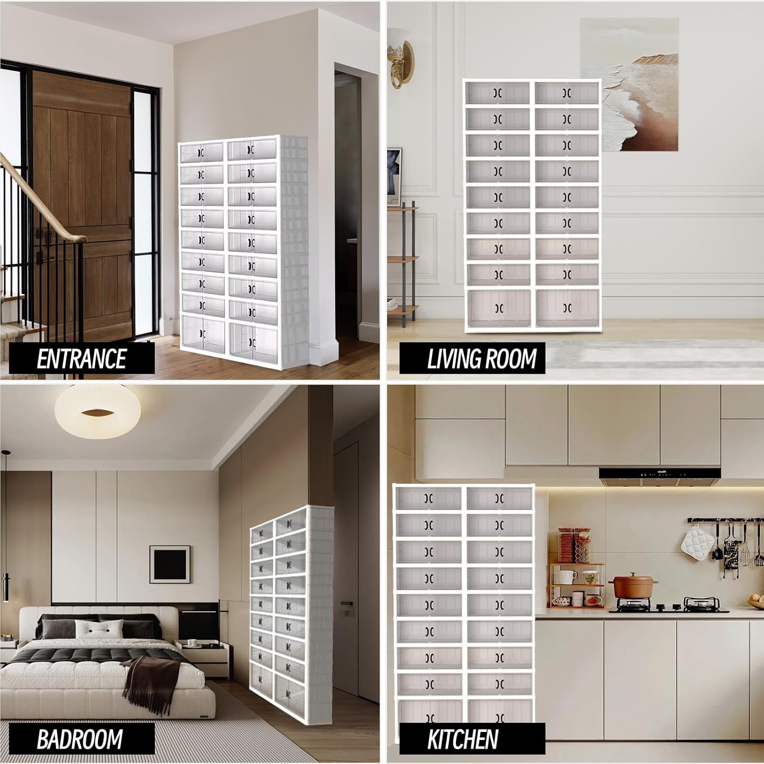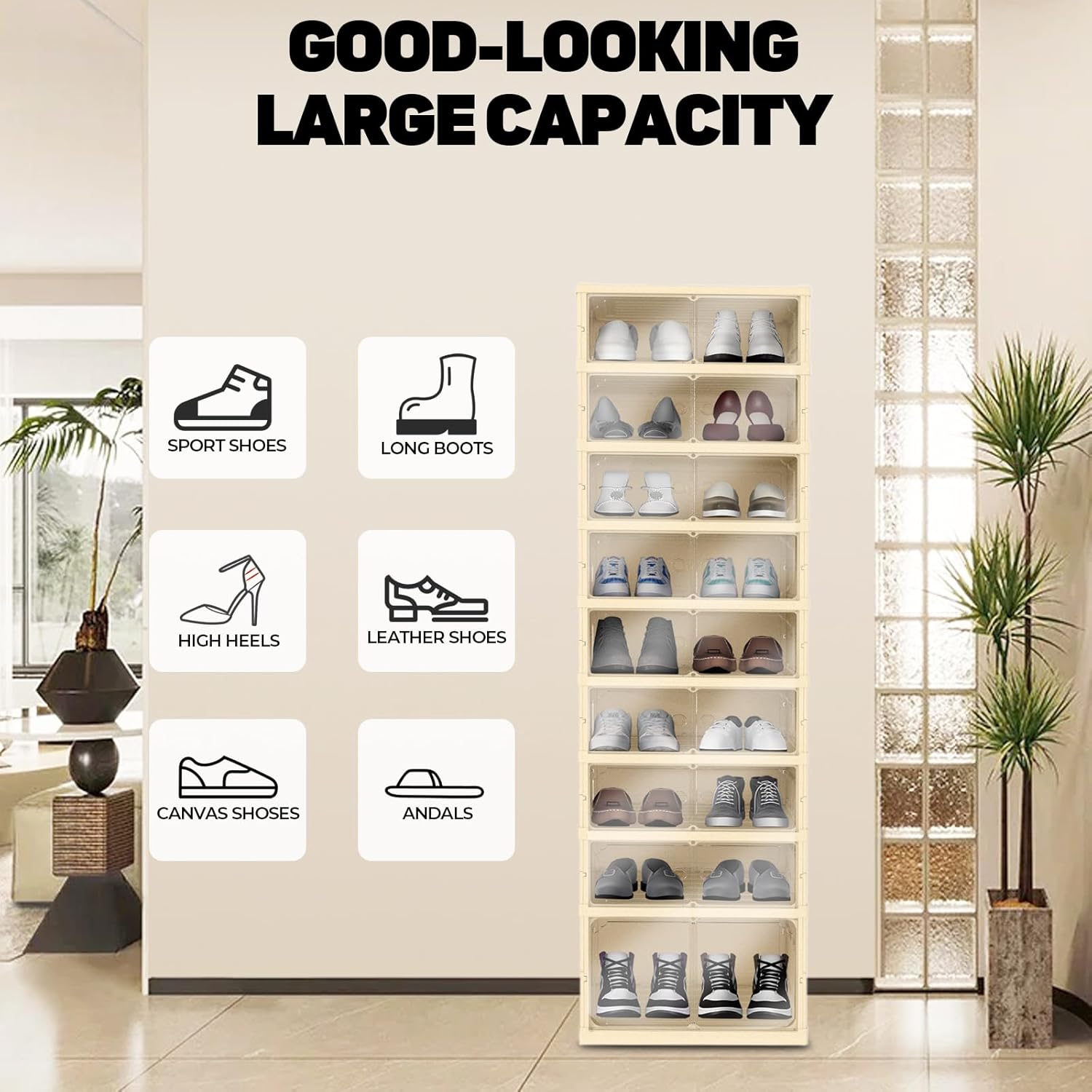 AntBox Portable Shoe Rack Organizer, Stackable Sneaker Organizer Cabinet with Magnetic Door, Folding Design, Clear Plastic Storage Container, 10 Tier 20 Pairs (Clear) - S2-S20-D10(C)