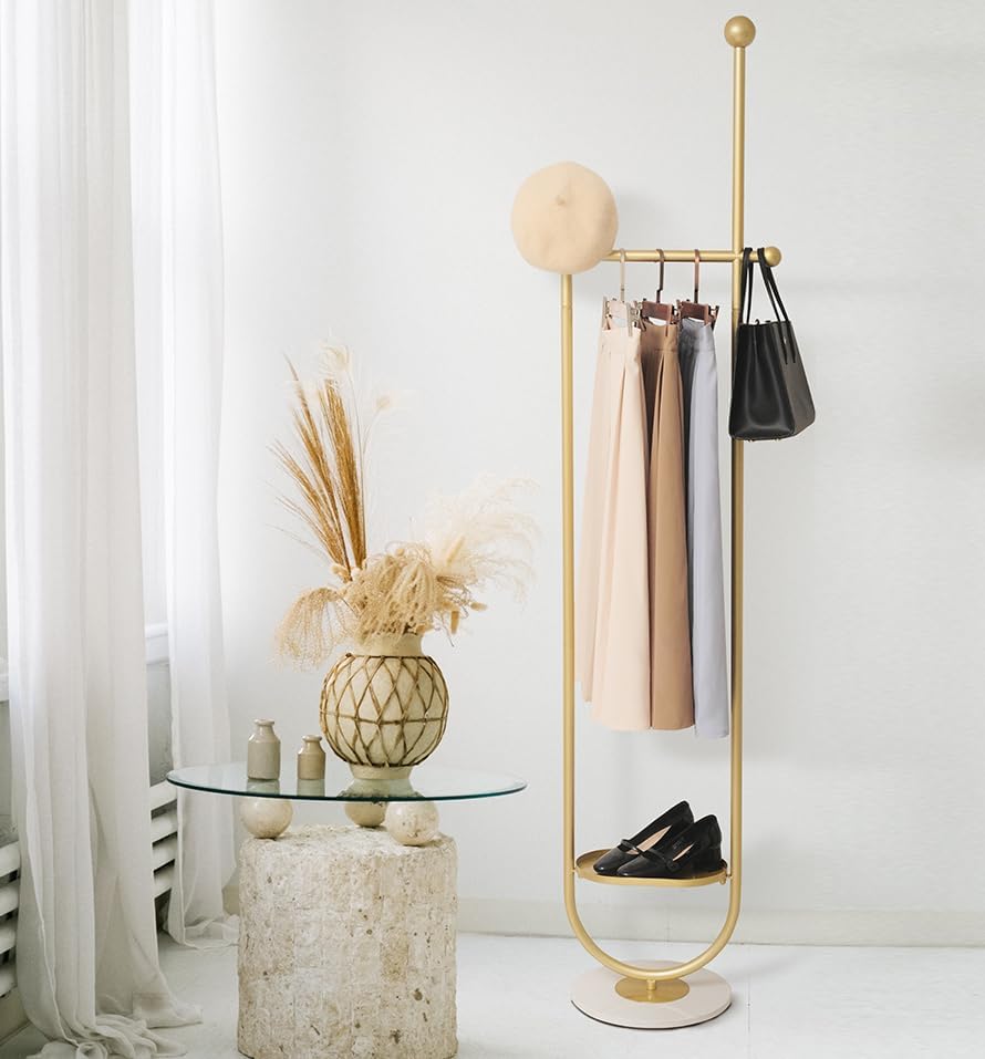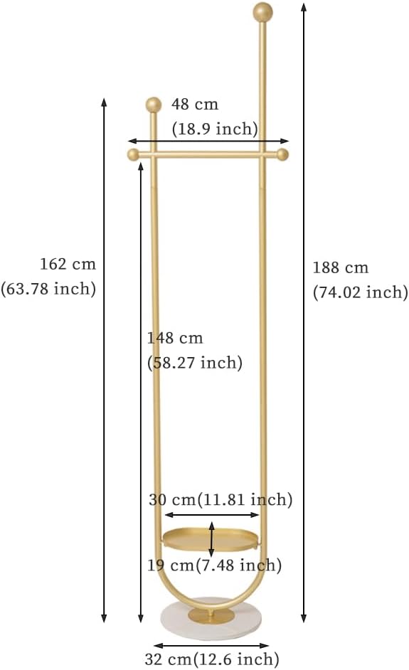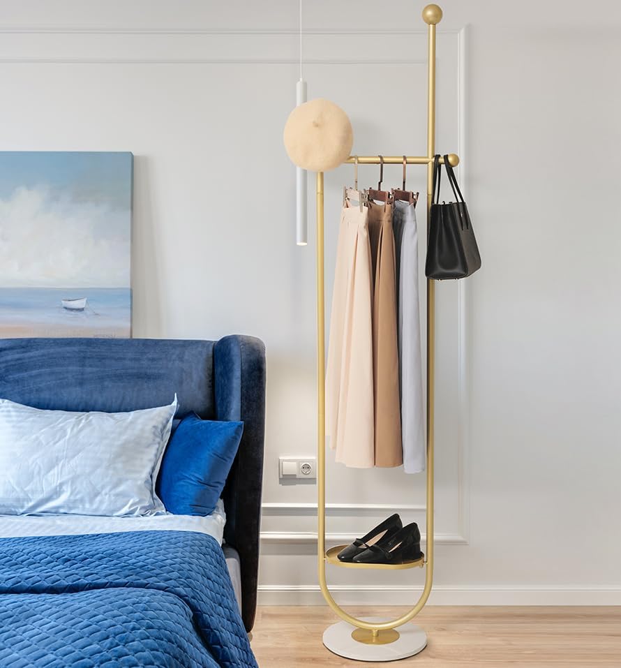Clothing Rack - Marble Base Gold Metal Coat Stand for Hanging Clothes - Bedroom Standing Garment Rack - Heavy Duty Coat Hanger - Freestanding U Shaped