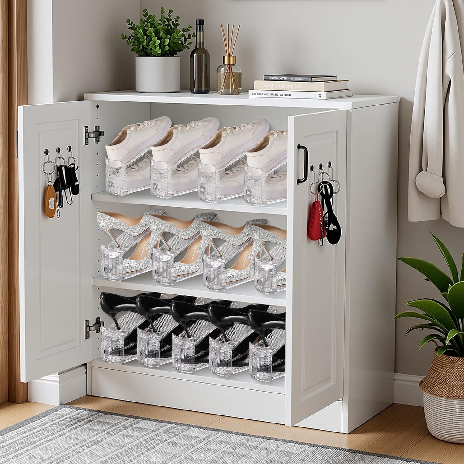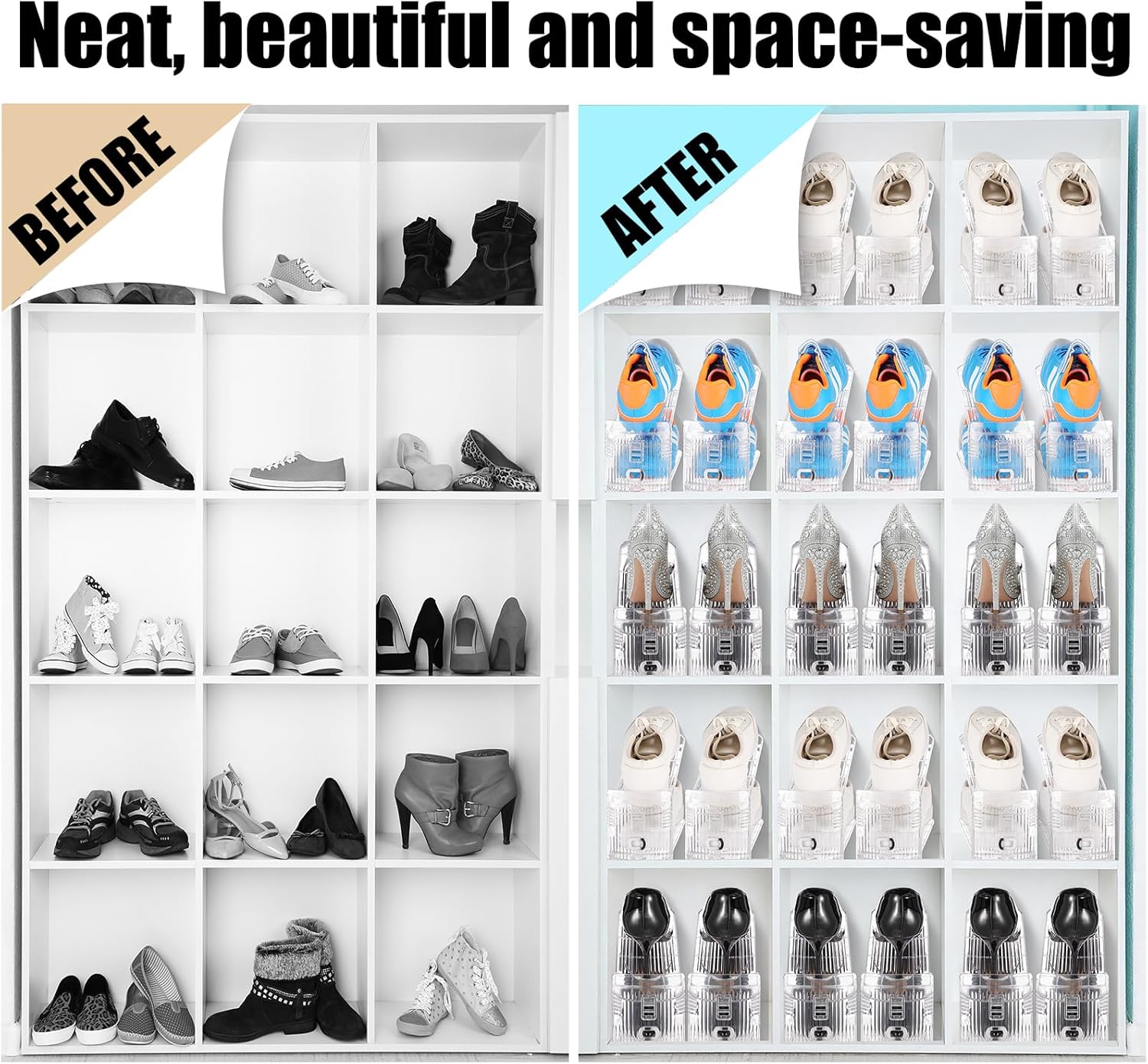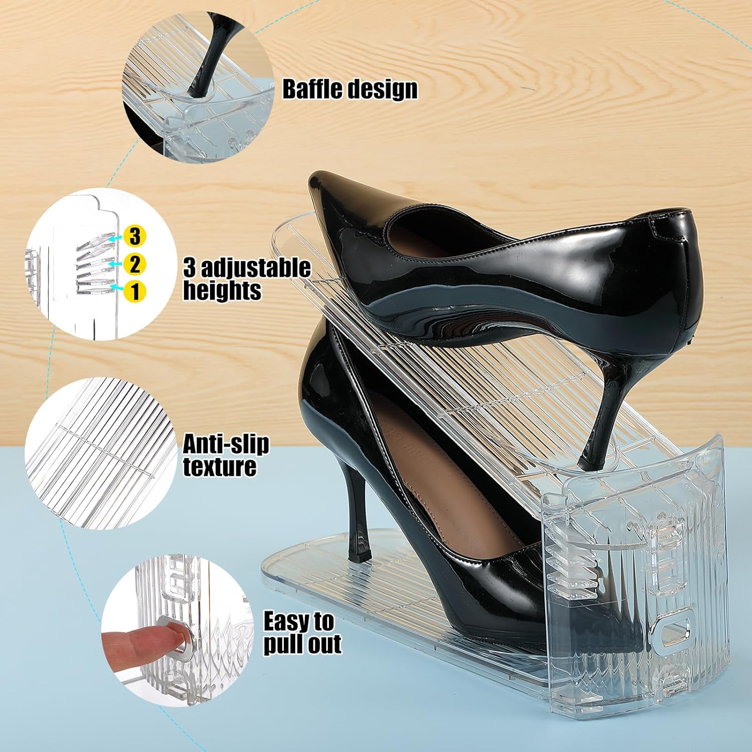 Clear Shoe Slots Organizer with Adjustable Height, Acrylic Closet Stacker Display, Storage Shoe Rack Organizer, Double Layer Holders for Shelf Wardrobe Space Saving(Clear,60 Pack)