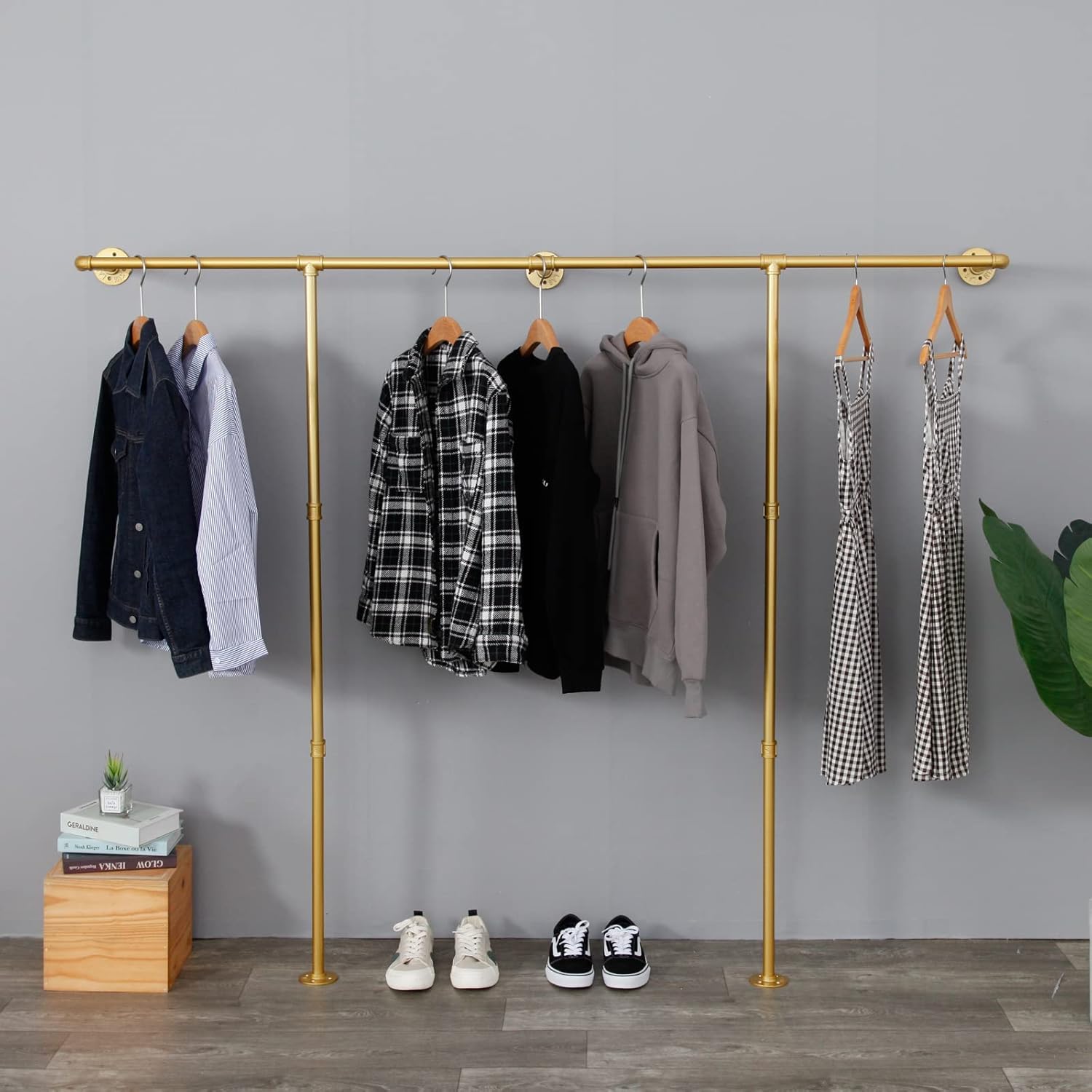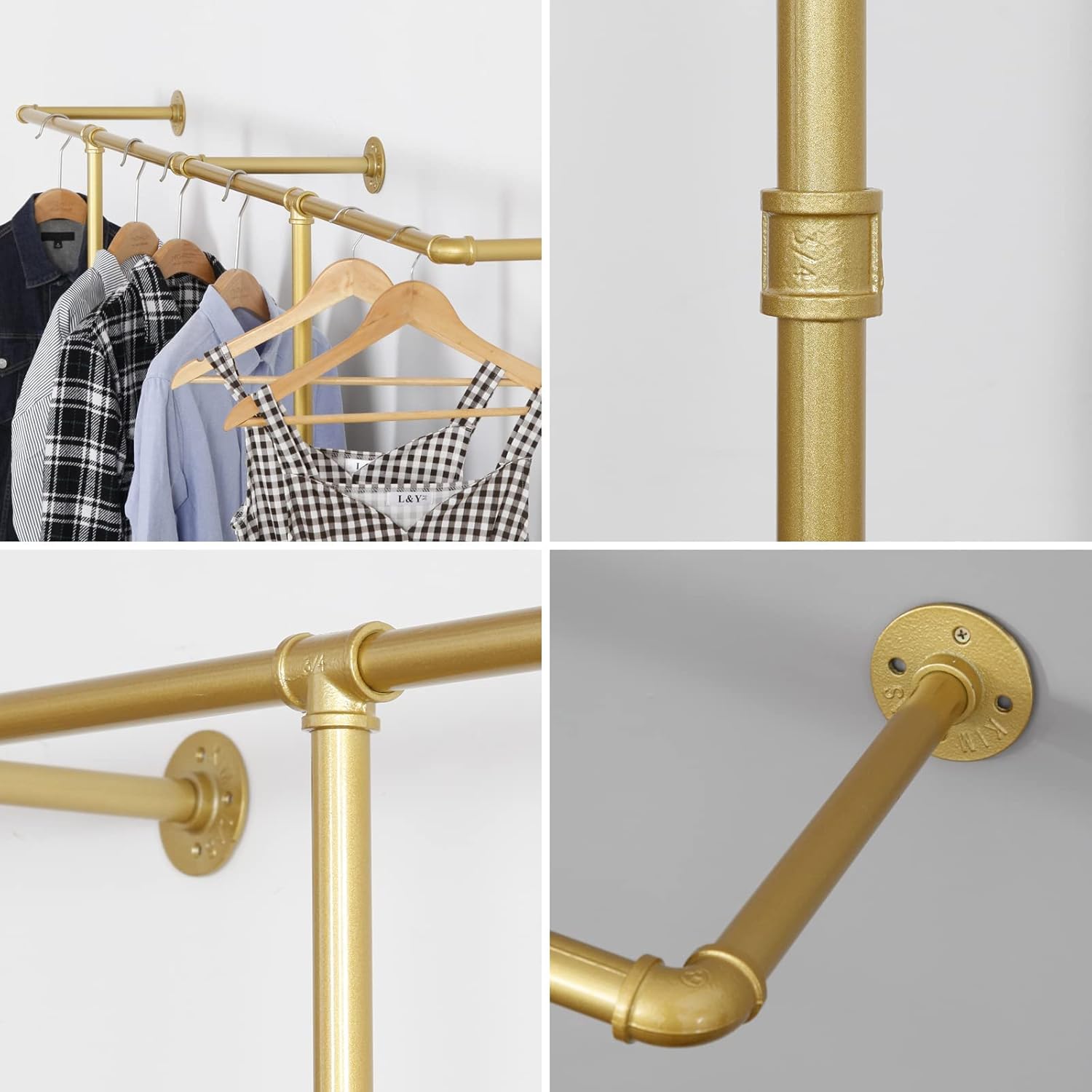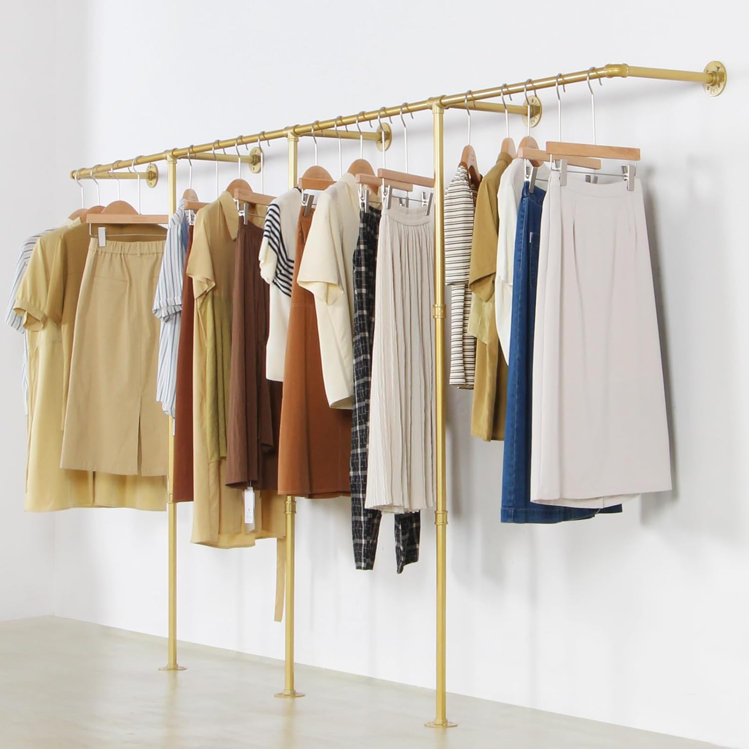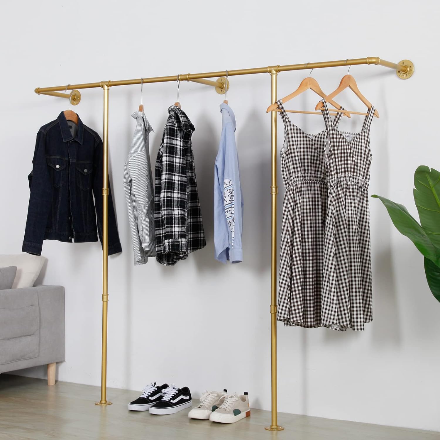 Corner Gold Clothing Racks Freestanding, Gold Metal Coat Racks with Hooks, Heavy Duty Modern Clothes Rack with 3 Tier Storage Shelves for Home,Bedroom,Living Room
