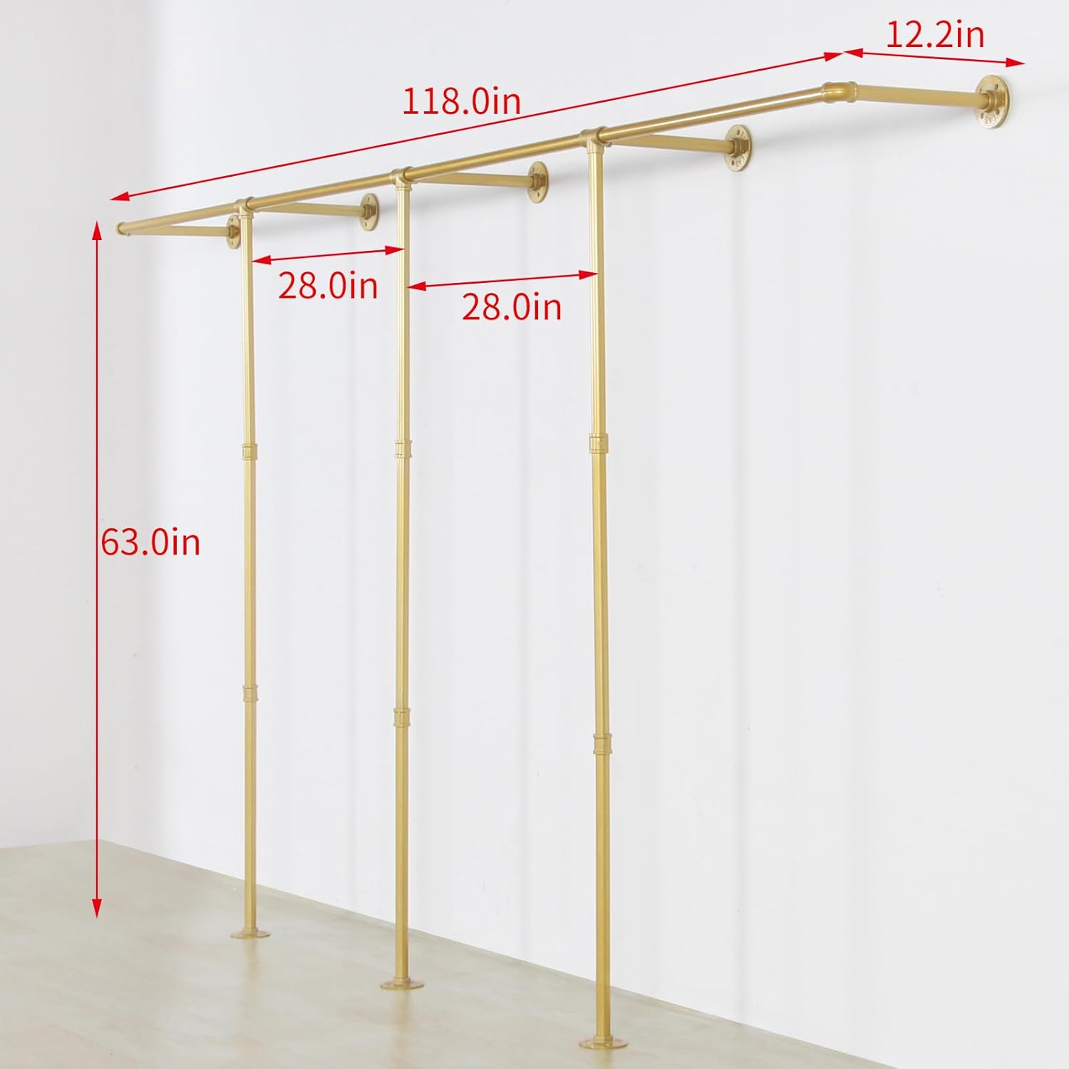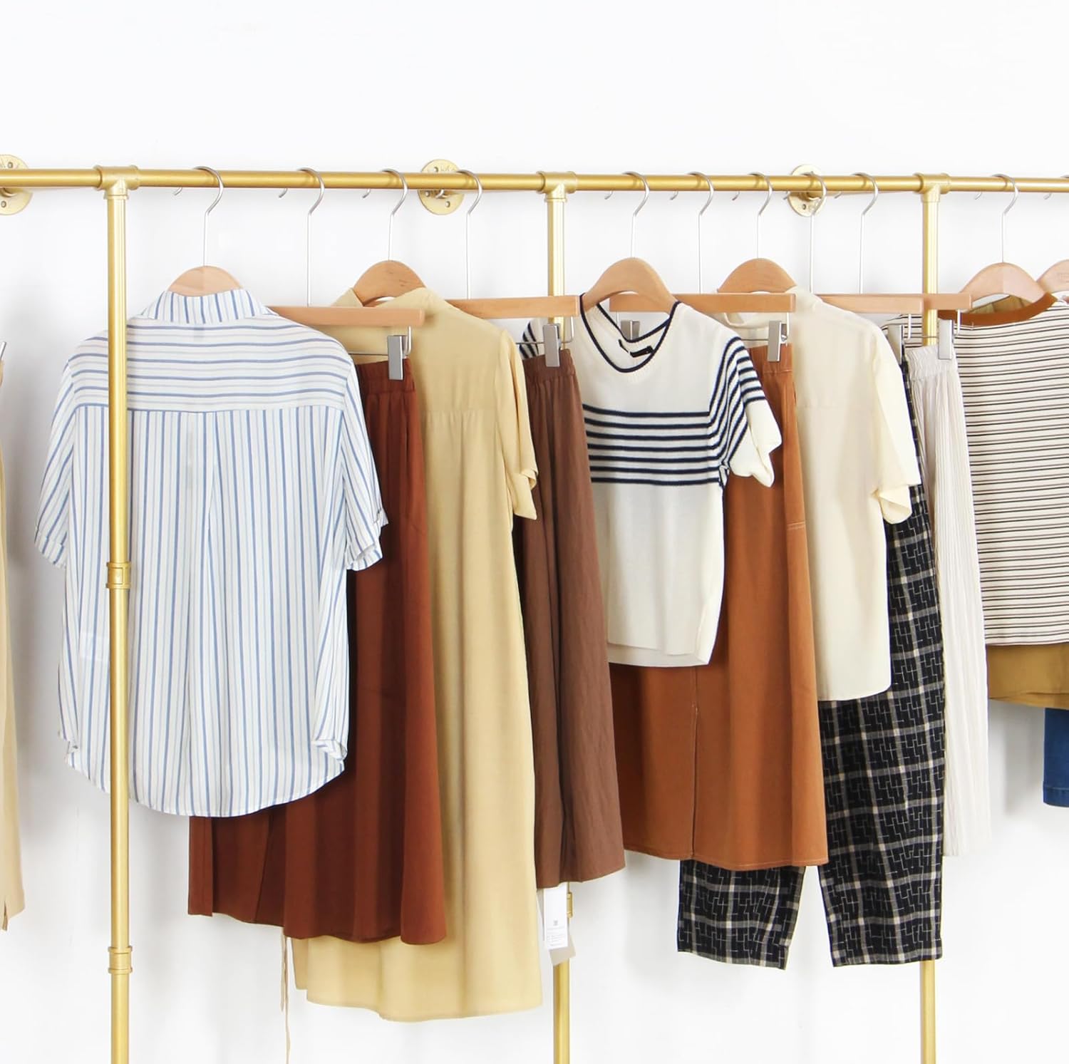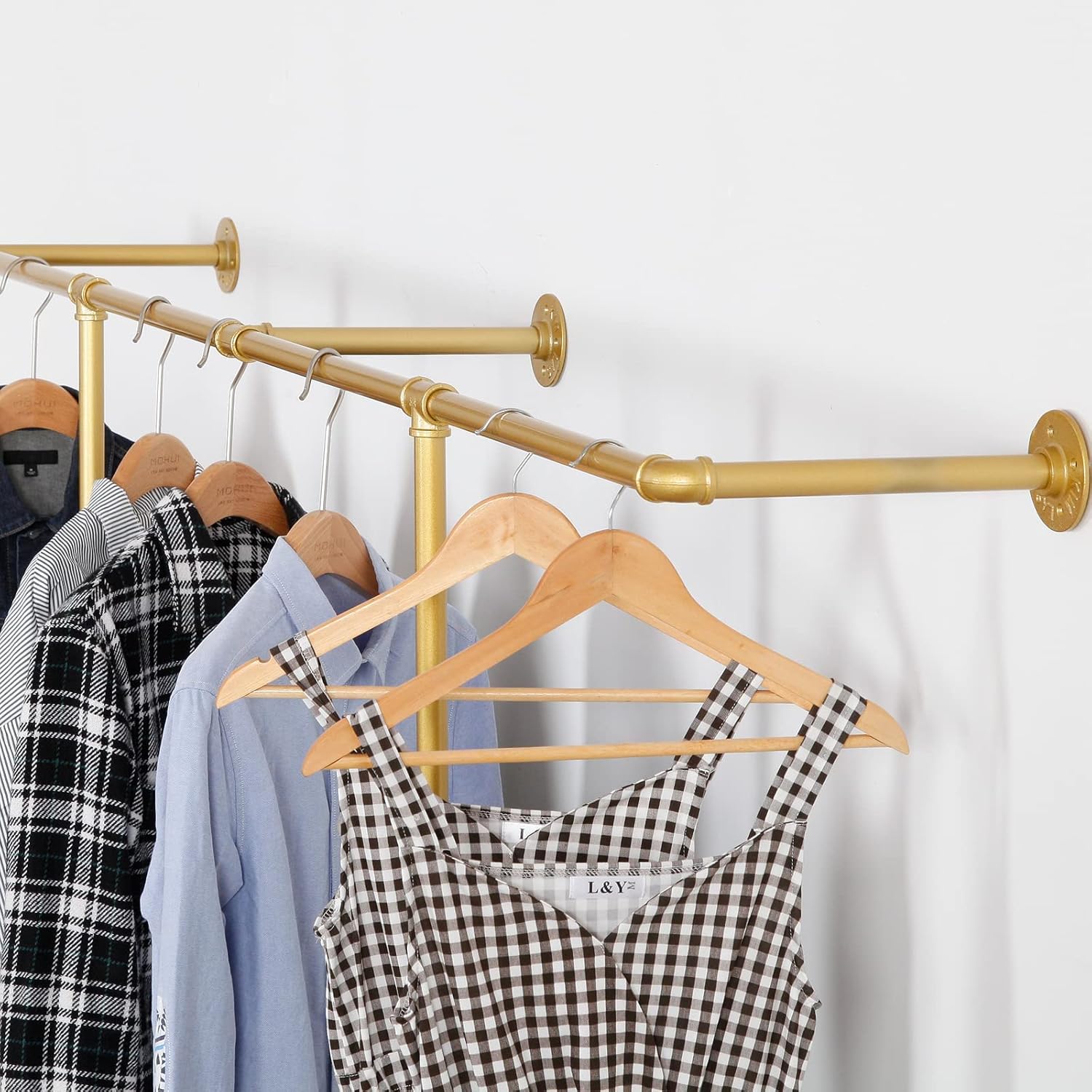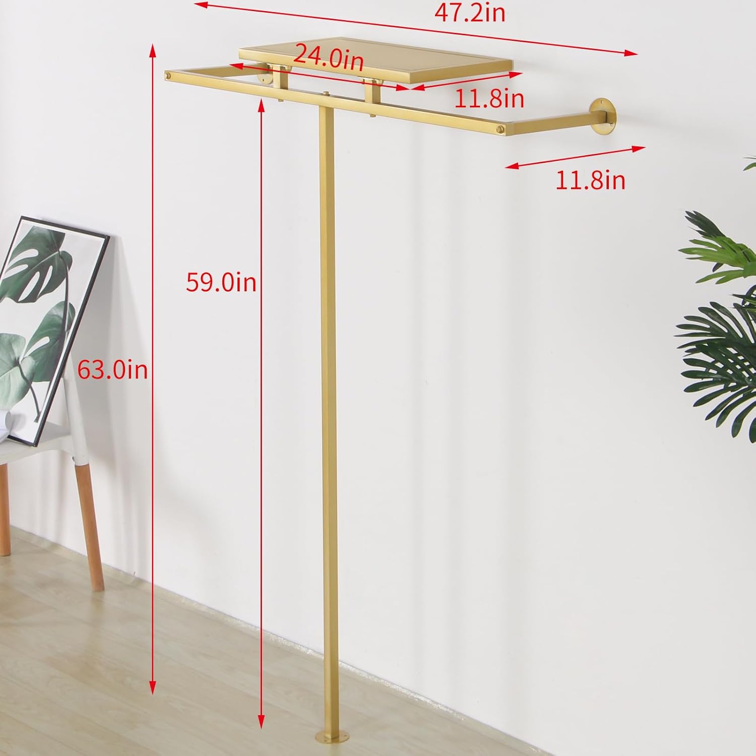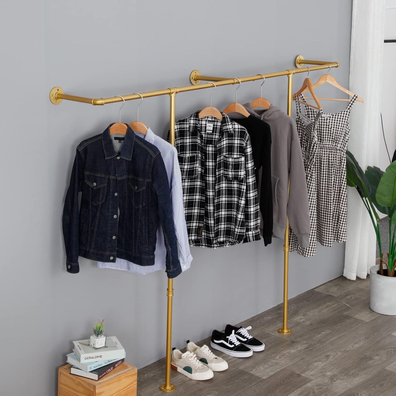 Corner Gold Clothing Racks Freestanding, Gold Metal Coat Racks with Hooks, Heavy Duty Modern Clothes Rack with 3 Tier Storage Shelves for Home,Bedroom,Living Room