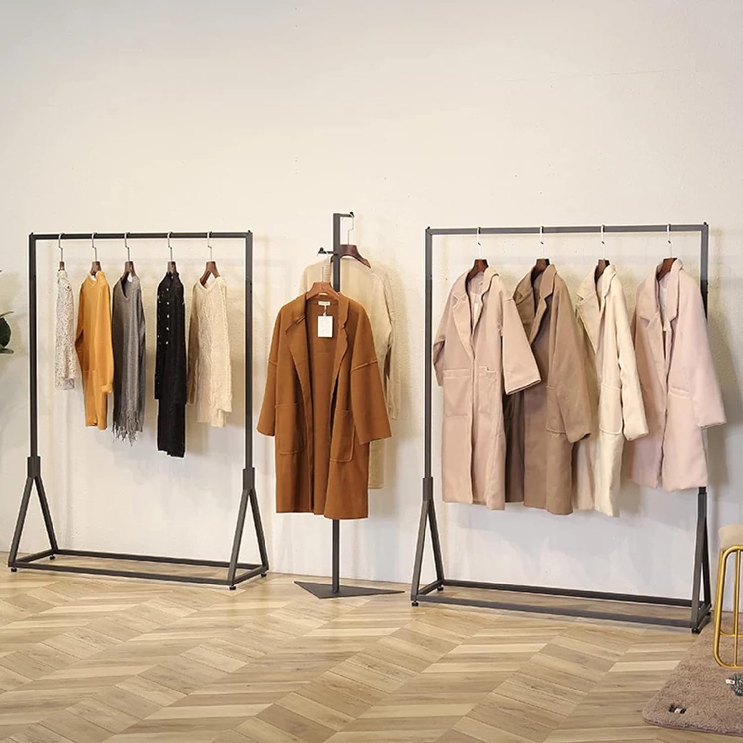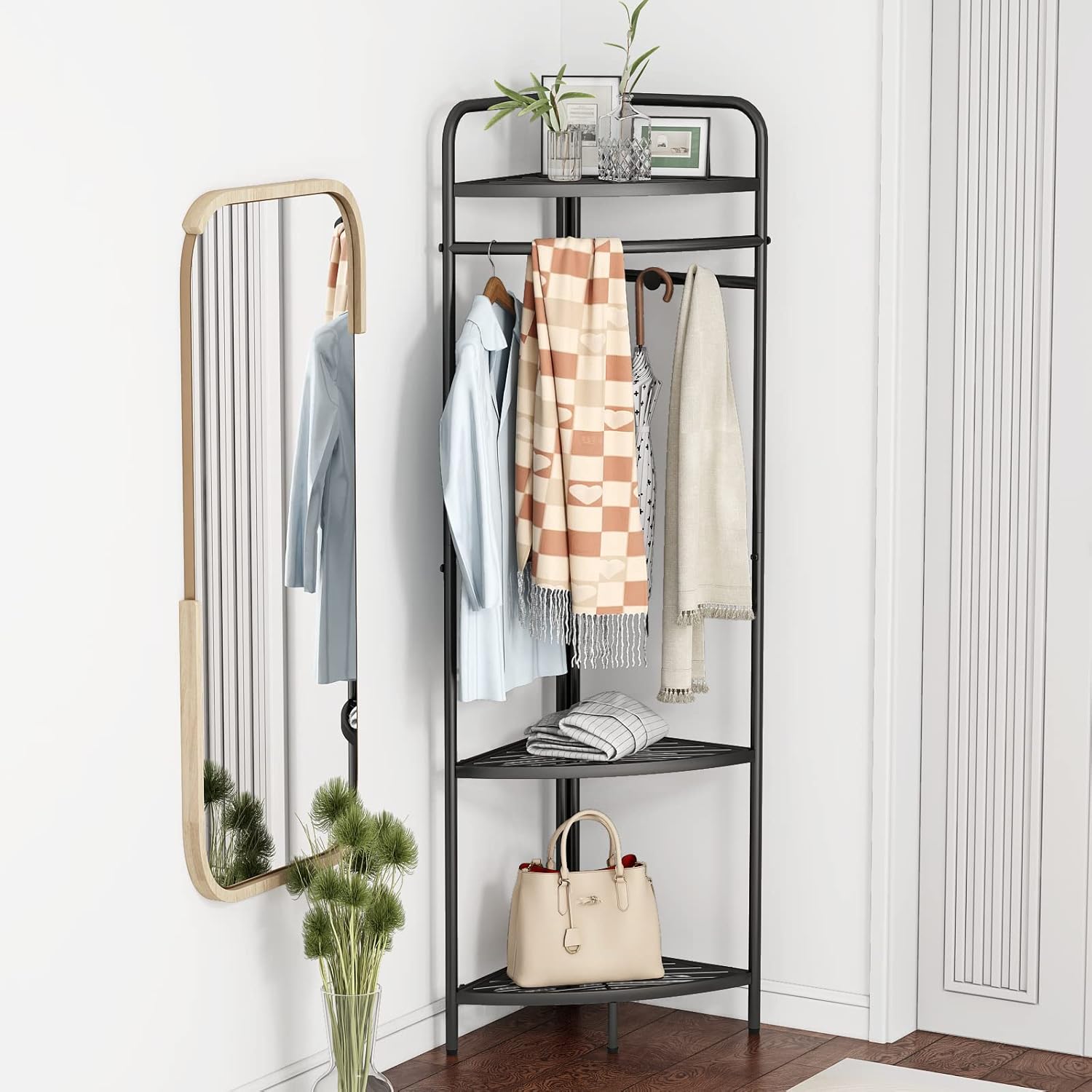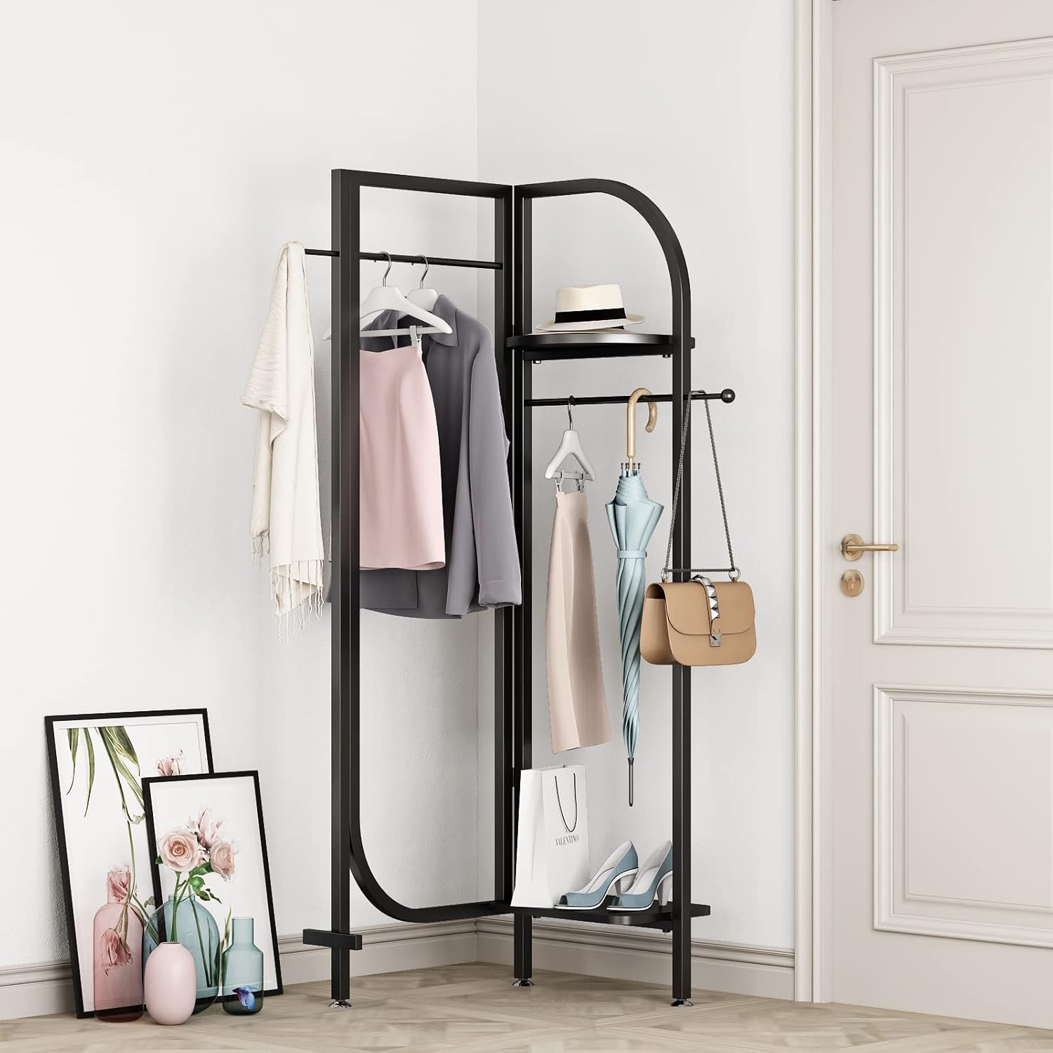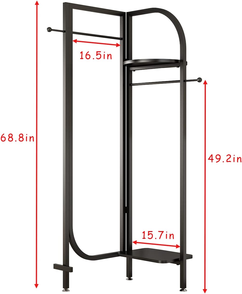 Corner Black Metal Clothing Racks,Heavy Duty Freestanding industrial Clothes Racks Coat Rack for Hallway Entryway,Design Unique Garment racks Display Racks for Hanging Clothes
