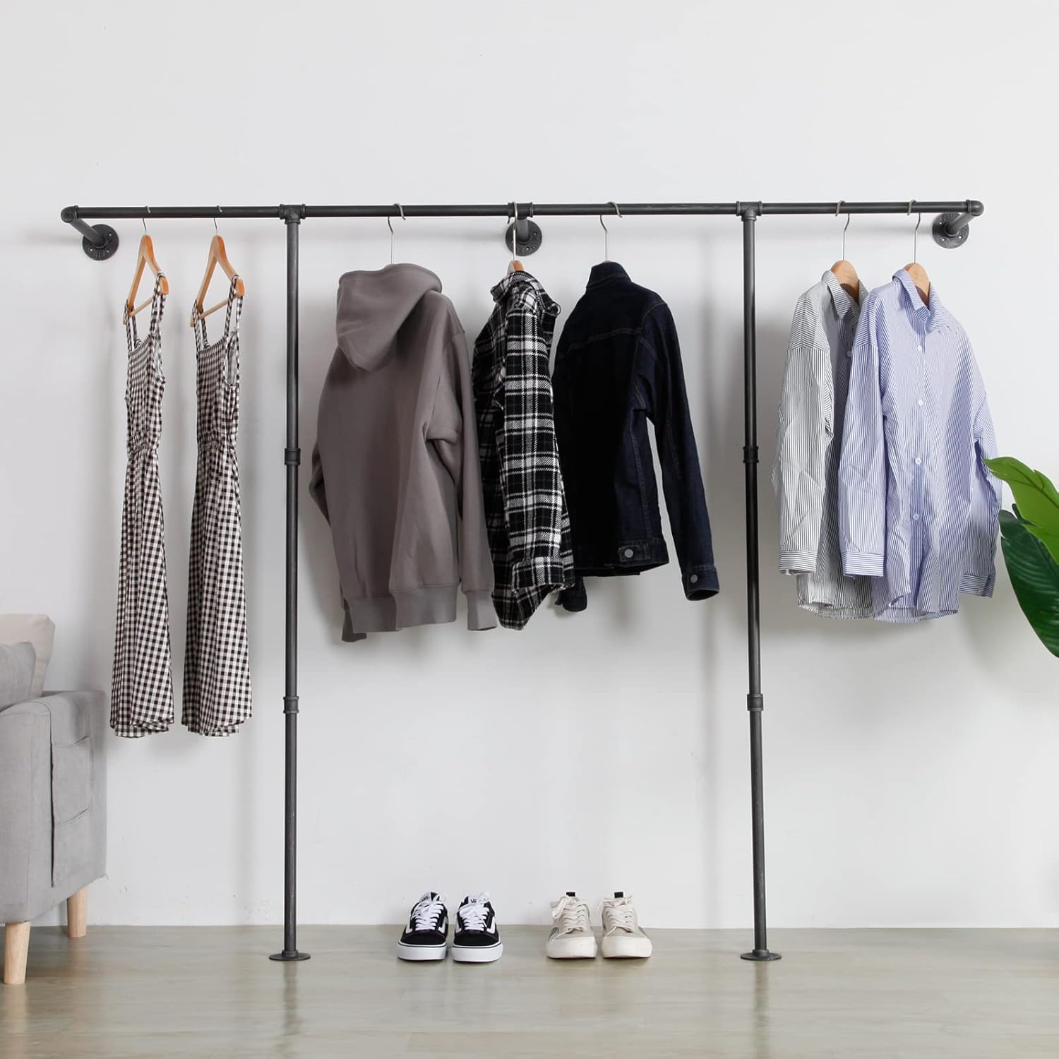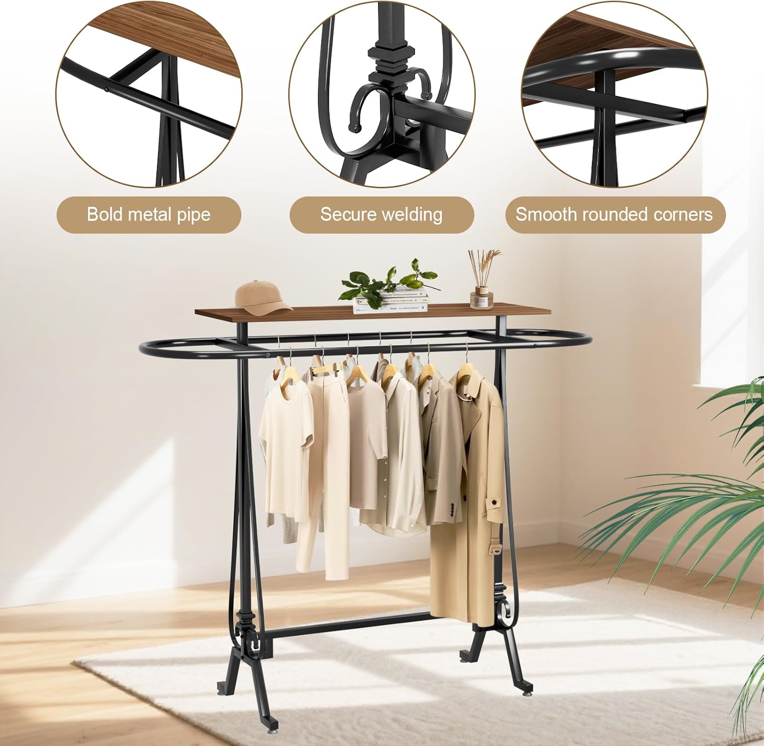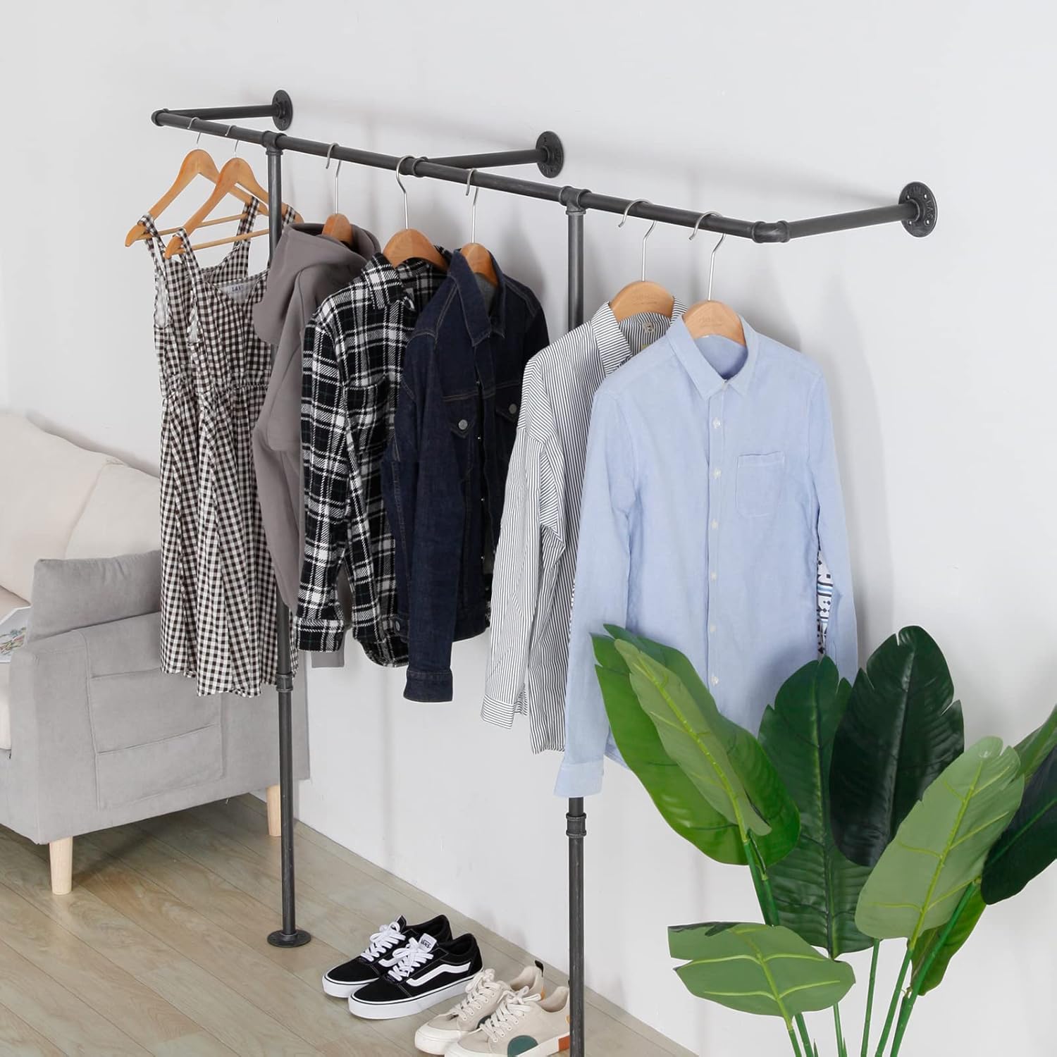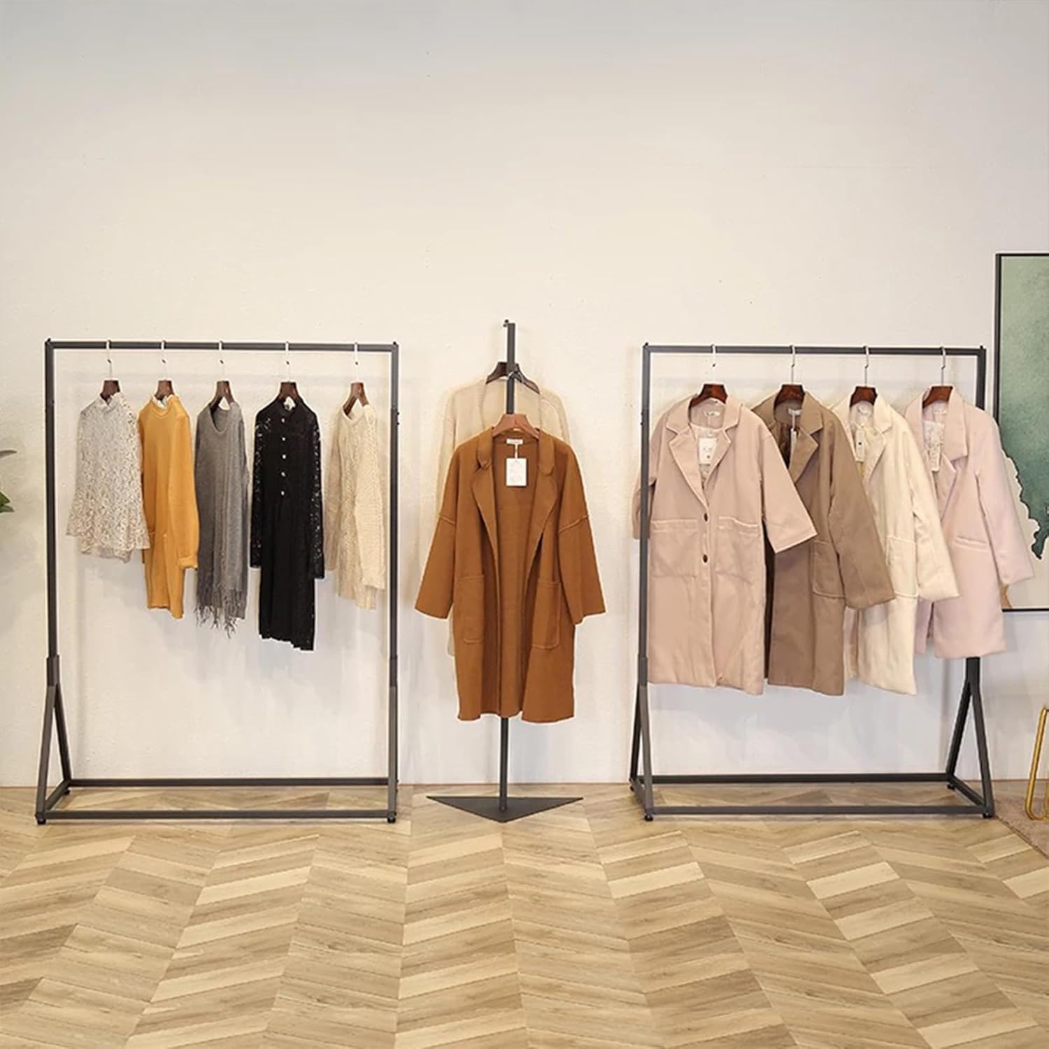 Corner Black Metal Clothing Racks,Heavy Duty Freestanding industrial Clothes Racks Coat Rack for Hallway Entryway,Design Unique Garment racks Display Racks for Hanging Clothes