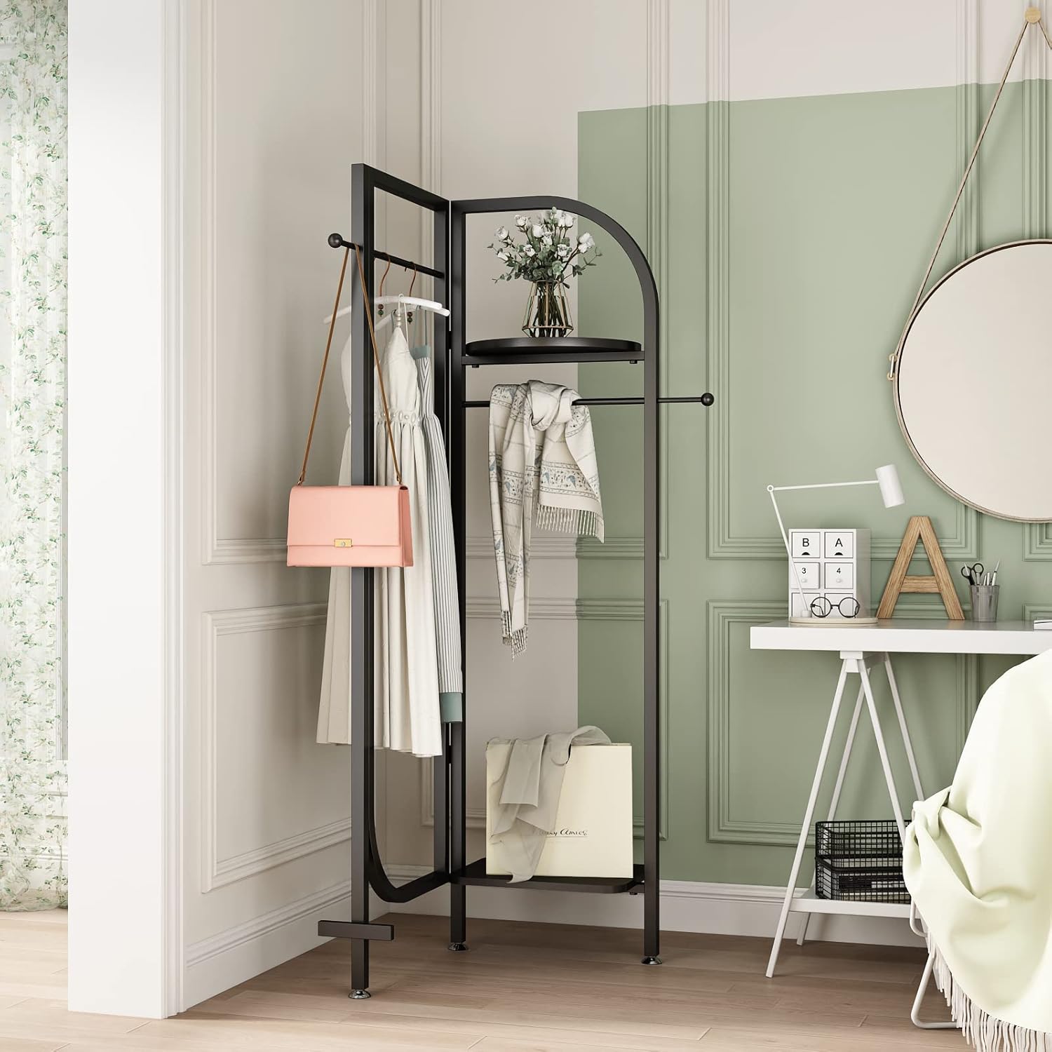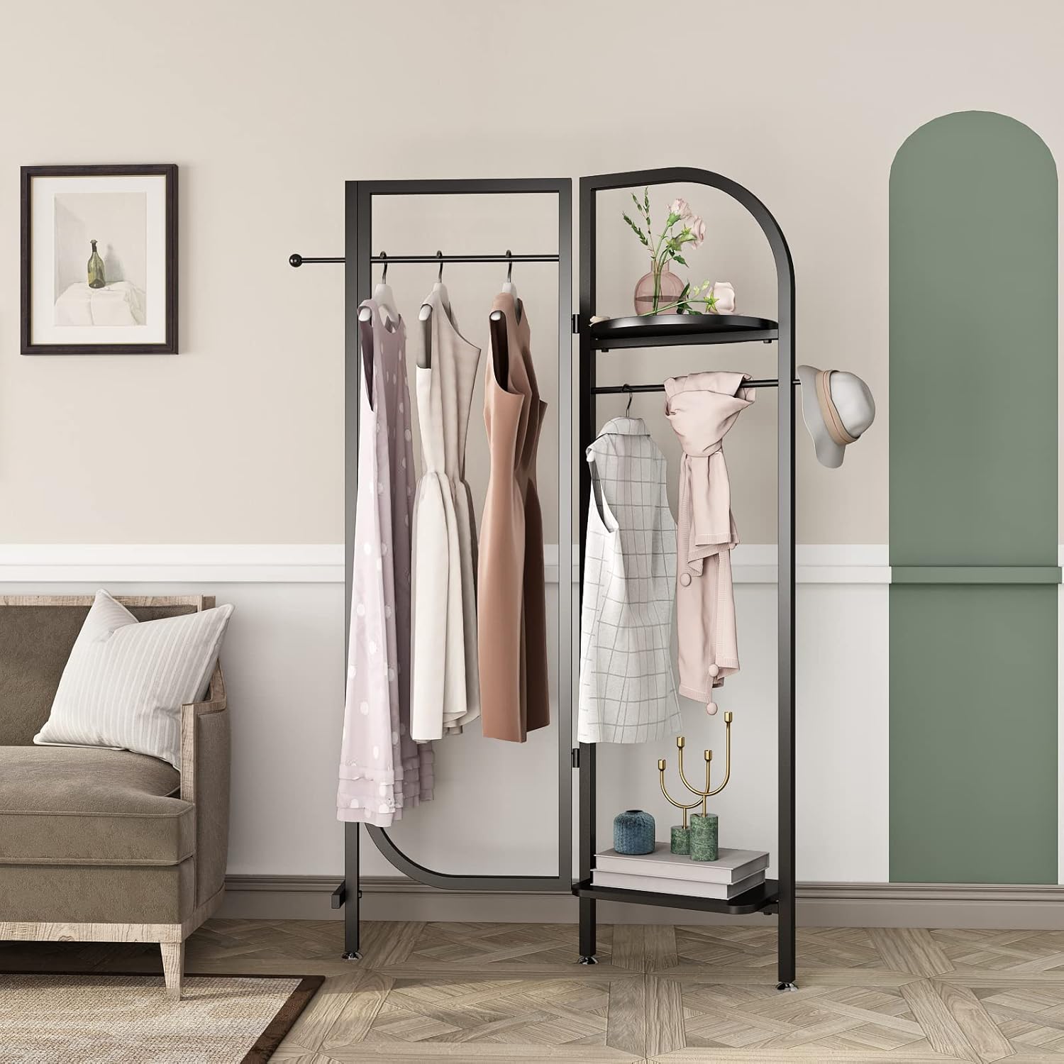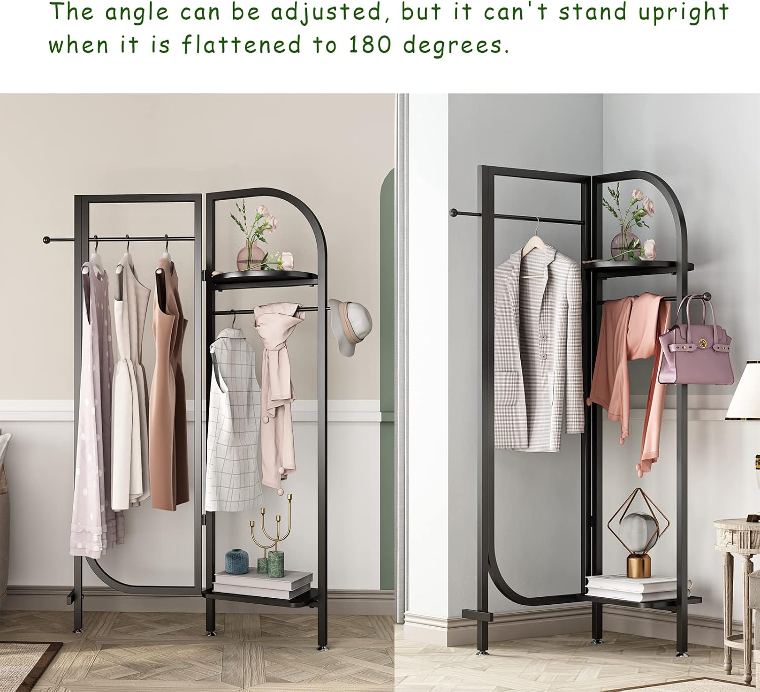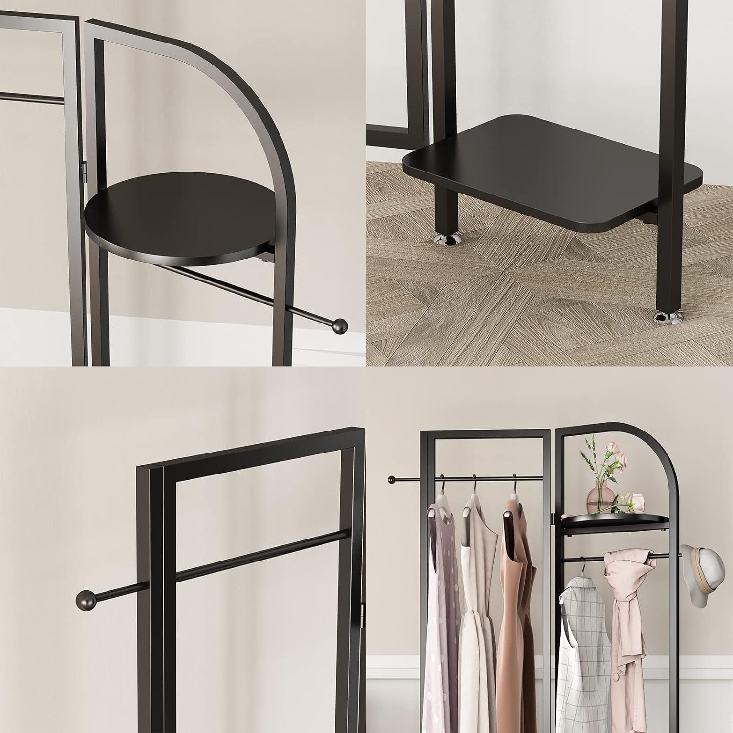 Corner Black Metal Clothing Racks,Heavy Duty Freestanding industrial Clothes Racks Coat Rack for Hallway Entryway,Design Unique Garment racks Display Racks for Hanging Clothes