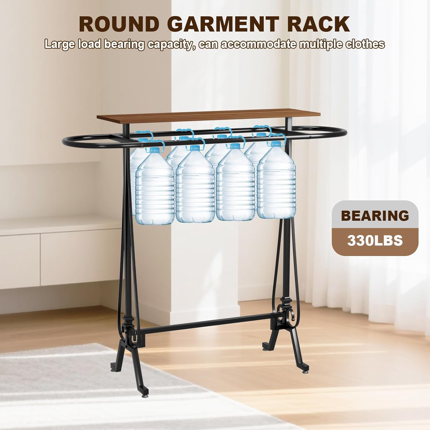 Retail Clothing Rack, Round Garment Rack Display Stand with Topper, Floor Standing Clothes Hanger for Boutique Home Commercial (Black)