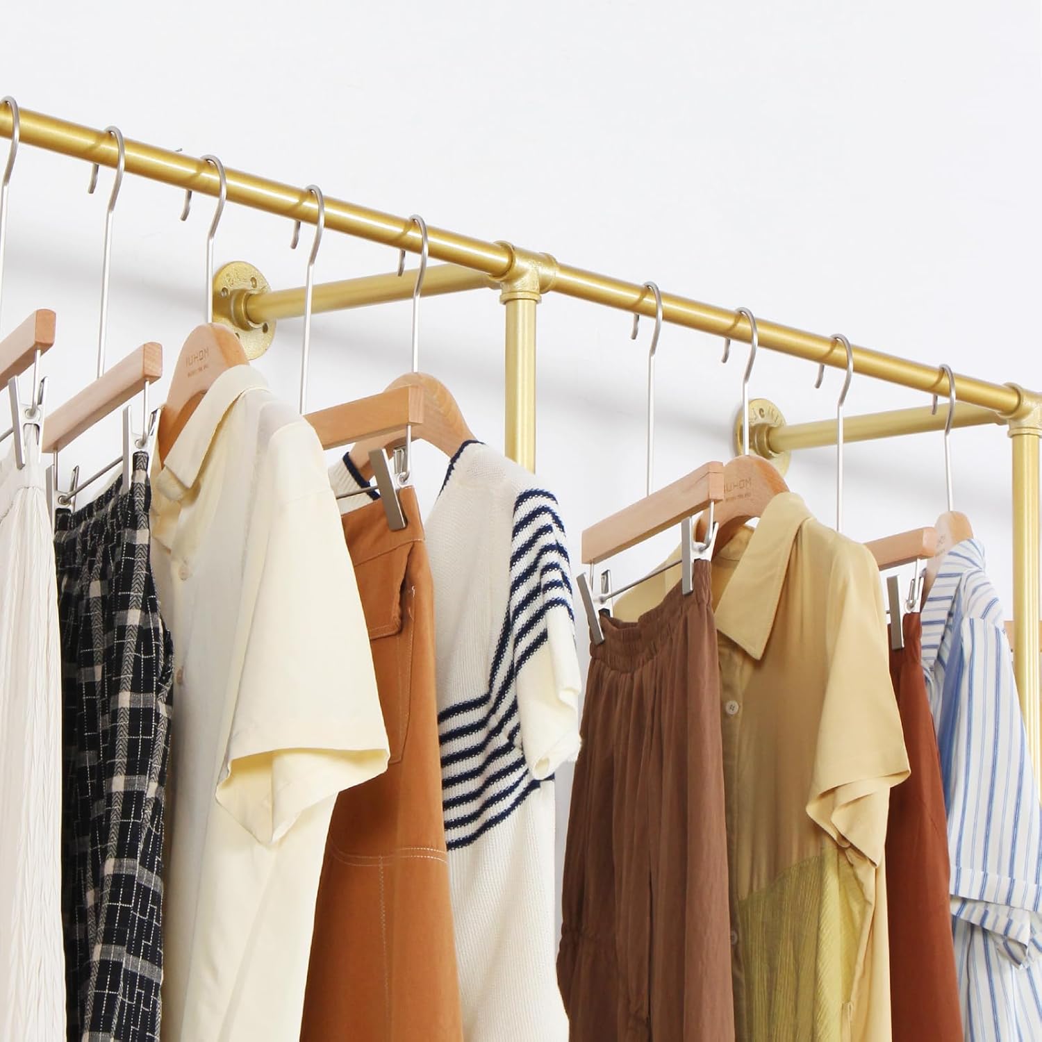 LITTLE TREE Freestanding Closet Organizer, Heavy Duty Clothes Rack for Hanging Clothes, Open Wardrobe Closet Garment Rack for Bedroom
