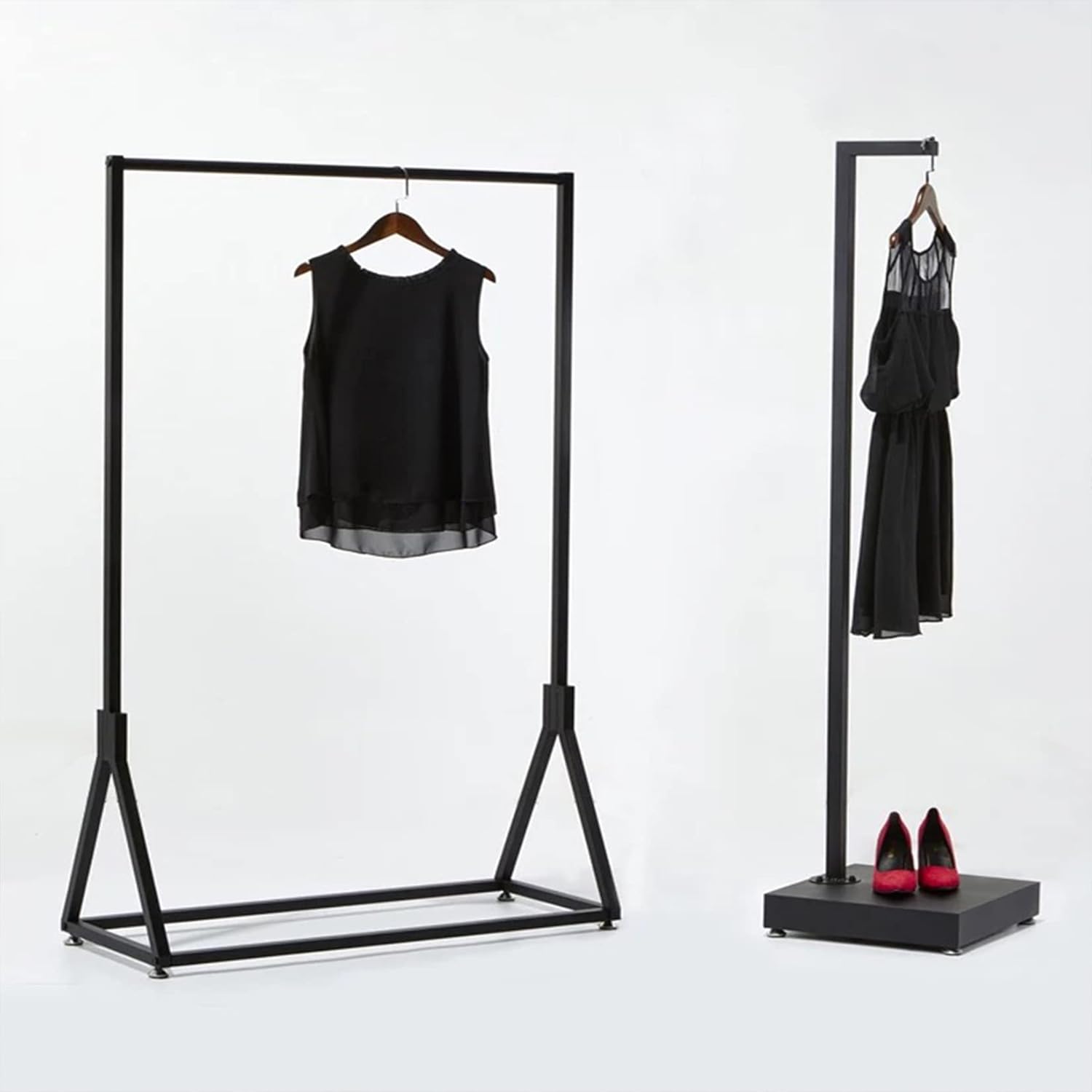 Modern Simple Heavy Duty Metal Rolling Garment Rack with Wheels,Retail Display Clothing Rack, Single Rod Floor-Standing Hangers Clothes Shelves (Black Square Tube A, 47.2 L)