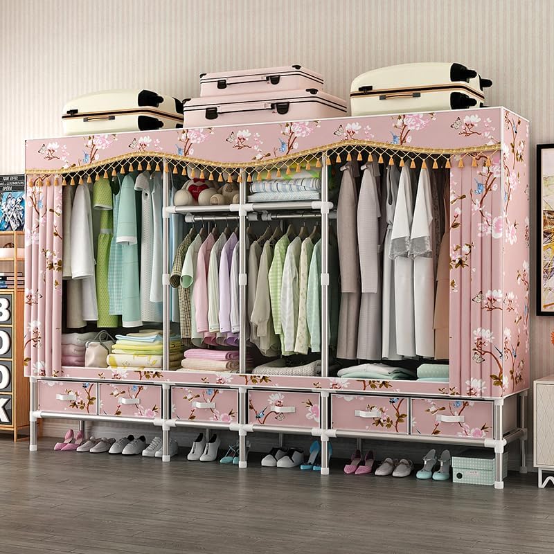 Heavy Duty Portable Wardrobe Closet with Drawers Steel Frame 25MM Steel Pipes Portable Clothes Storage Organizer Multi-Tier Shelves Dustproof Fabric Cover Hanging Rack Storage Organizer (7.88ft, Blue)