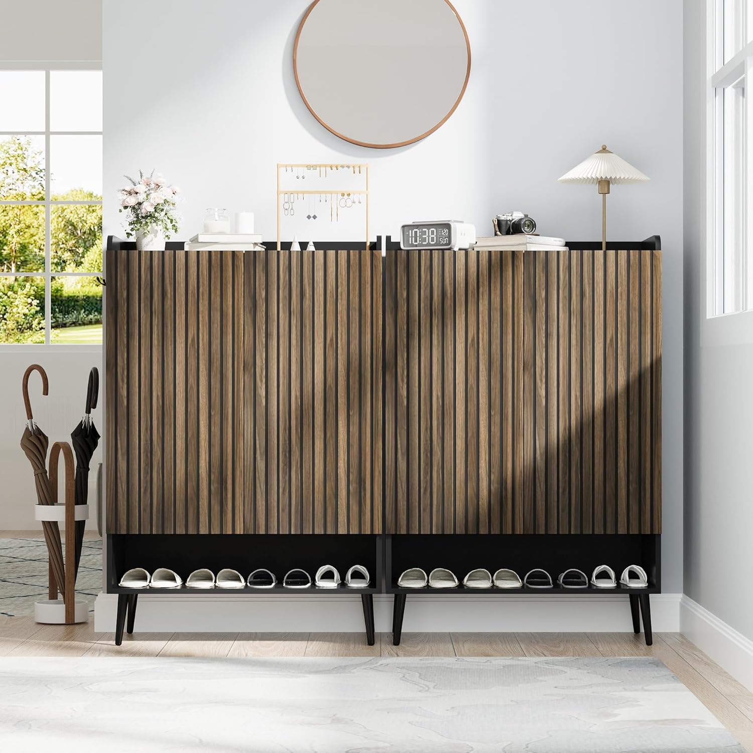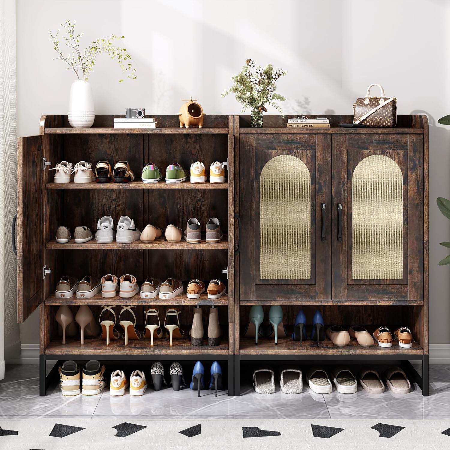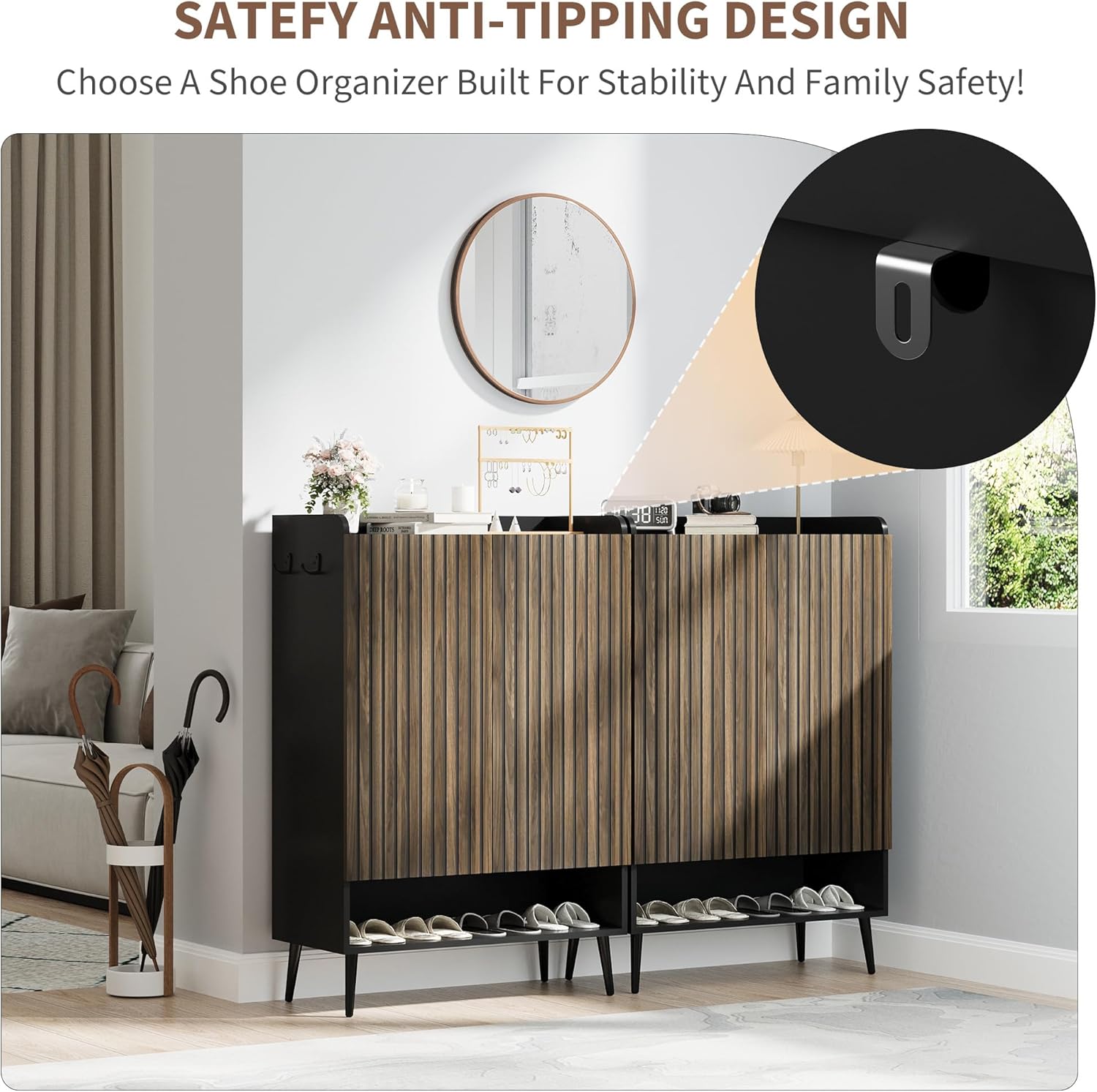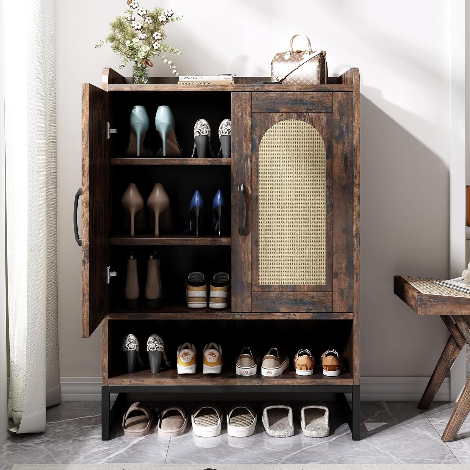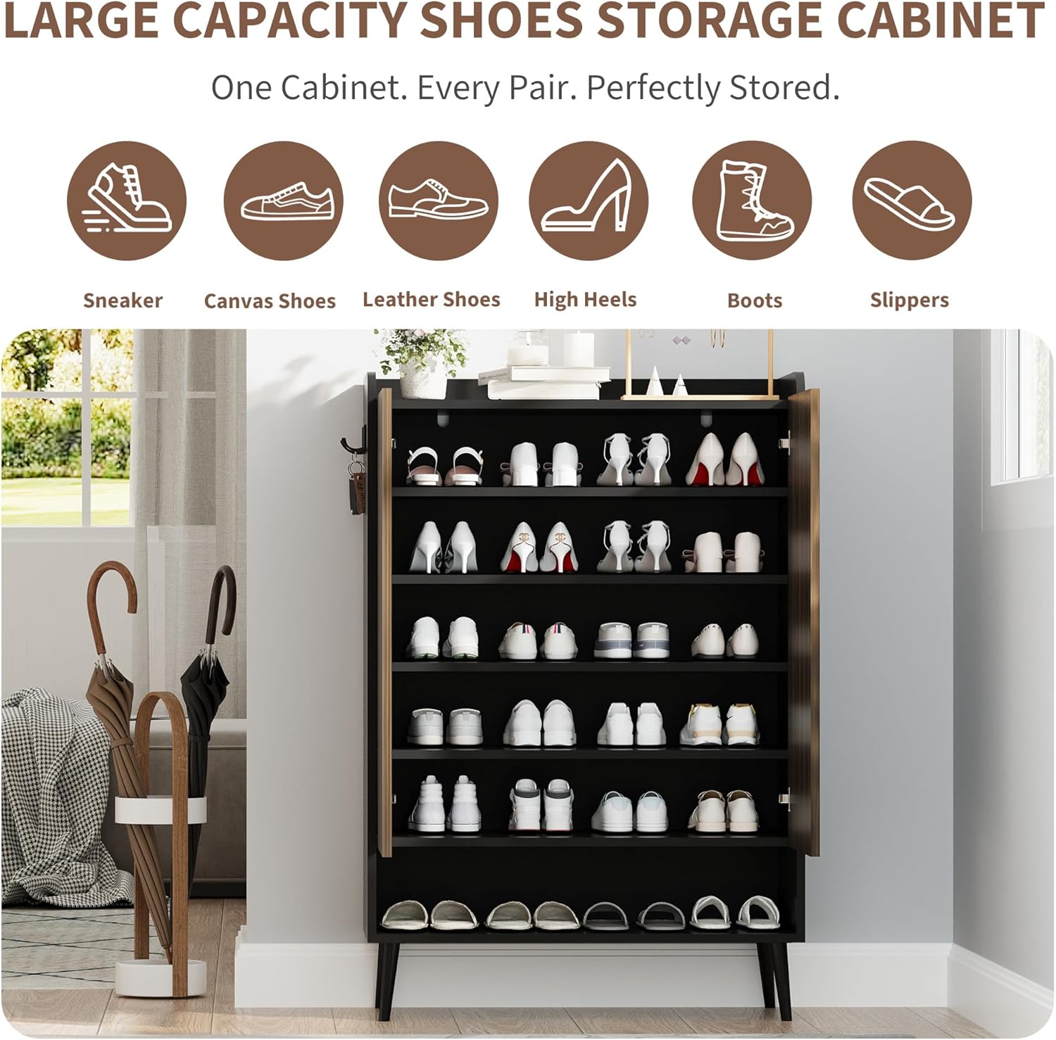 GarveeHome Shoe Cabinet, Large Shoe Cabinet with 2 Doors, Adjustable Shelves, Shoe Organizer with Doors for Hallway, Entryway, Living Room, Black+Nut-Brown