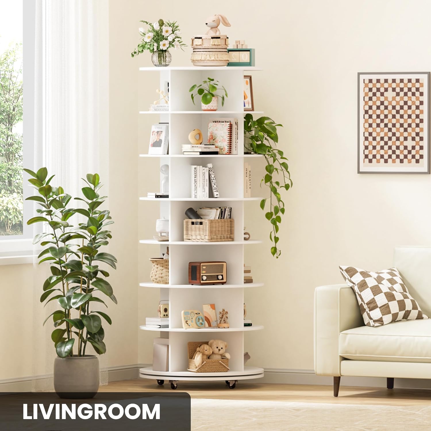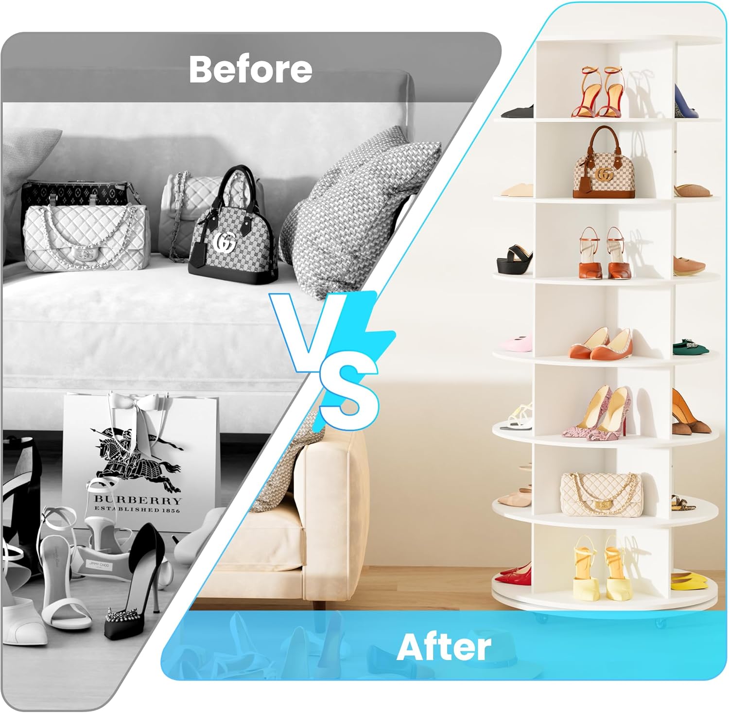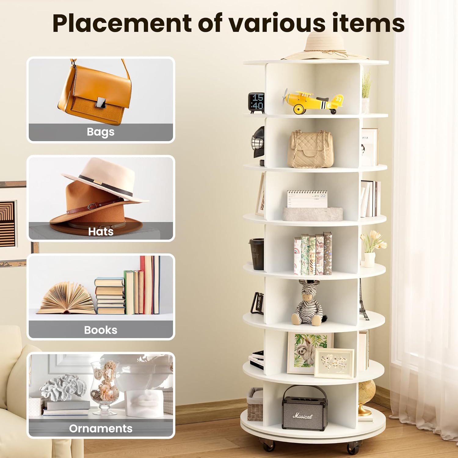 7-Tier Rotating Shoe Rack Tower 360 with Wheels, 66.9in Spinning Shoe Tower, Revolving Shoe Rack, Shoe Carousel Closet Organizer, Free Standing Shoe Rack for Entryway Living Room Hallway White