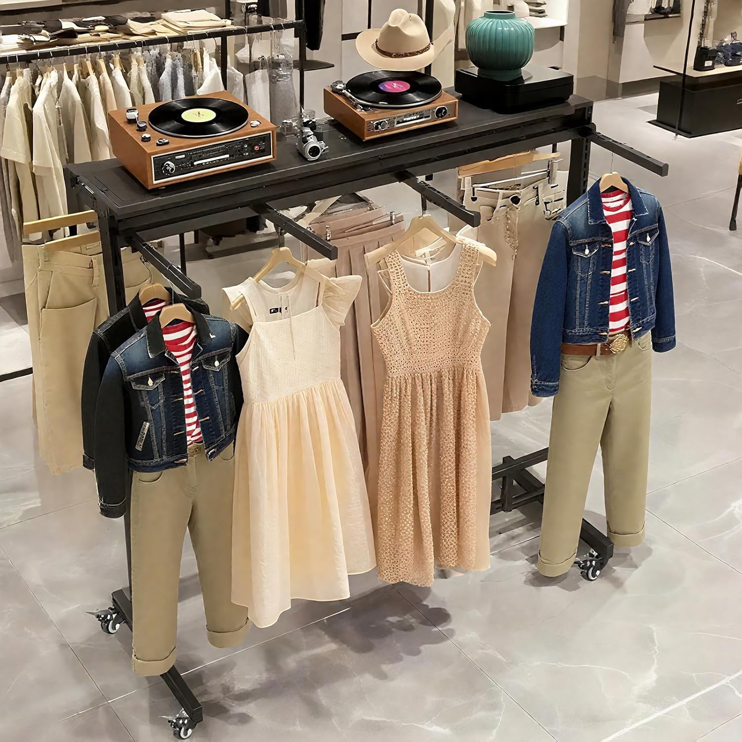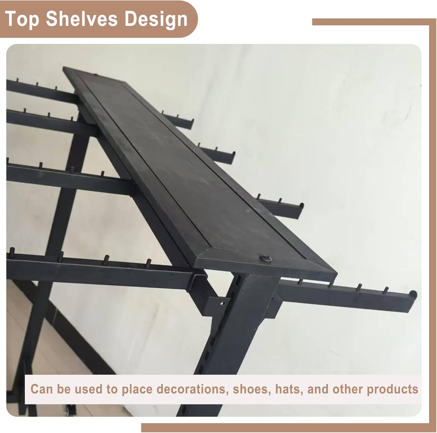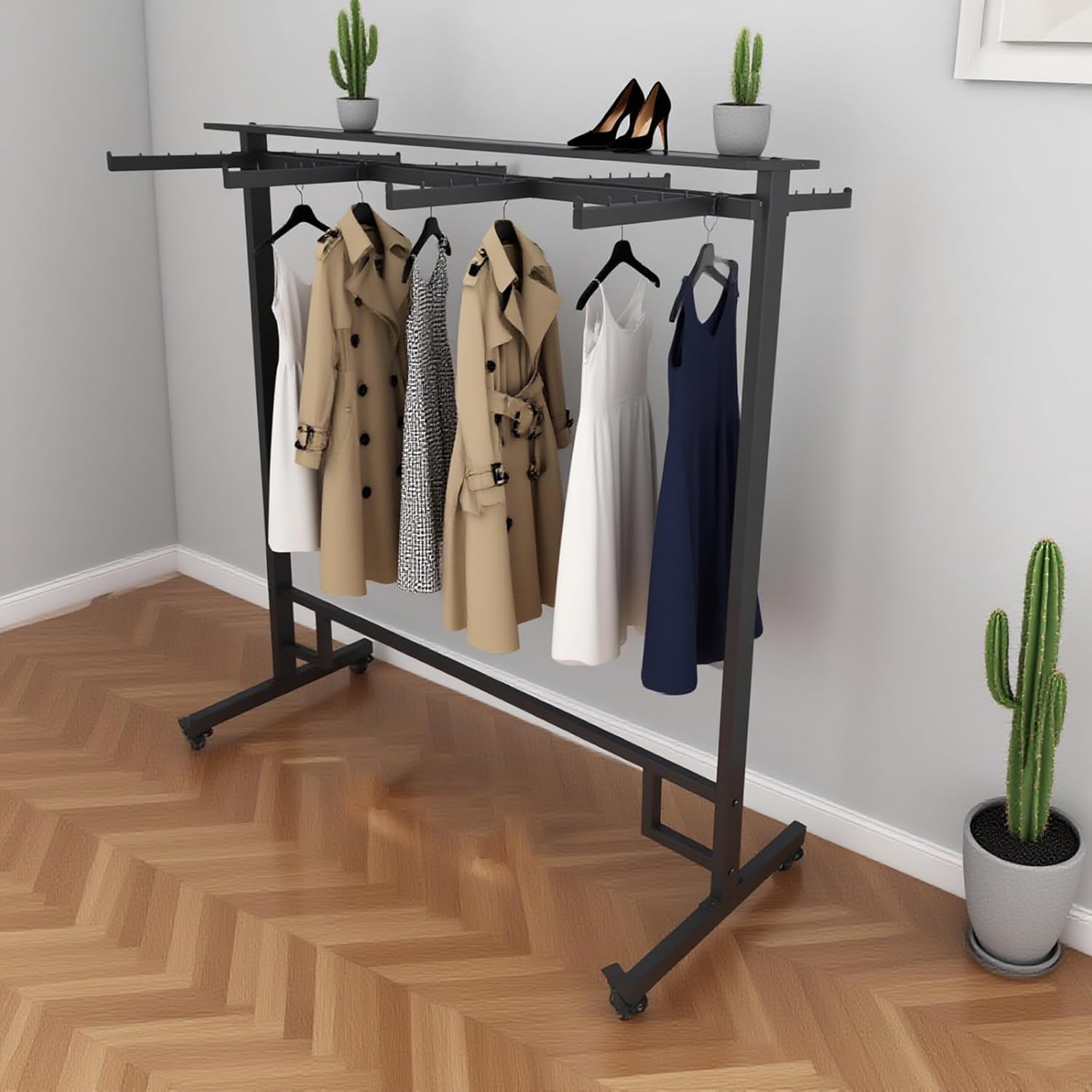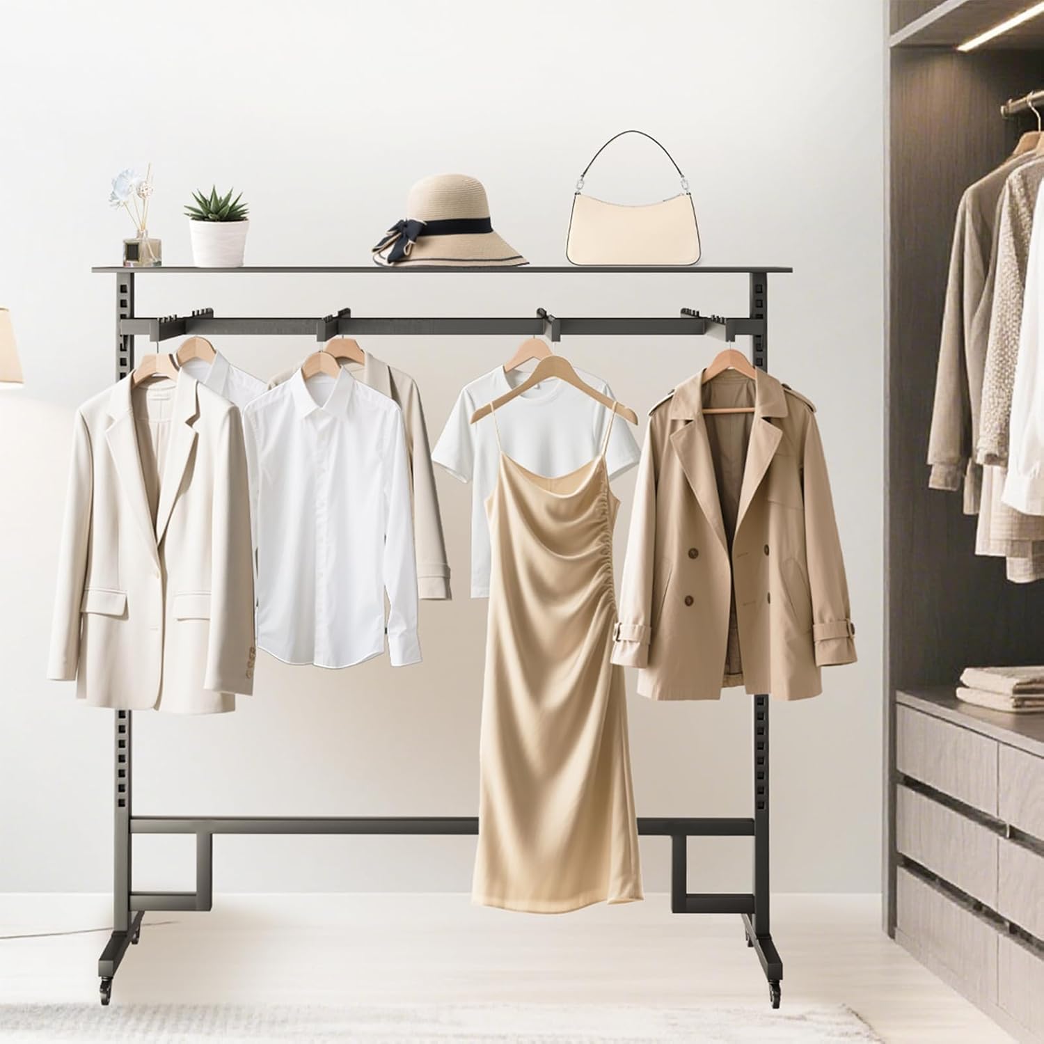 Retail Clothing Rack with Adjustable 8 Arms, Portable Boutique Display Stand on Wheels and Shelf, Floor Standing Metal Garment Rack for Hanging Shirts, Black