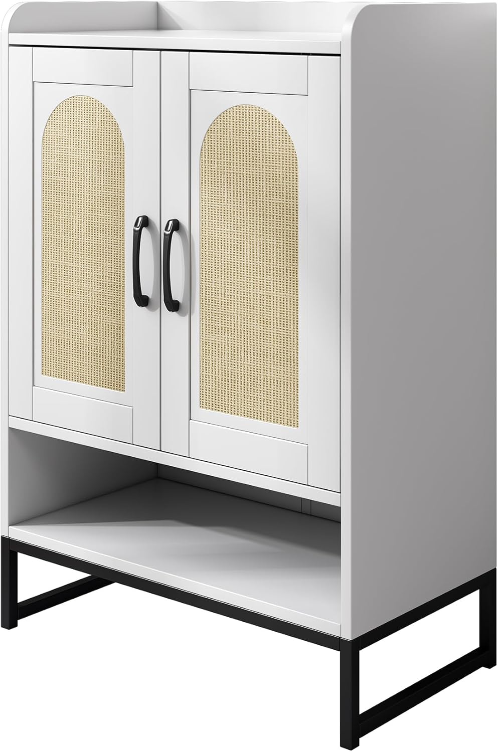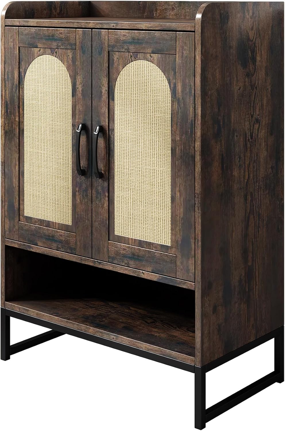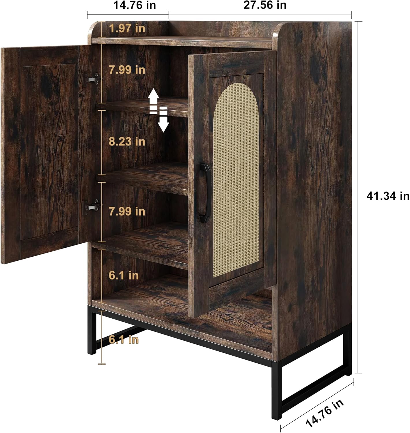 Shoe Cabinet Storage for Entryway, Wooden Shoe Cabinet with 2 Rattan Doors and Adjustable Shelves, Tall Shoe Rack Cabinet for Hallway, Living Room, Modern (White)