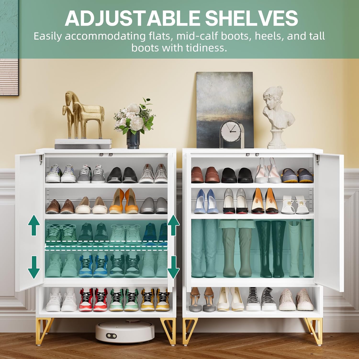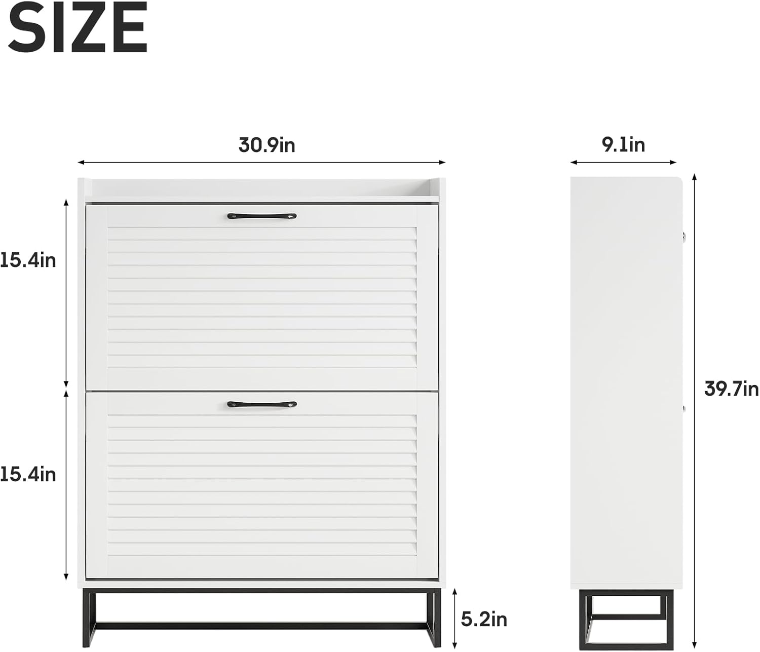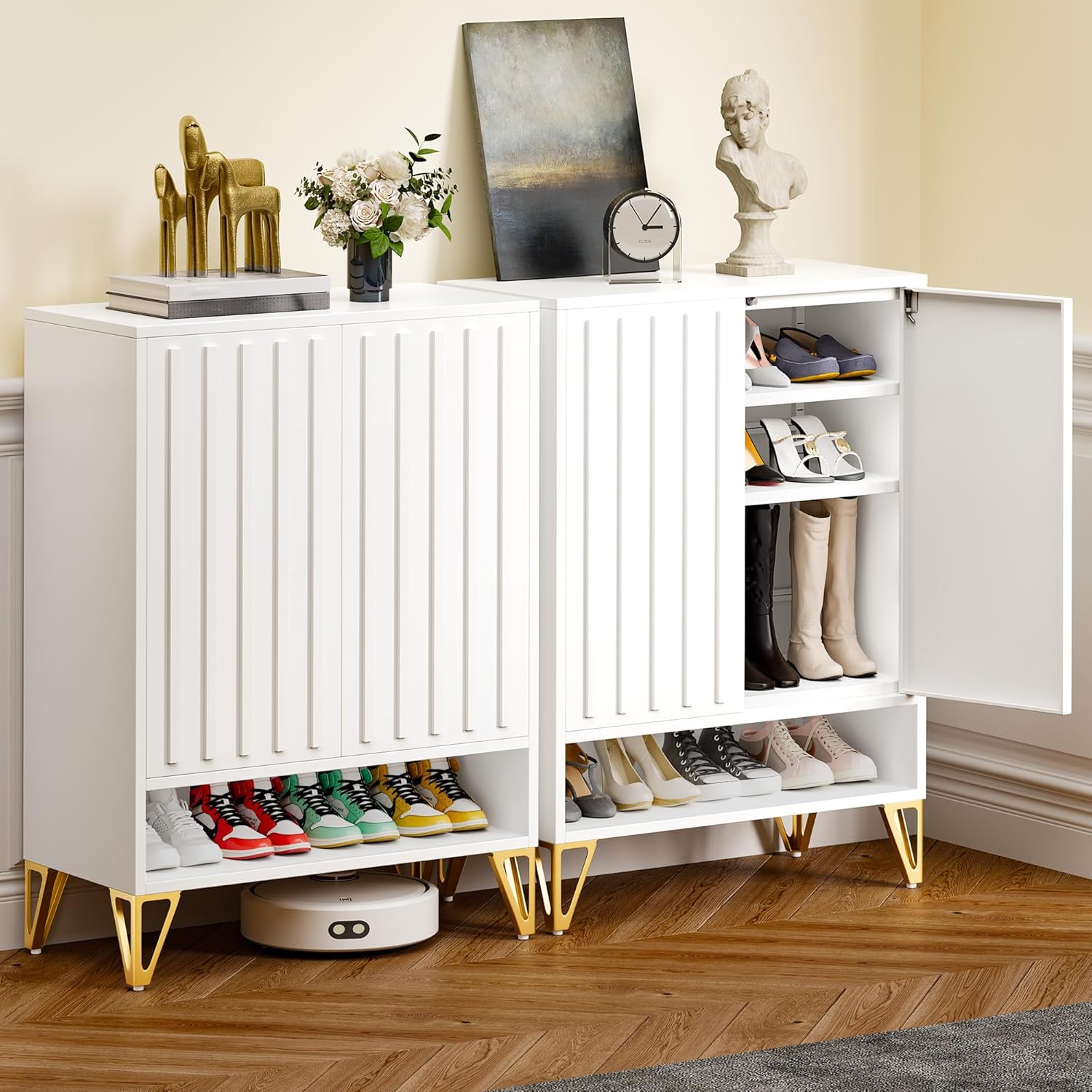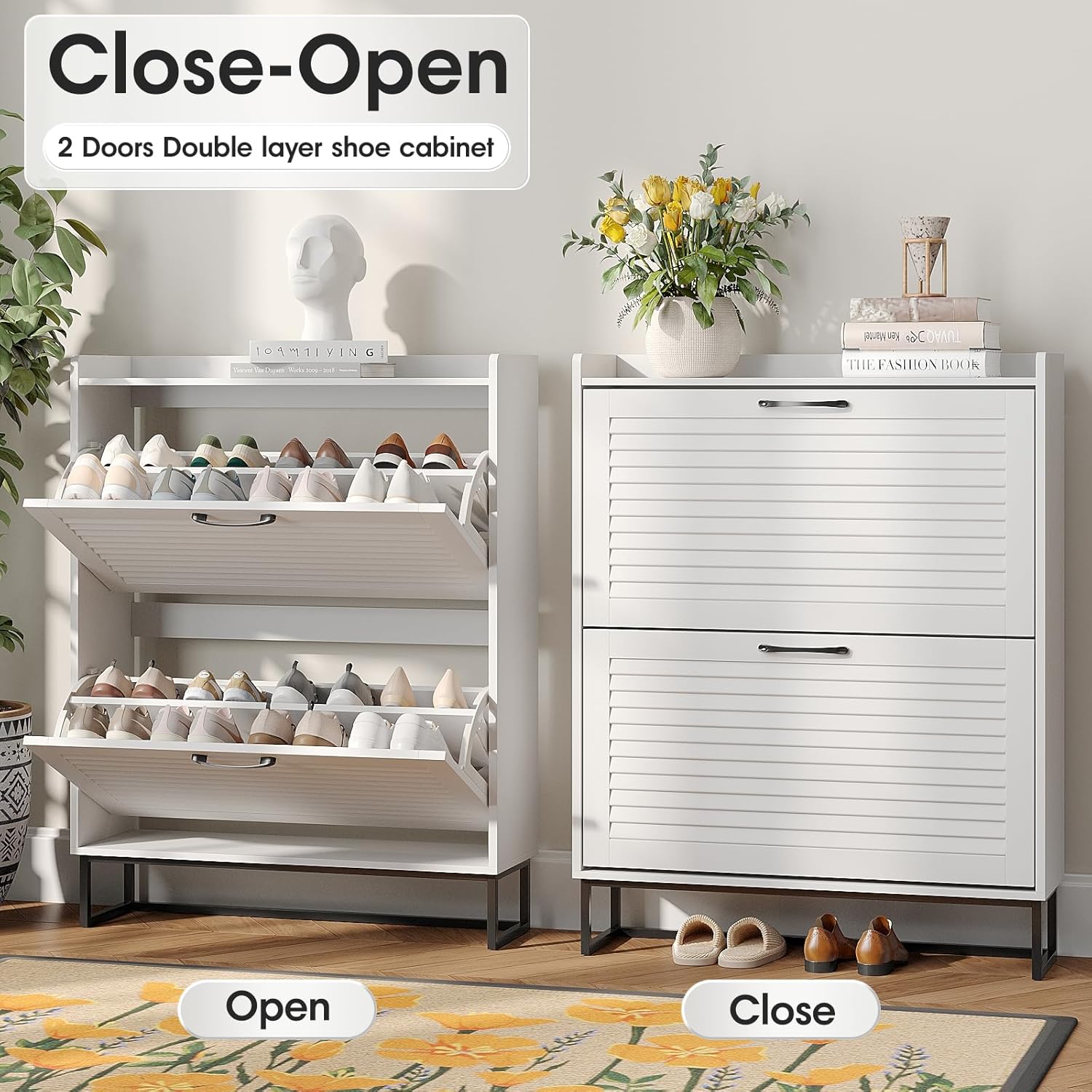 Maupvit Shoe Storage Cabinet with 2 Flip Louvered Doors, Freestanding Organizer with Metal Legs, Shoe Cabinet for Entryway, Narrow Shoe Rack Cabinet, White