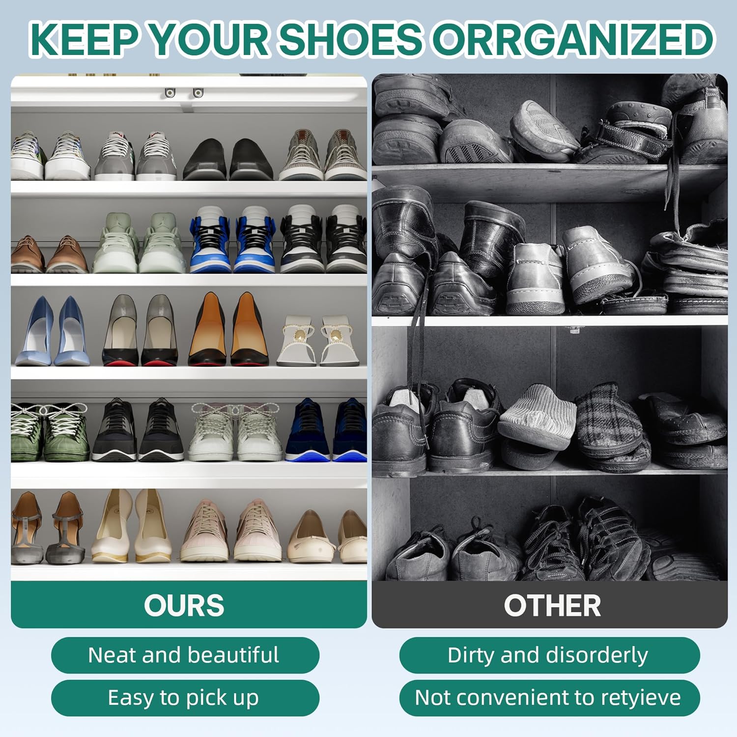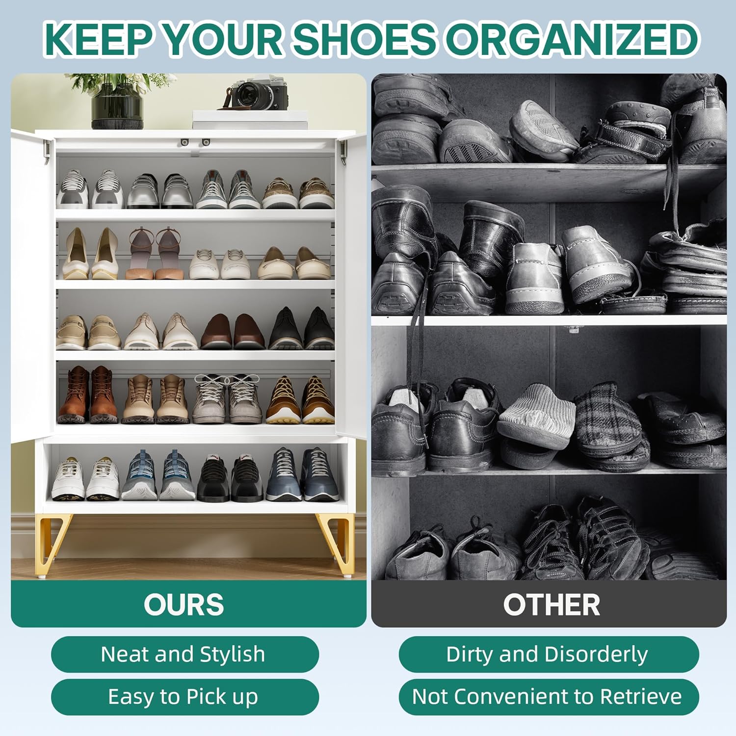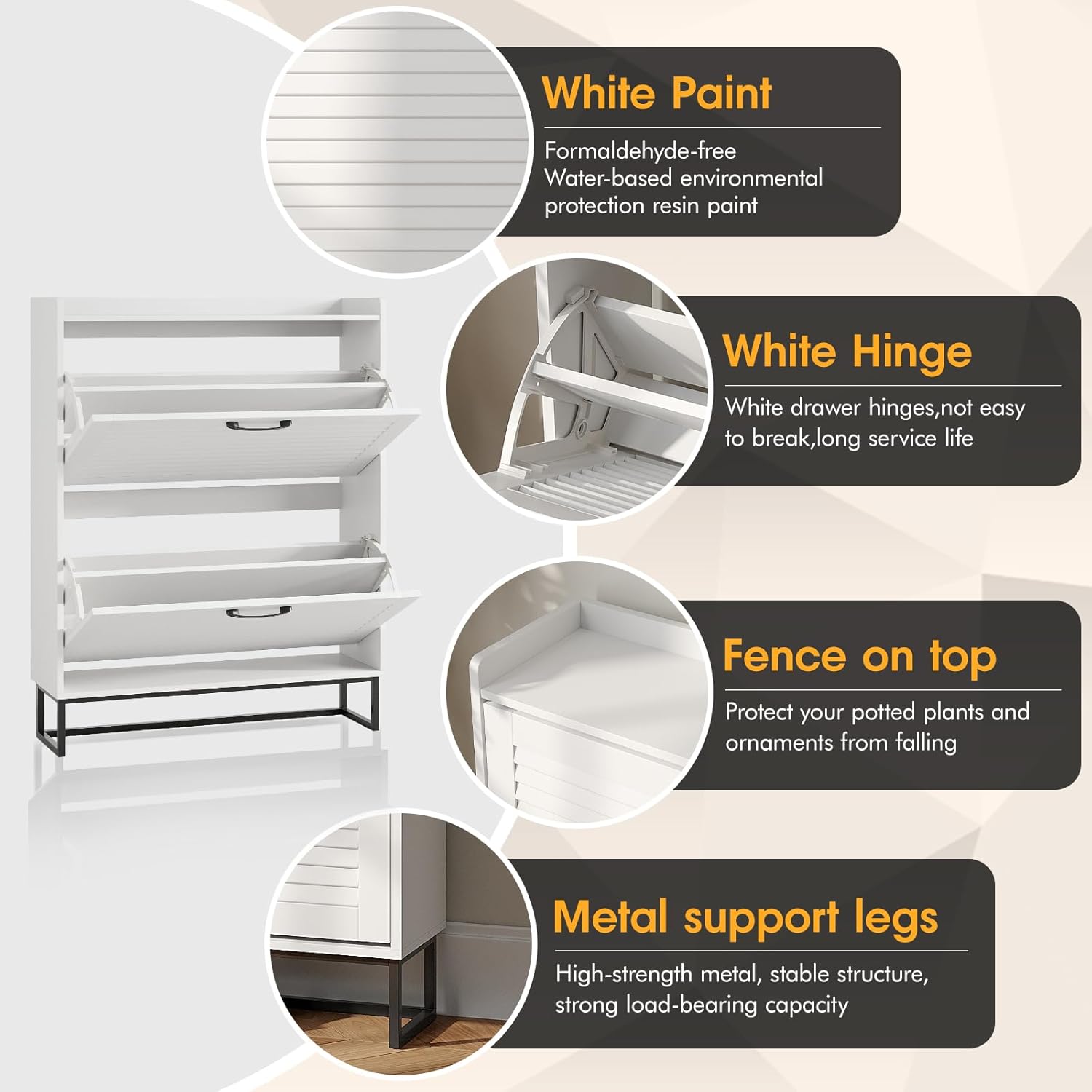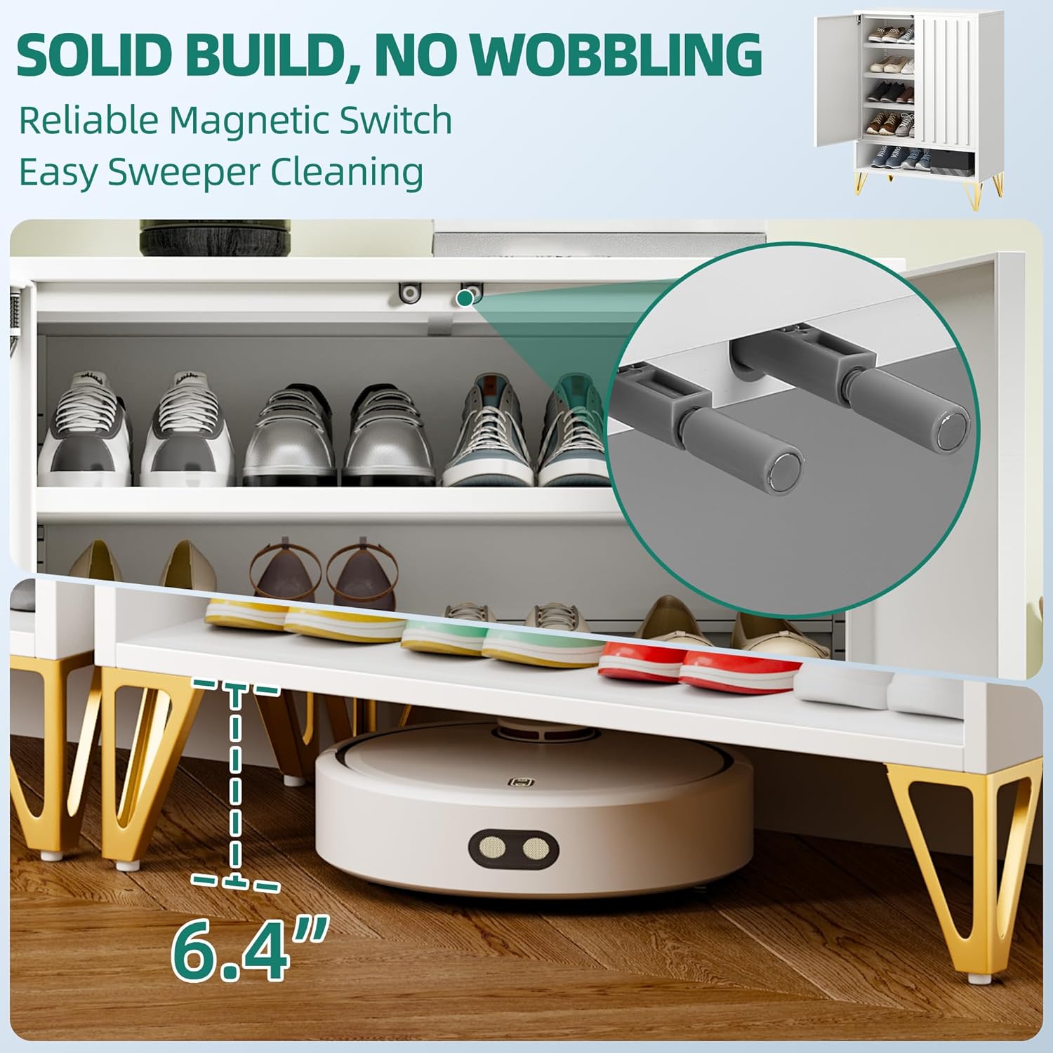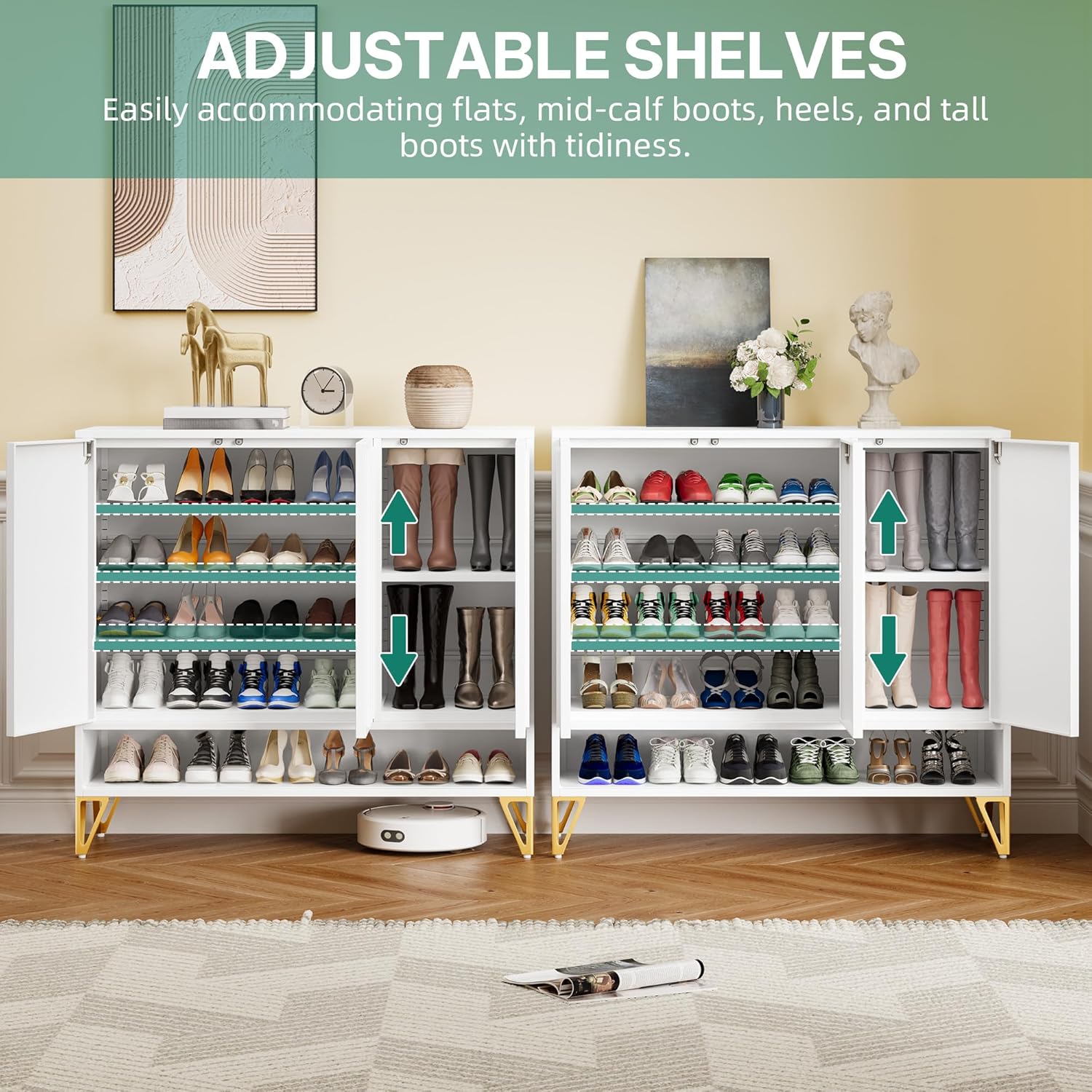 Maupvit Shoe Storage Cabinet with 2 Flip Louvered Doors, Freestanding Organizer with Metal Legs, Shoe Cabinet for Entryway, Narrow Shoe Rack Cabinet, White