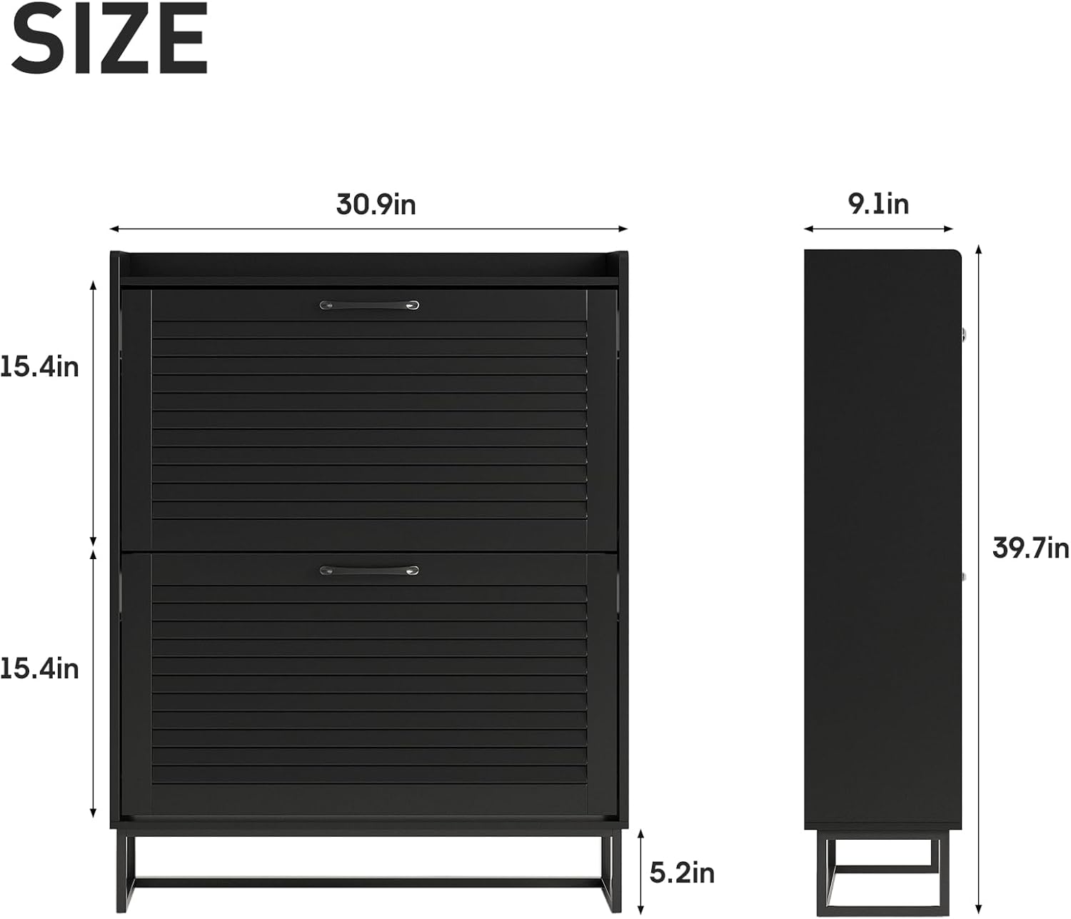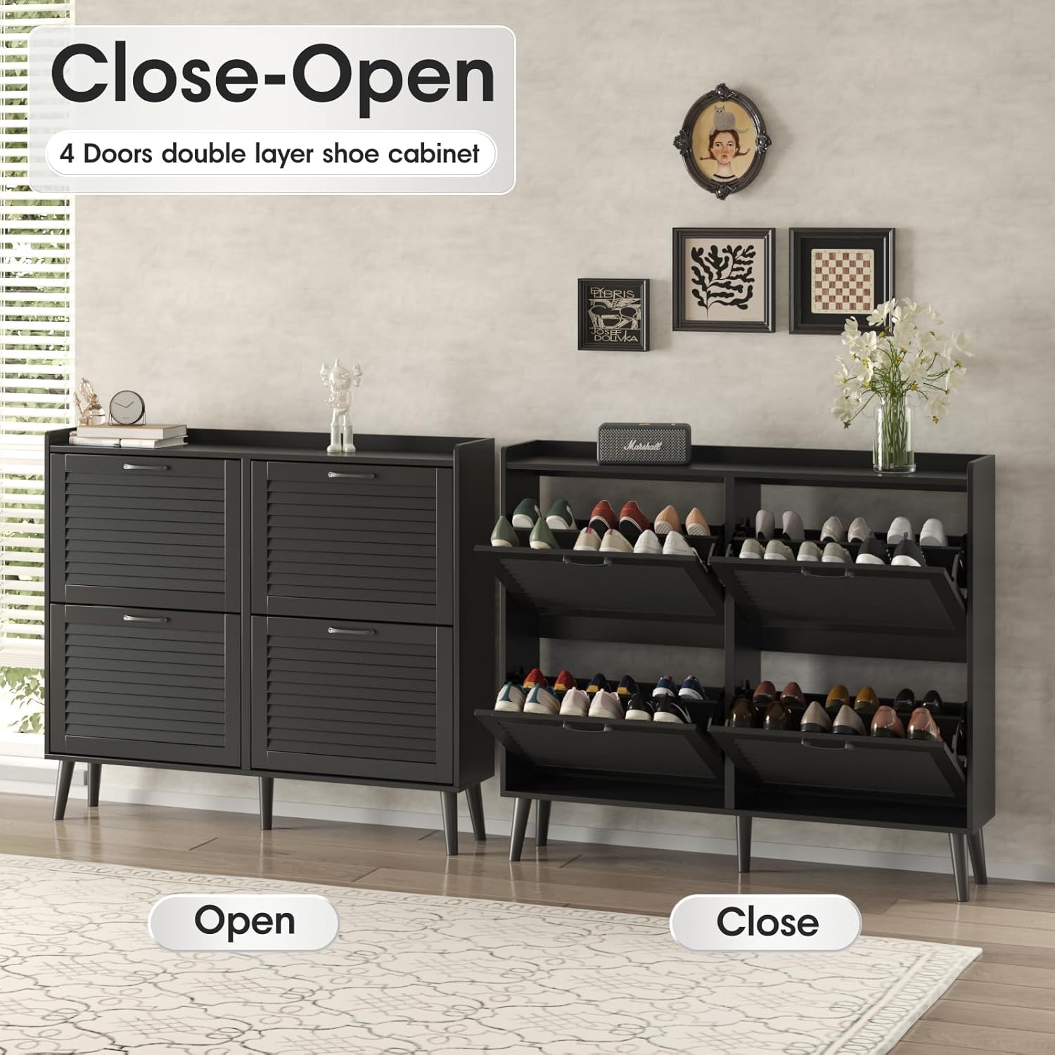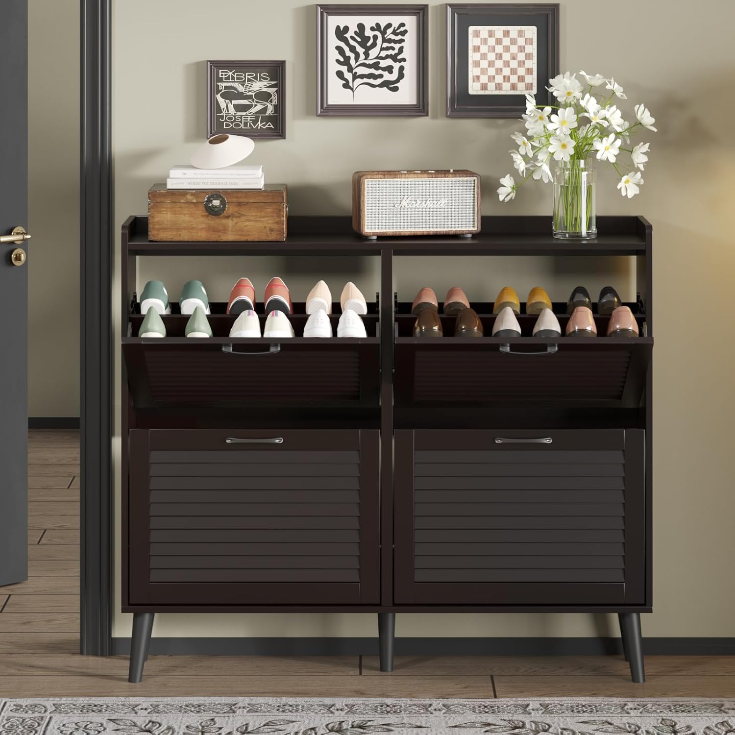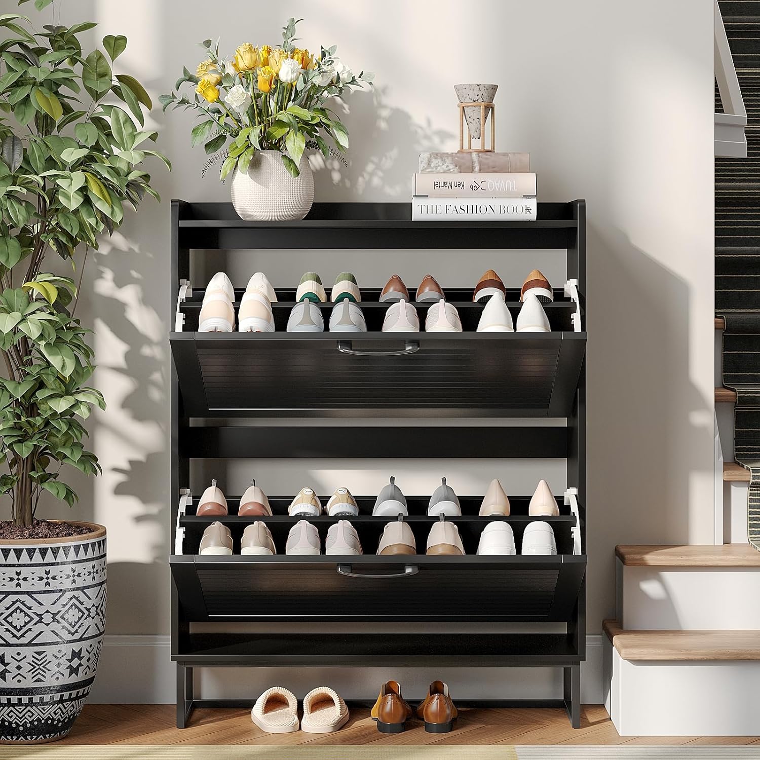 Maupvit Shoe Storage Cabinet with 2 Flip Louvered Doors, Freestanding Organizer with Metal Legs, Shoe Cabinet for Entryway, Narrow Shoe Rack Cabinet, Black