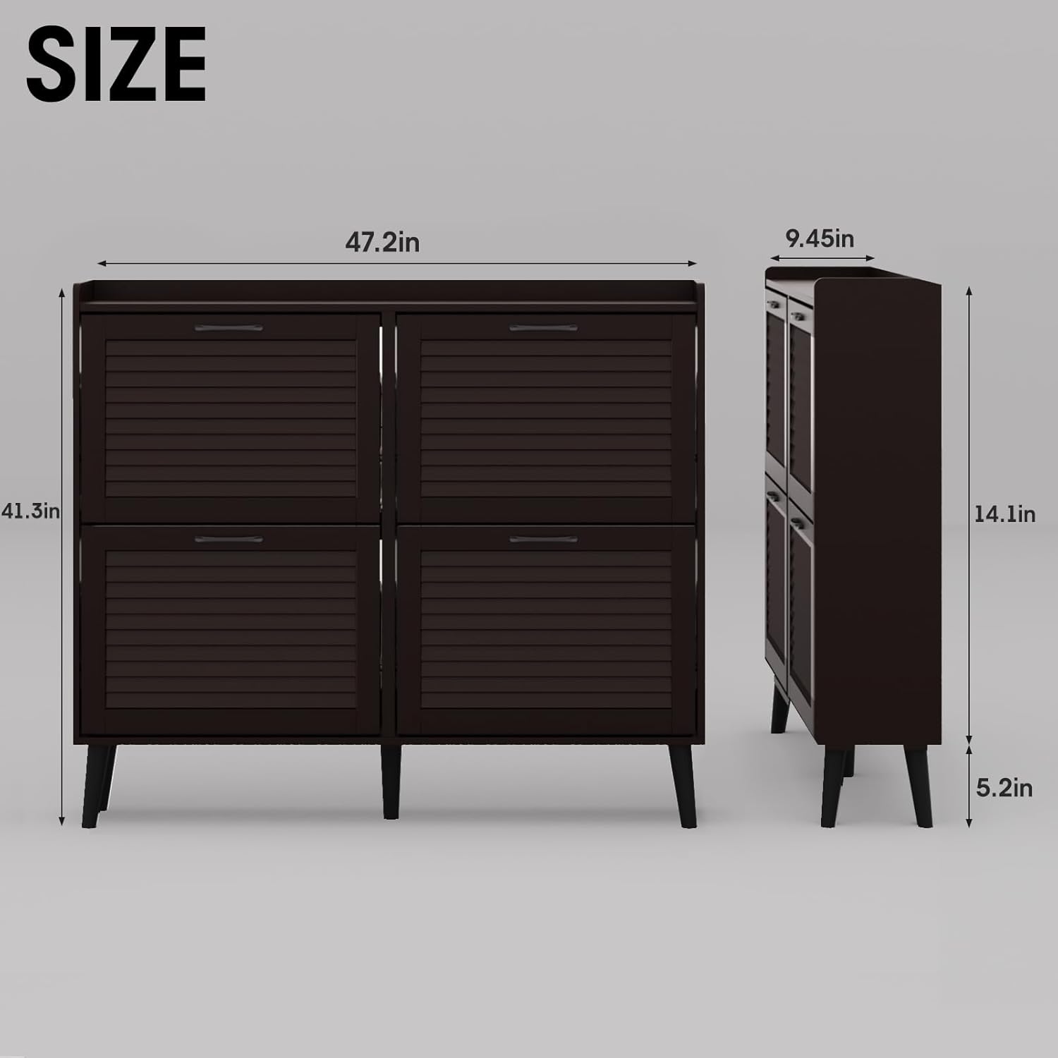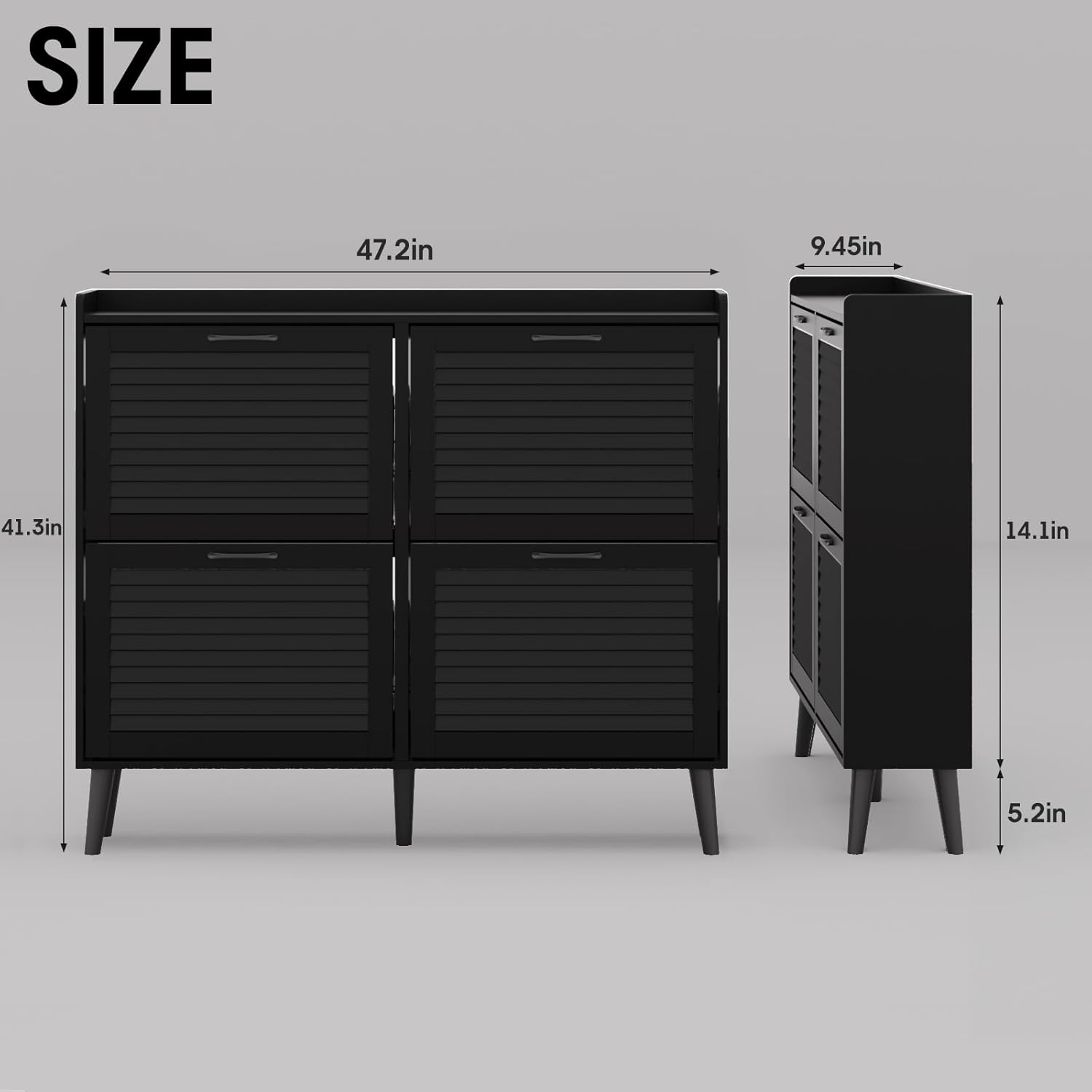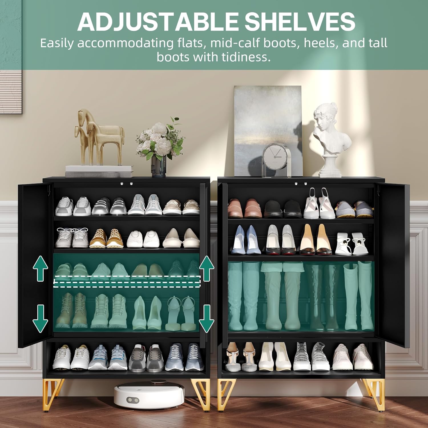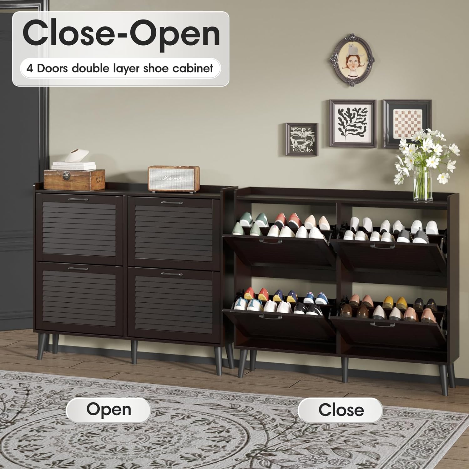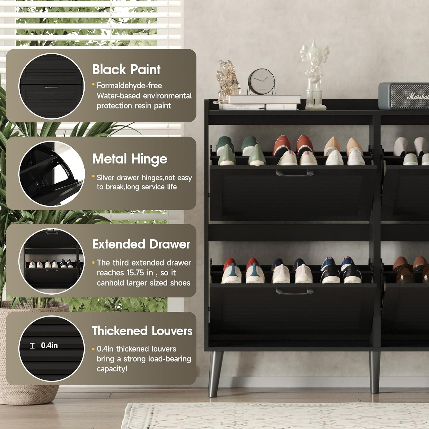 Maupvit Shoe Storage Cabinet with 2 Flip Louvered Doors, Freestanding Organizer with Metal Legs, Shoe Cabinet for Entryway, Narrow Shoe Rack Cabinet, Black