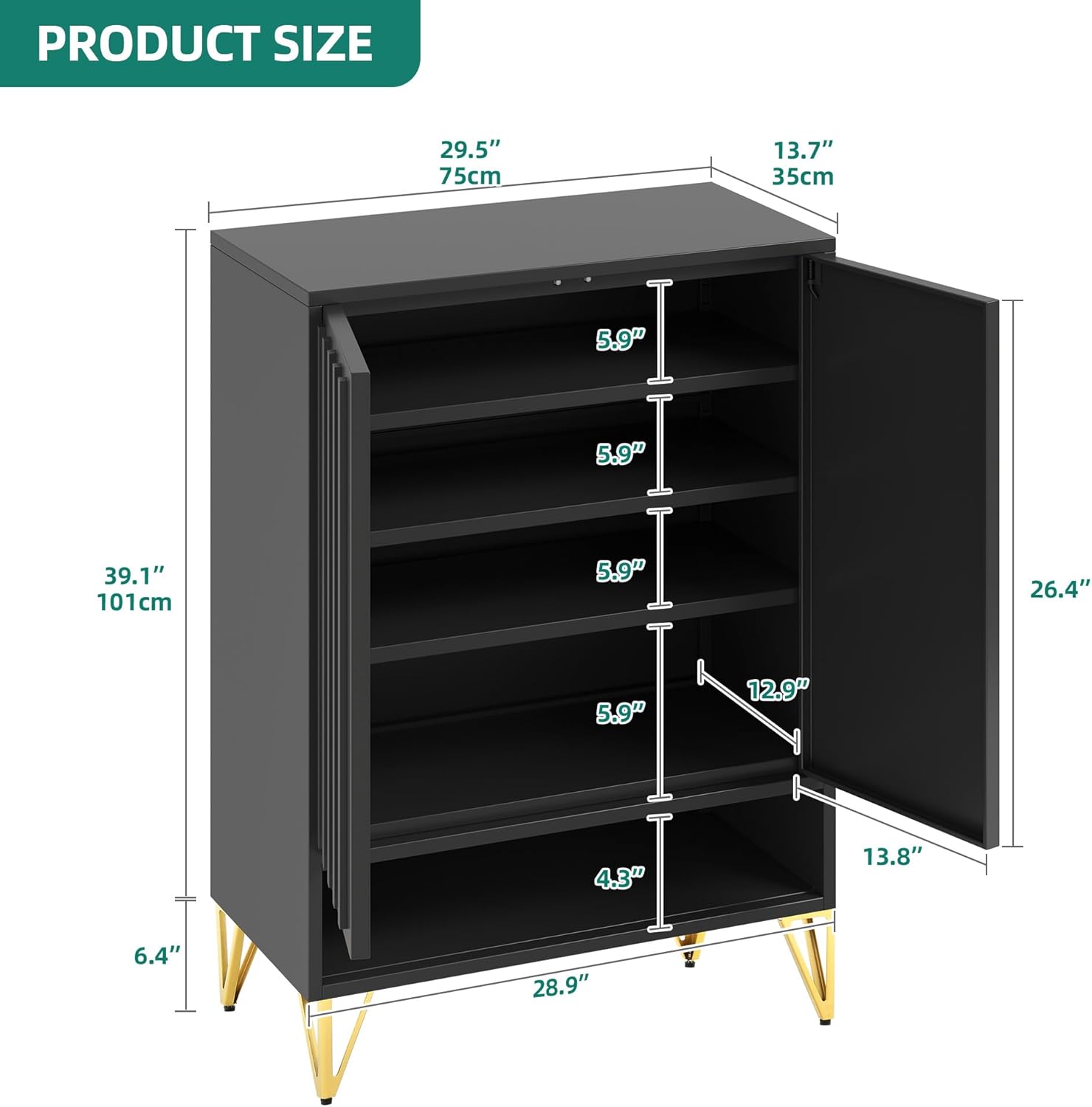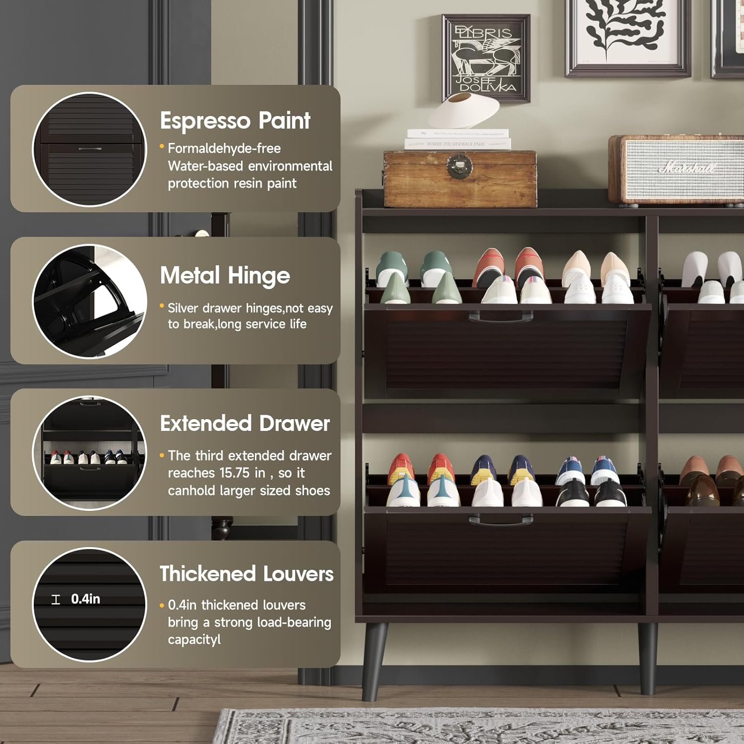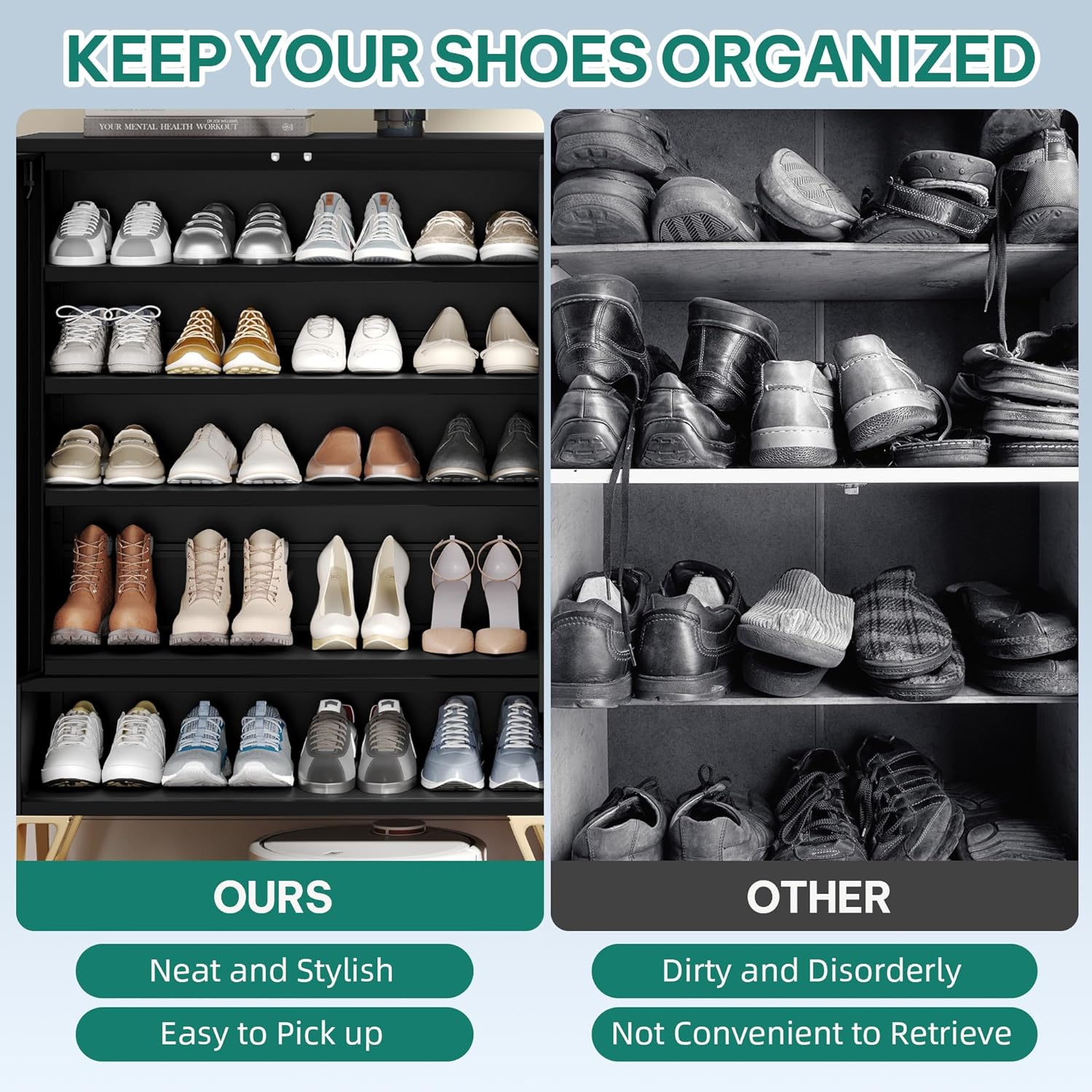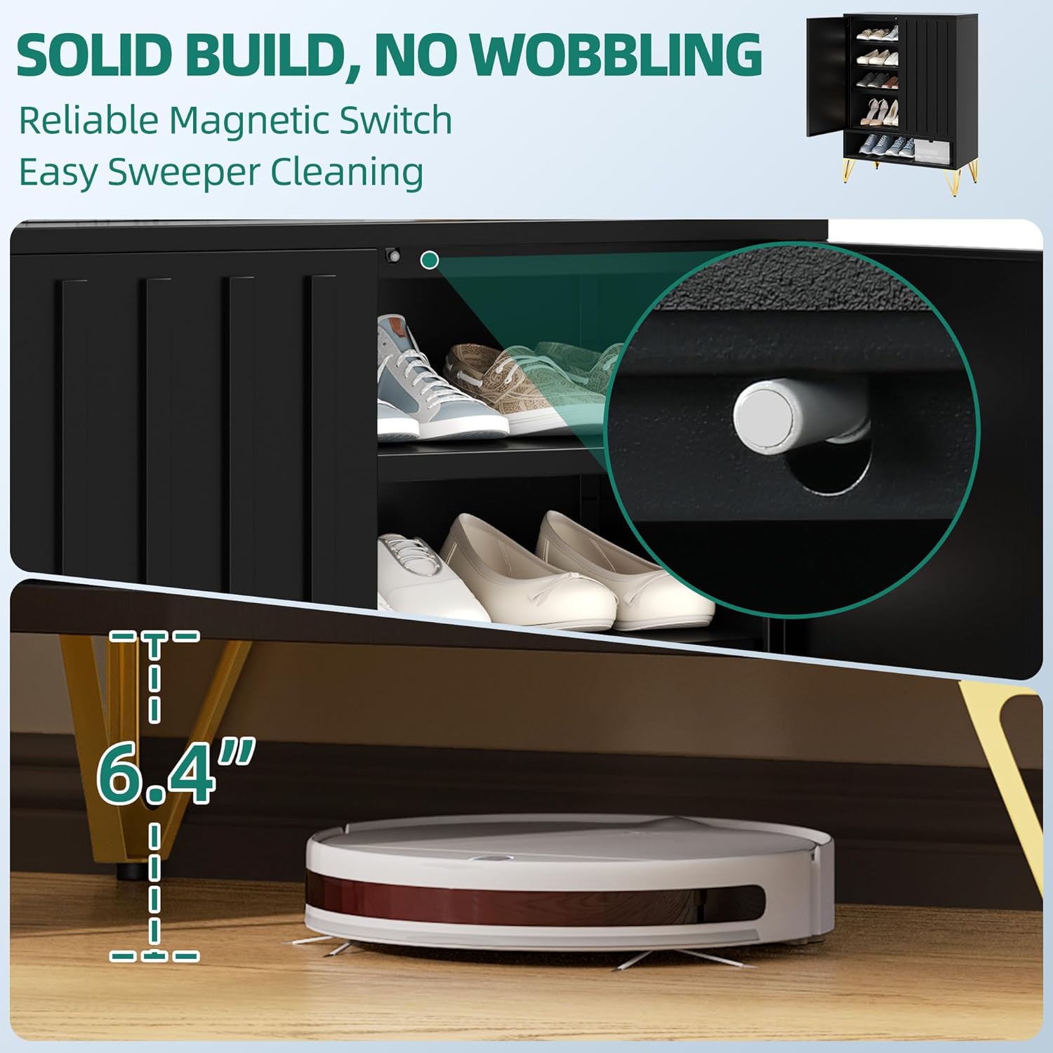 Maupvit Shoe Storage Cabinet with 2 Flip Louvered Doors, Freestanding Organizer with Metal Legs, Shoe Cabinet for Entryway, Narrow Shoe Rack Cabinet, Black