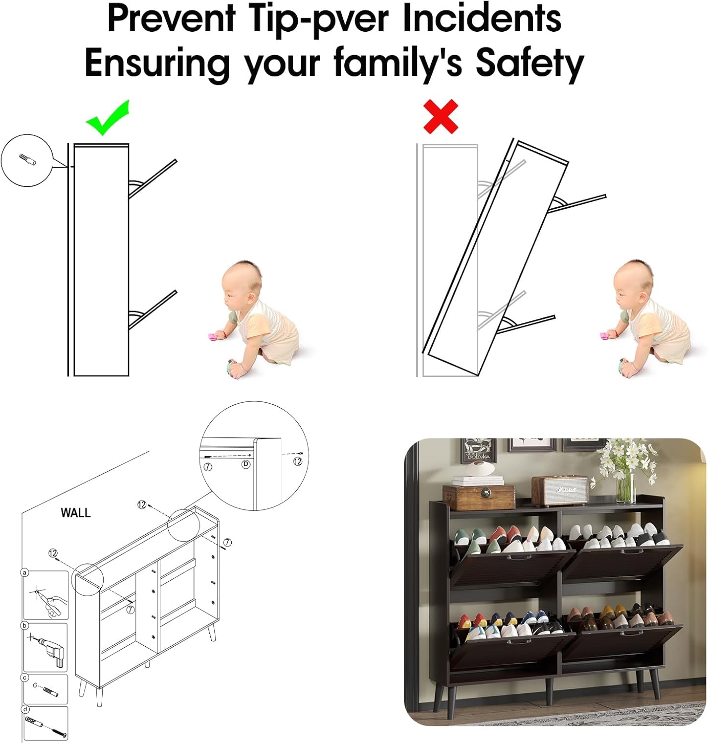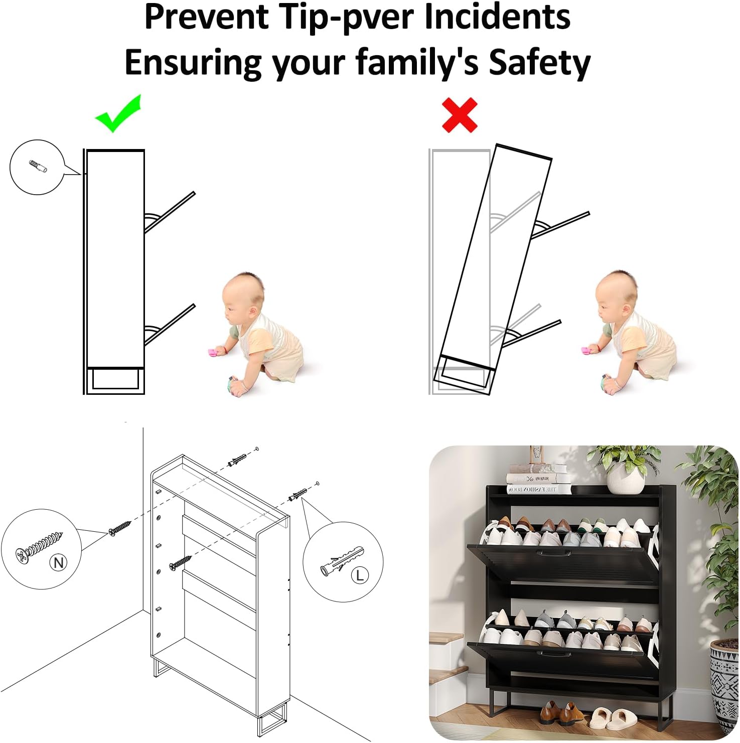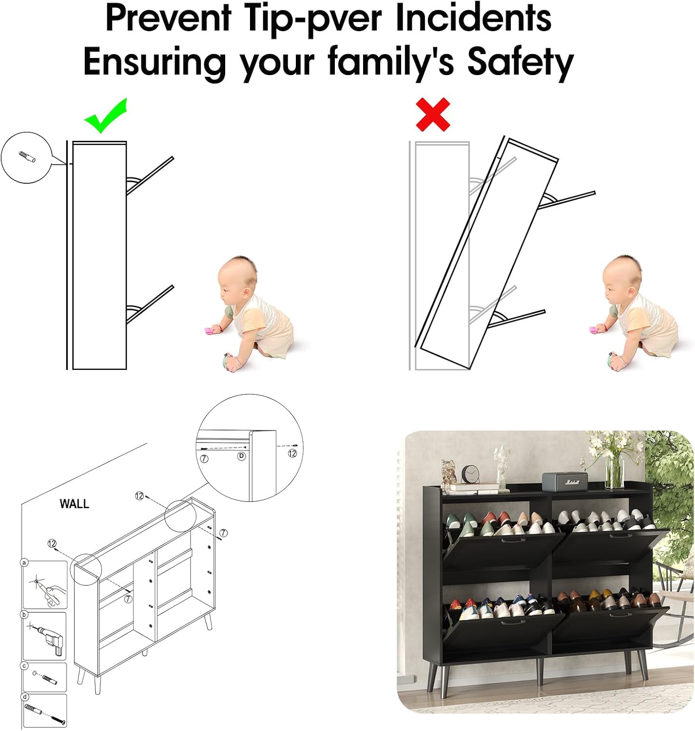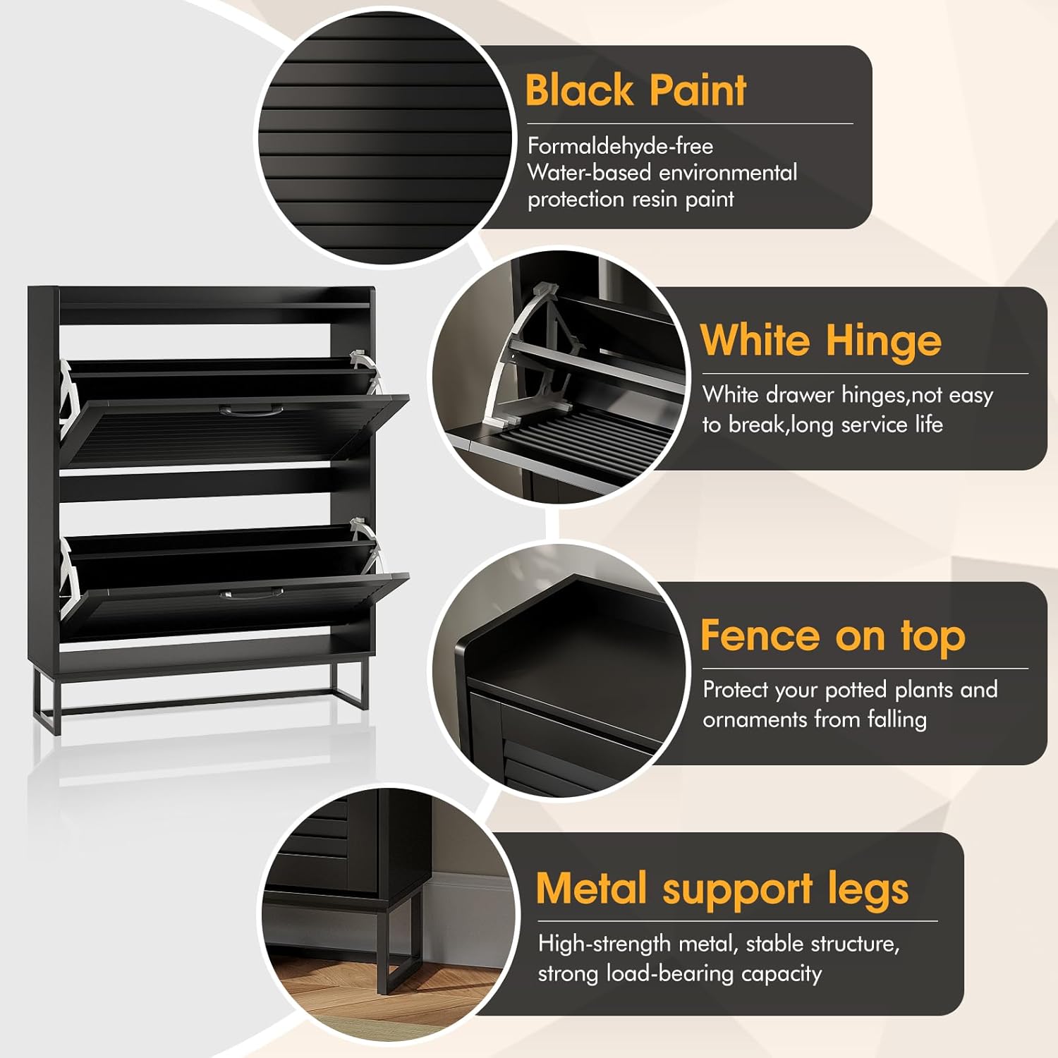 Maupvit Shoe Storage Cabinet with 2 Flip Louvered Doors, Freestanding Organizer with Metal Legs, Shoe Cabinet for Entryway, Narrow Shoe Rack Cabinet, Black