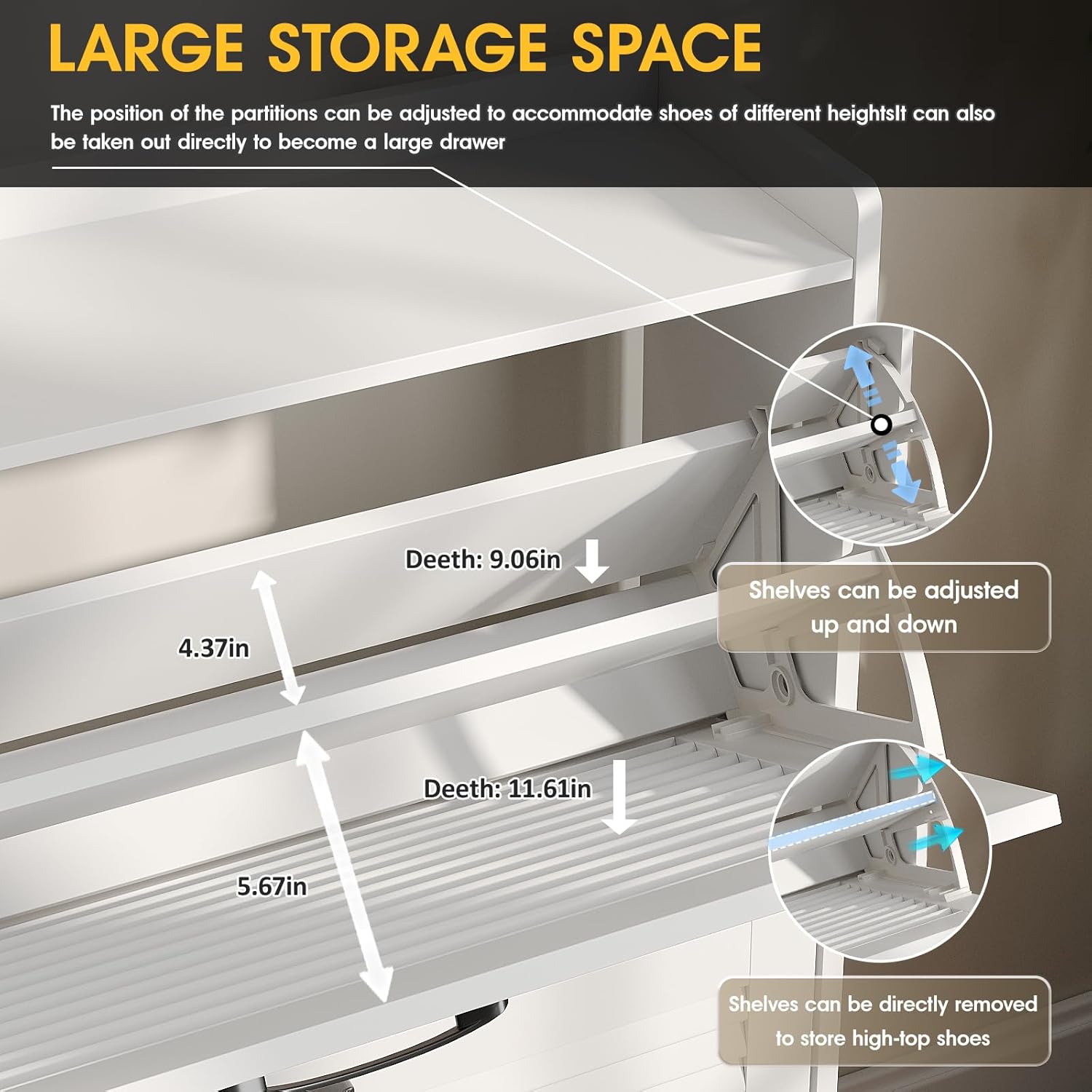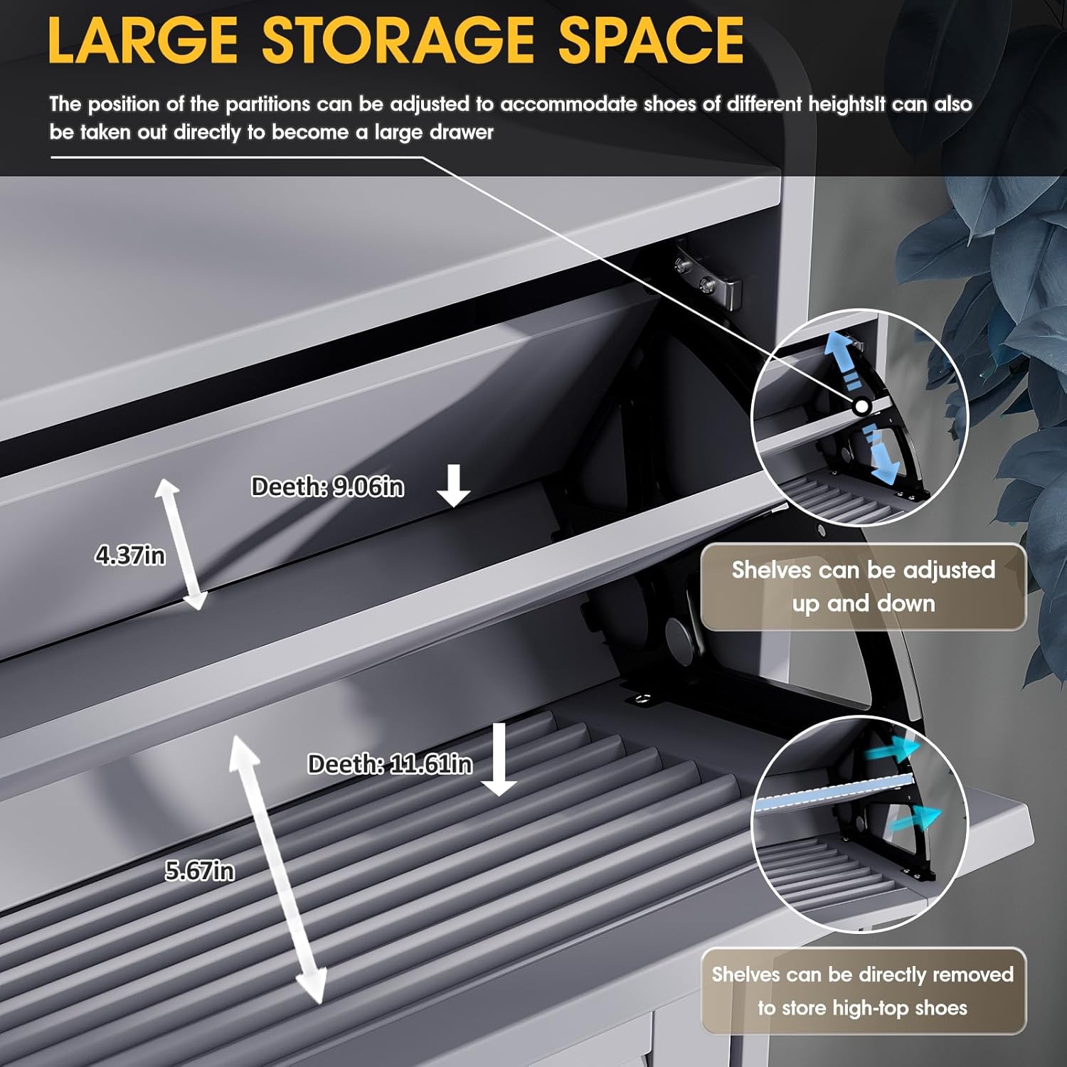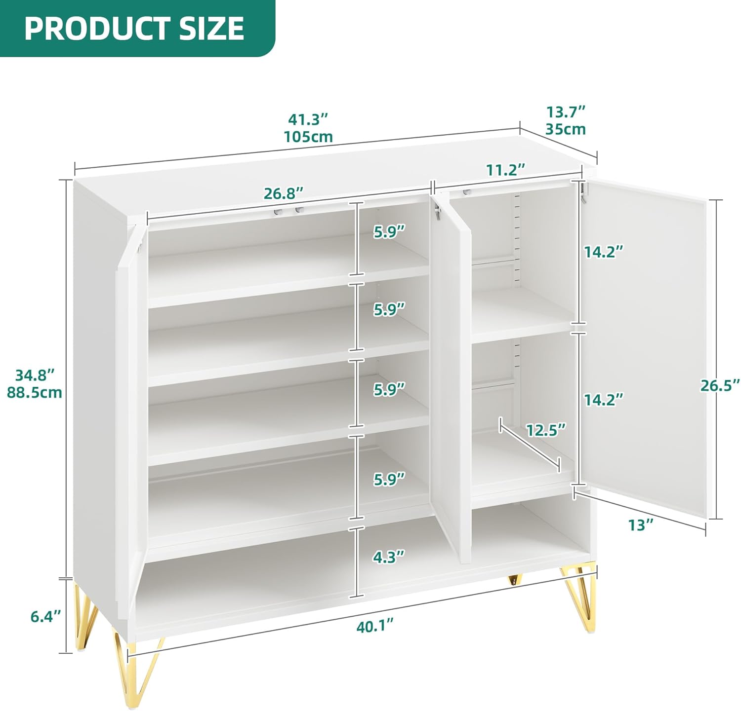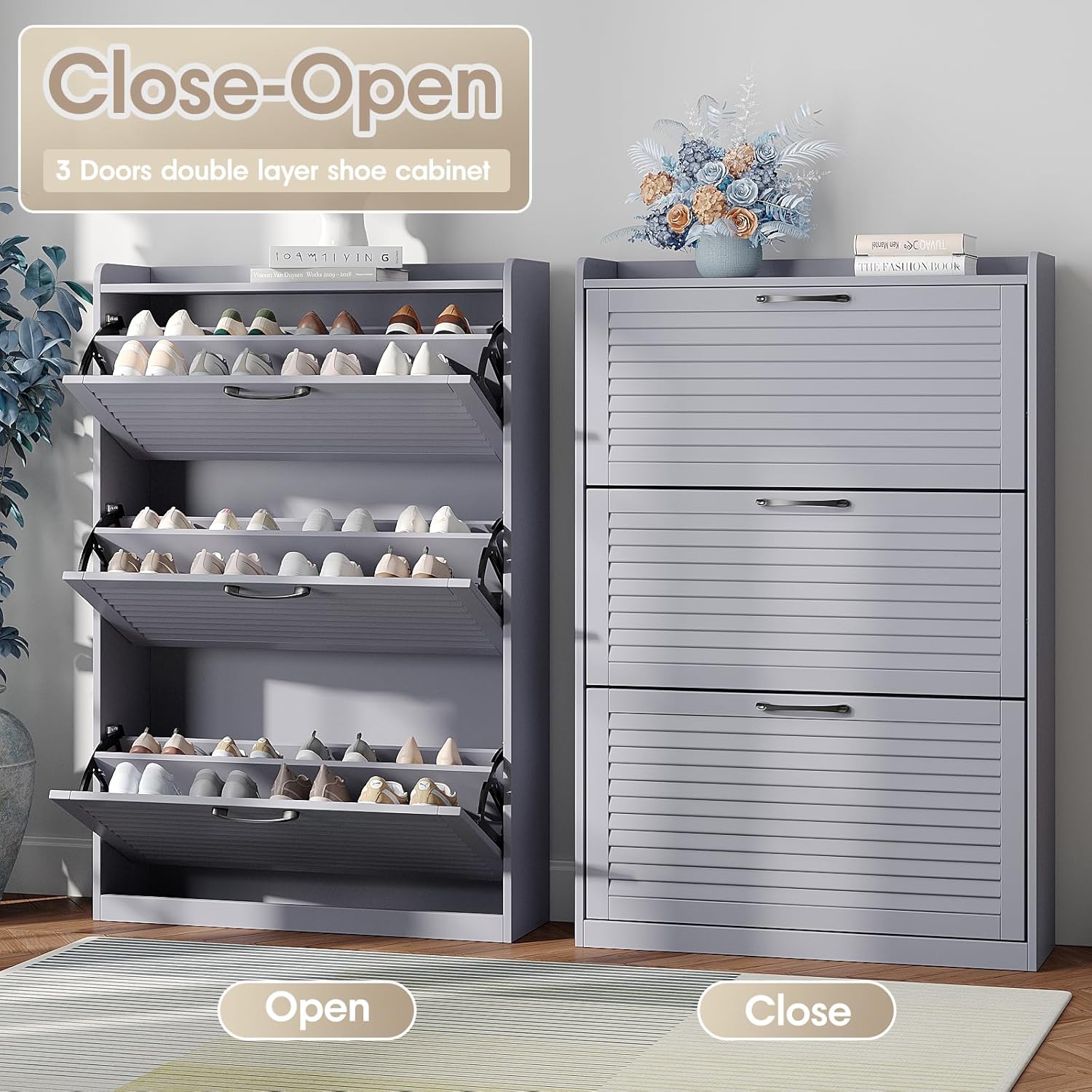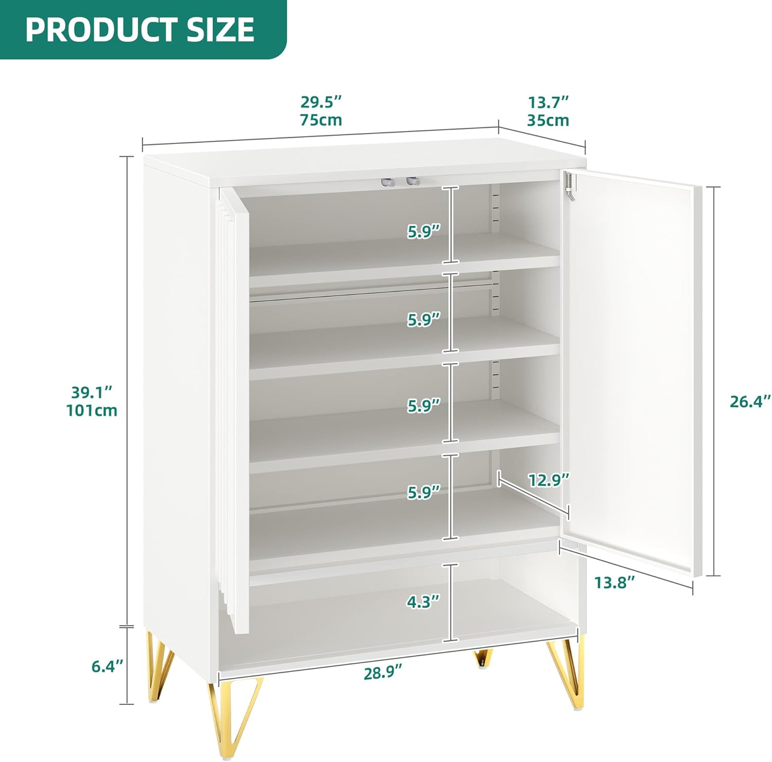 YITAHOME Shoe Storage Cabinet with Adjustable Shelves, 5-Tier Steel Shoe Cabinets with 3 Doors, Modern Fluted Free Standing Shoe Organizer, Shoe Rack Cabinet for Entryways, Hallways, Living Room,White
