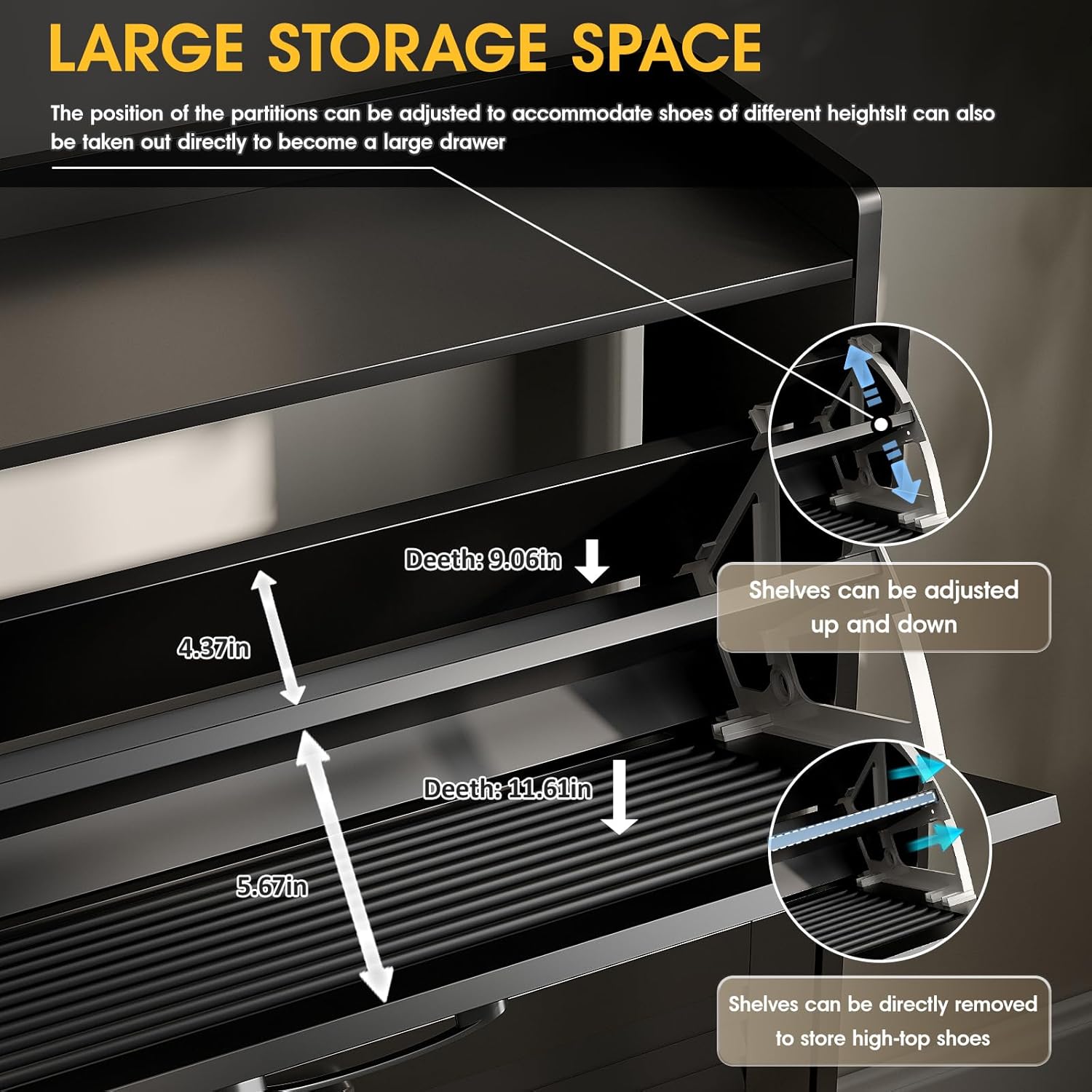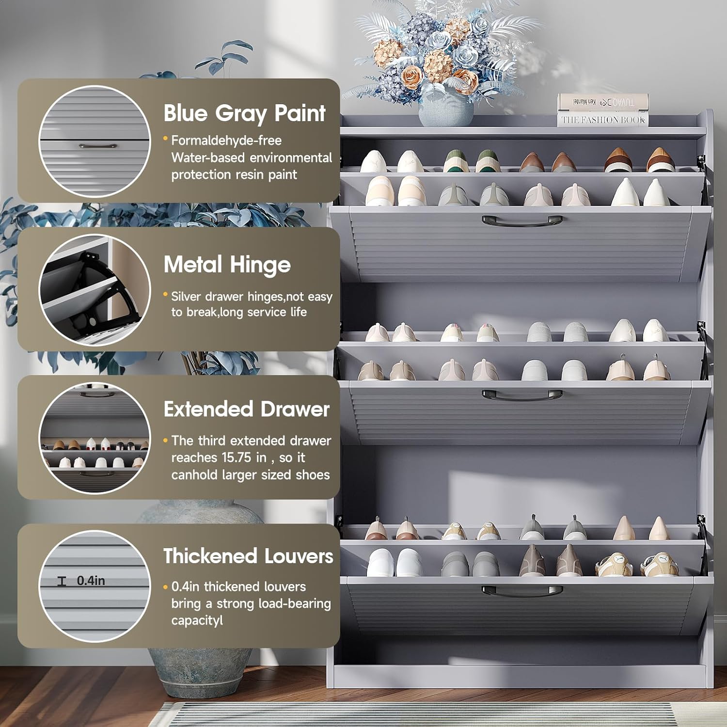 IDEALHOUSE Rattan Shoe Cabinet, 3 Tier Shoe Cabinet with Flip Drawers, Free Standing Narrow Shoe Storage Organizer with Adjustable Shelves, Shoe Rack Cabinet for Entryway, Fence On Top, Brown Burl
