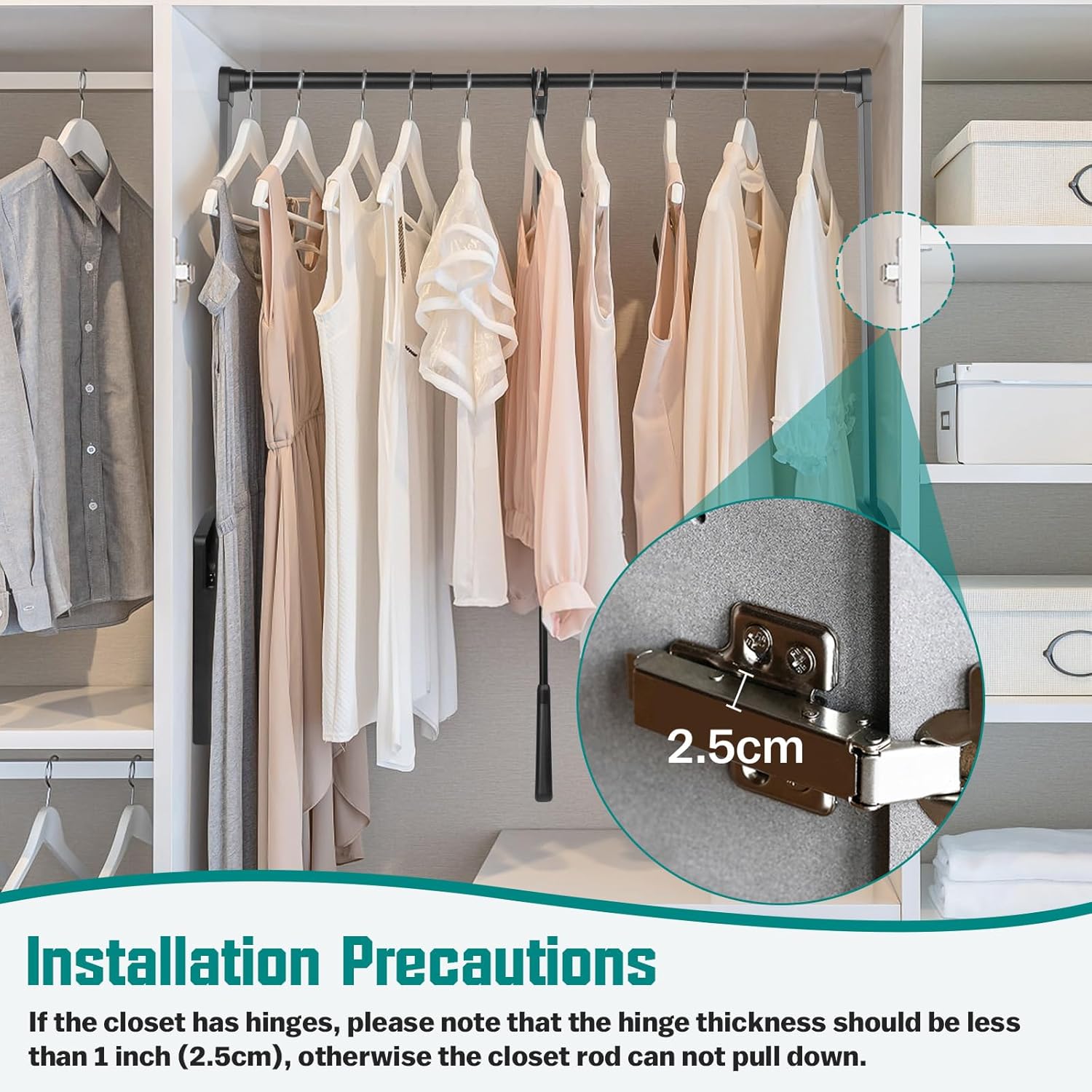 Put Down Closet Rod 2 Pack, Adjustable 26-35 Inch Wardrobe Lift Rail Organizer Two-way Buffering Heavy Duty Wardrobe Hanger for Cabinet, Organizer Storage System Side Mounted, 33 lbs Load Capacity