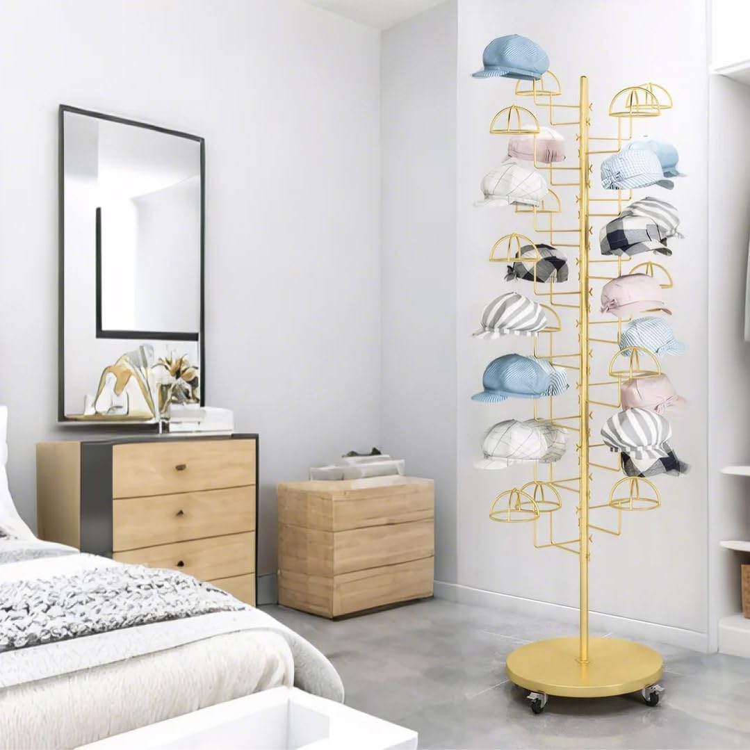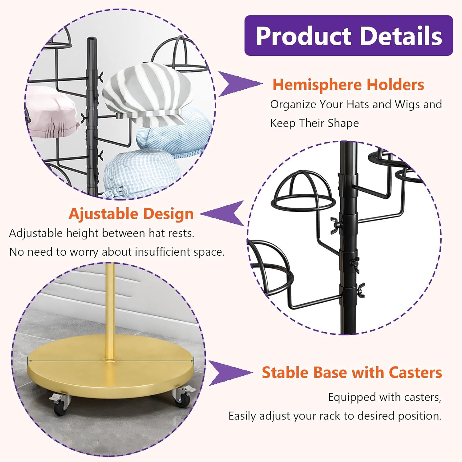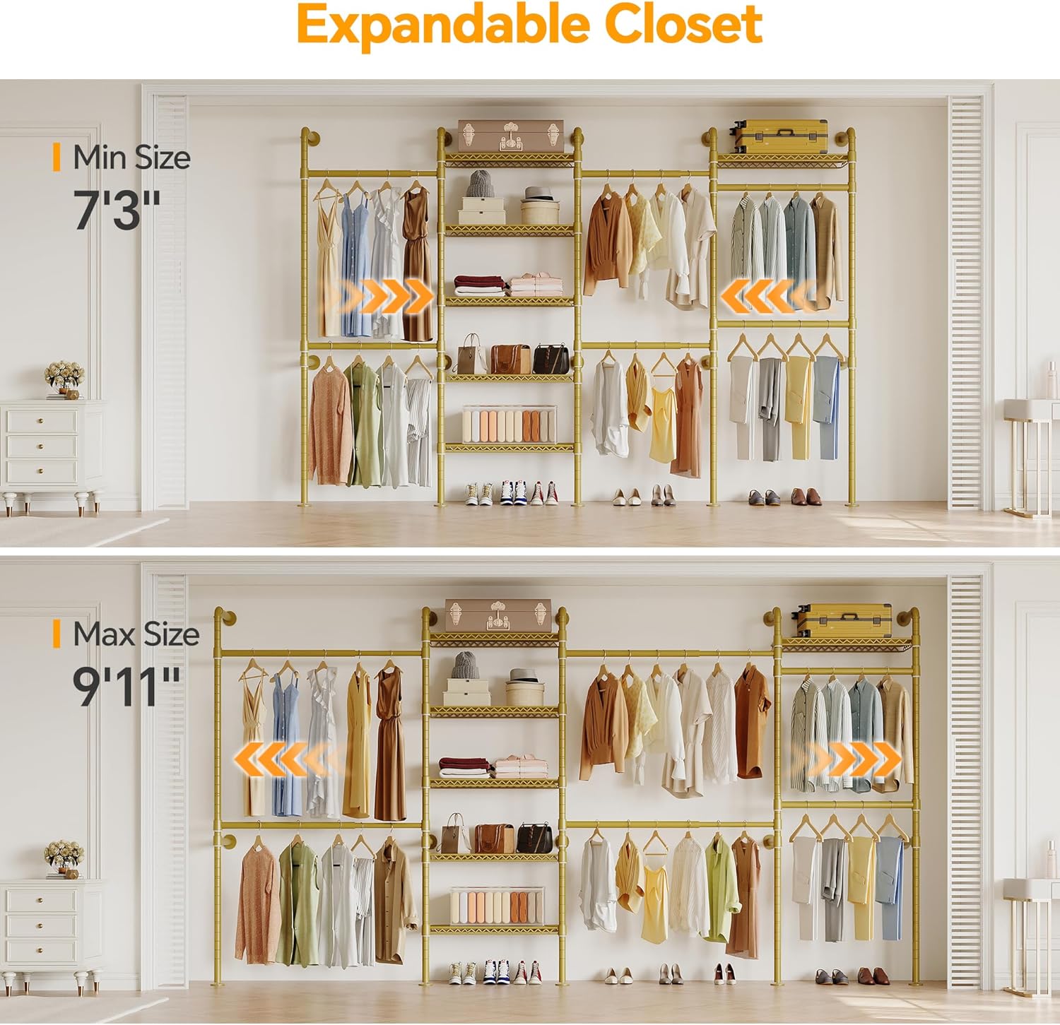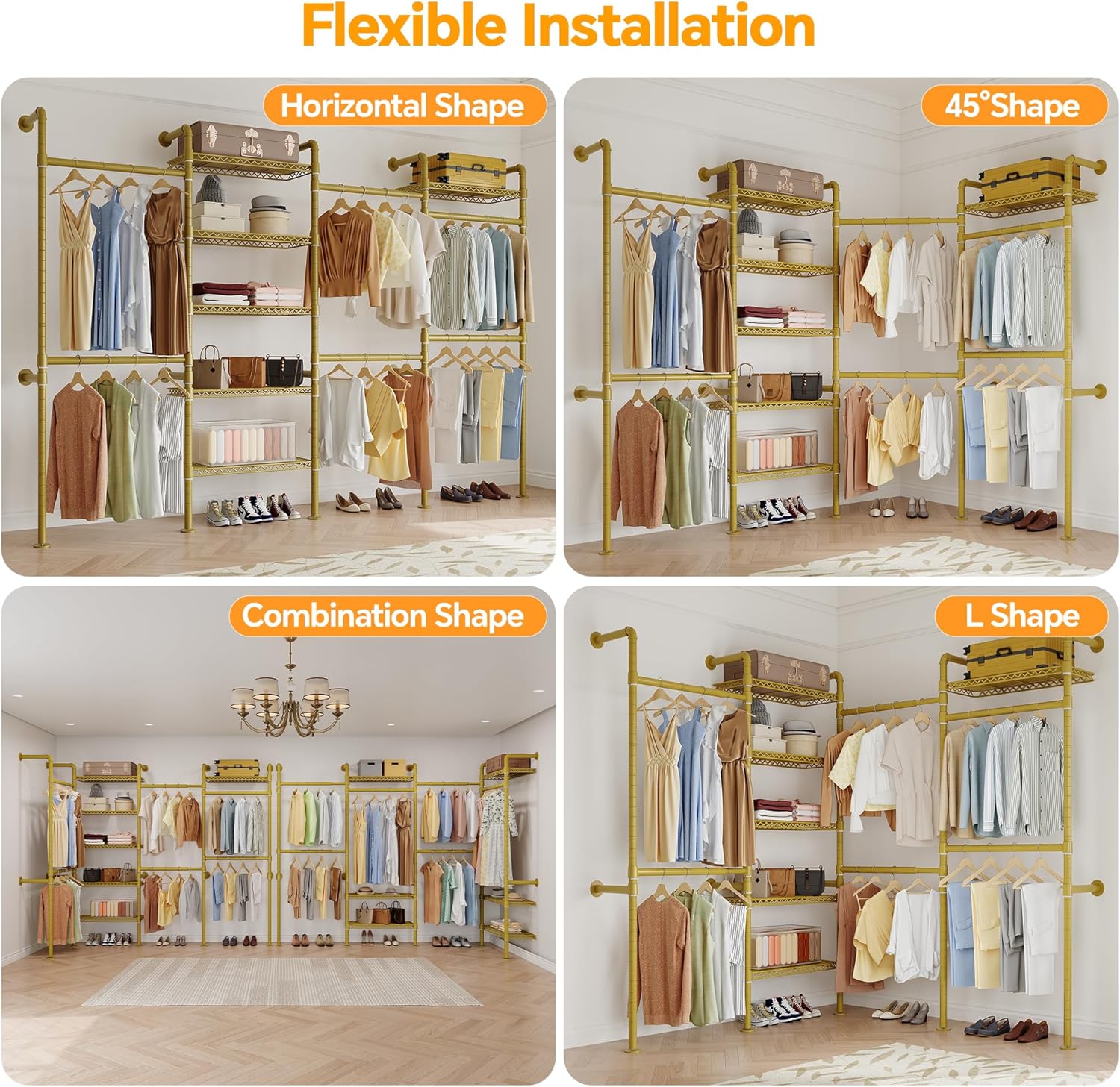 Clothing Rack Gold, Industrial Clothes Rack for hanging Clothes with Double Shelves Freestanding Multi-functional Heavy Duty Garment Rack, Metal Movable Coat Rack for Organizing Clothes Shoes