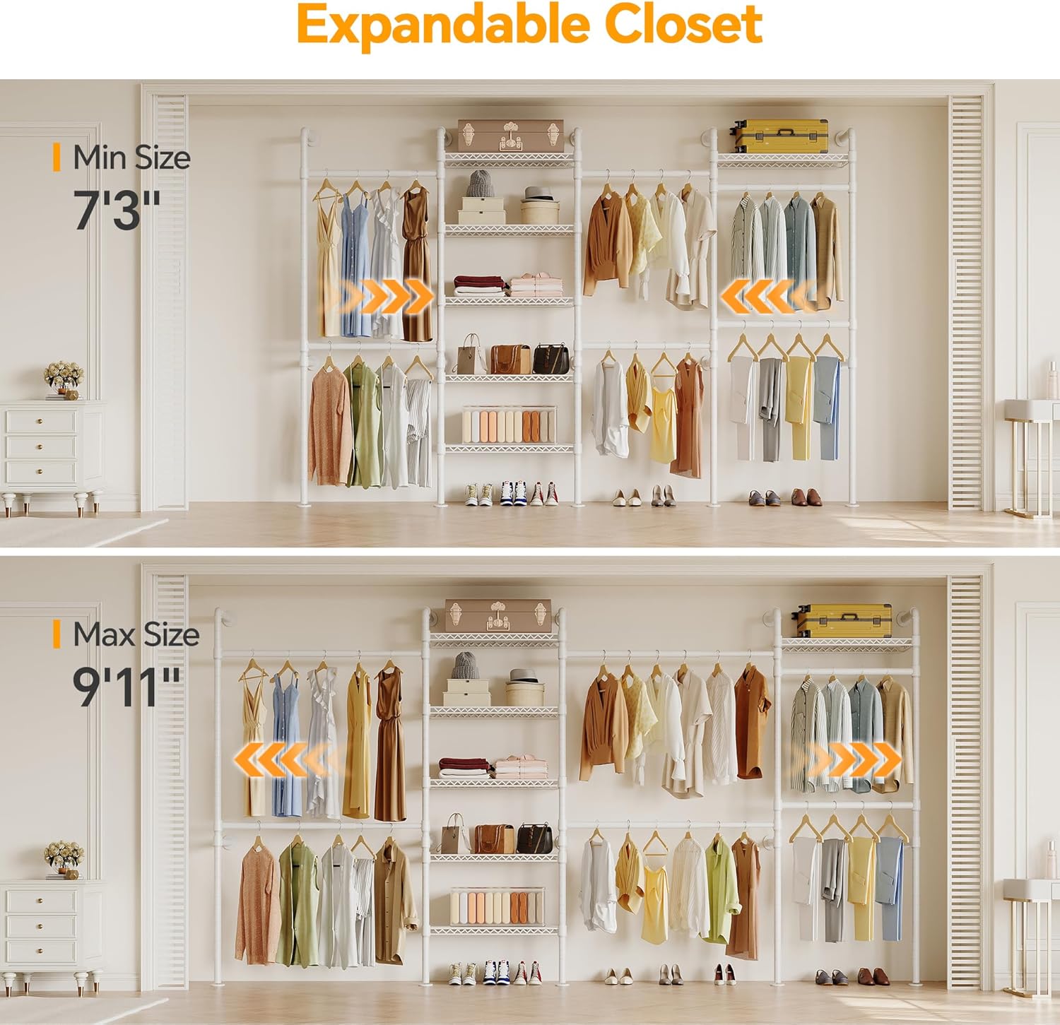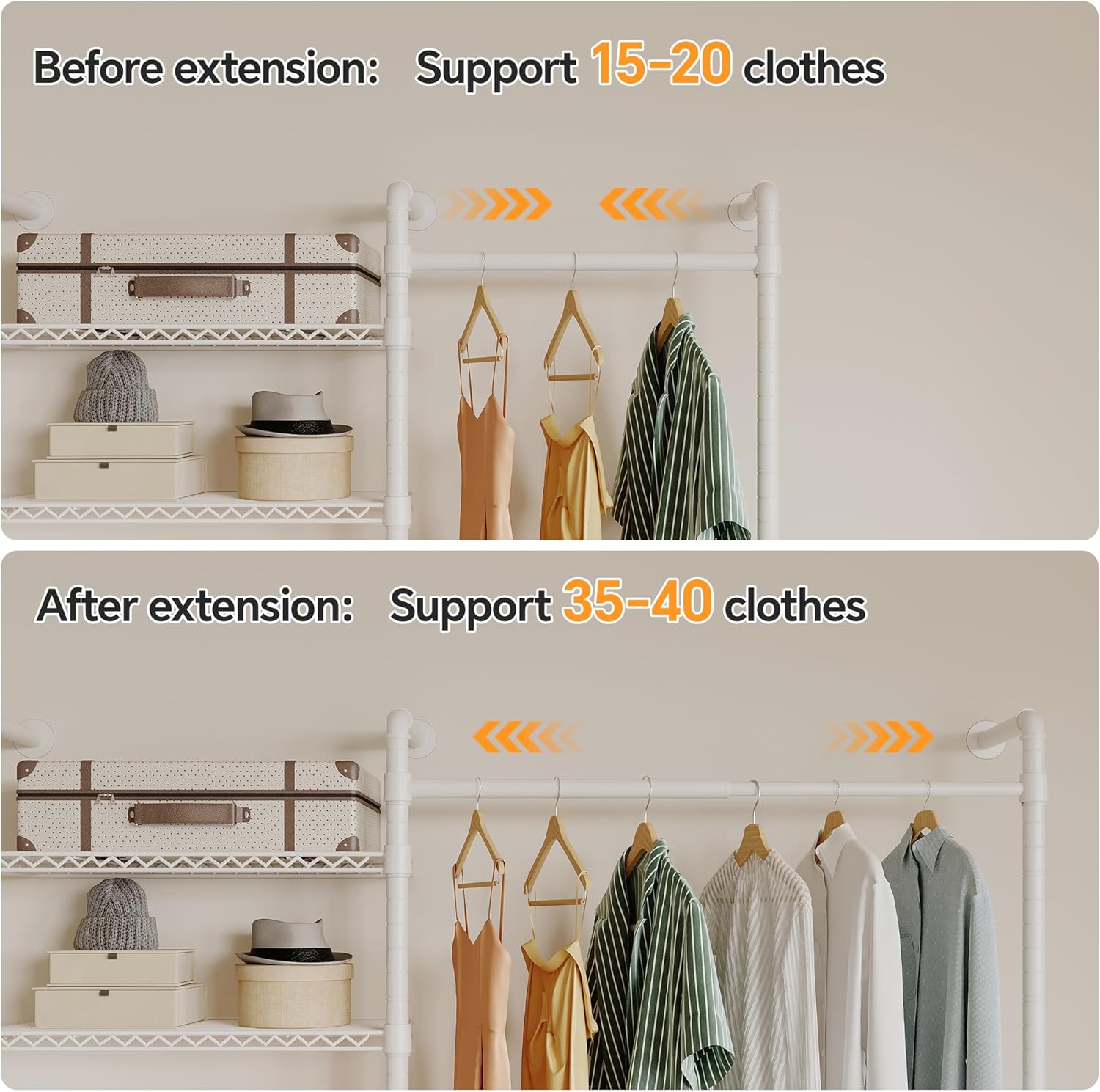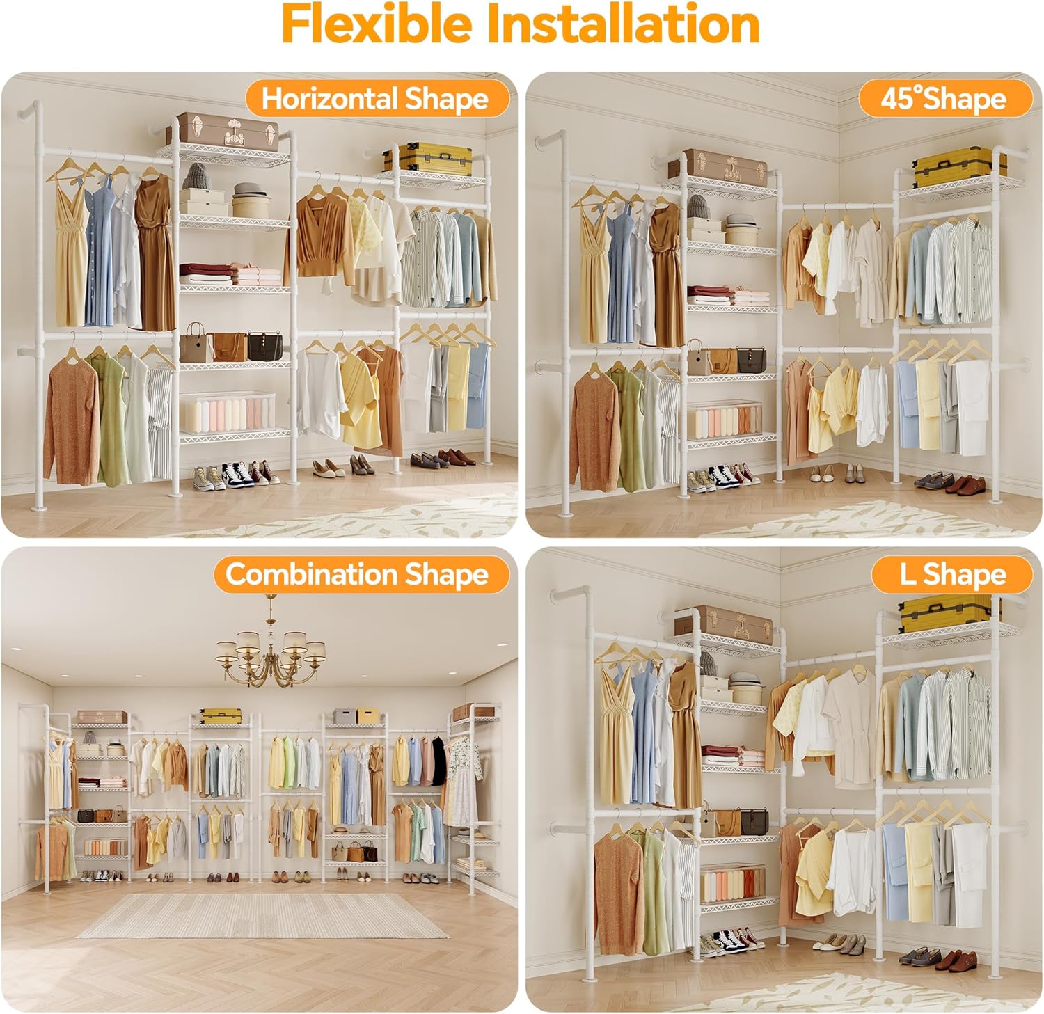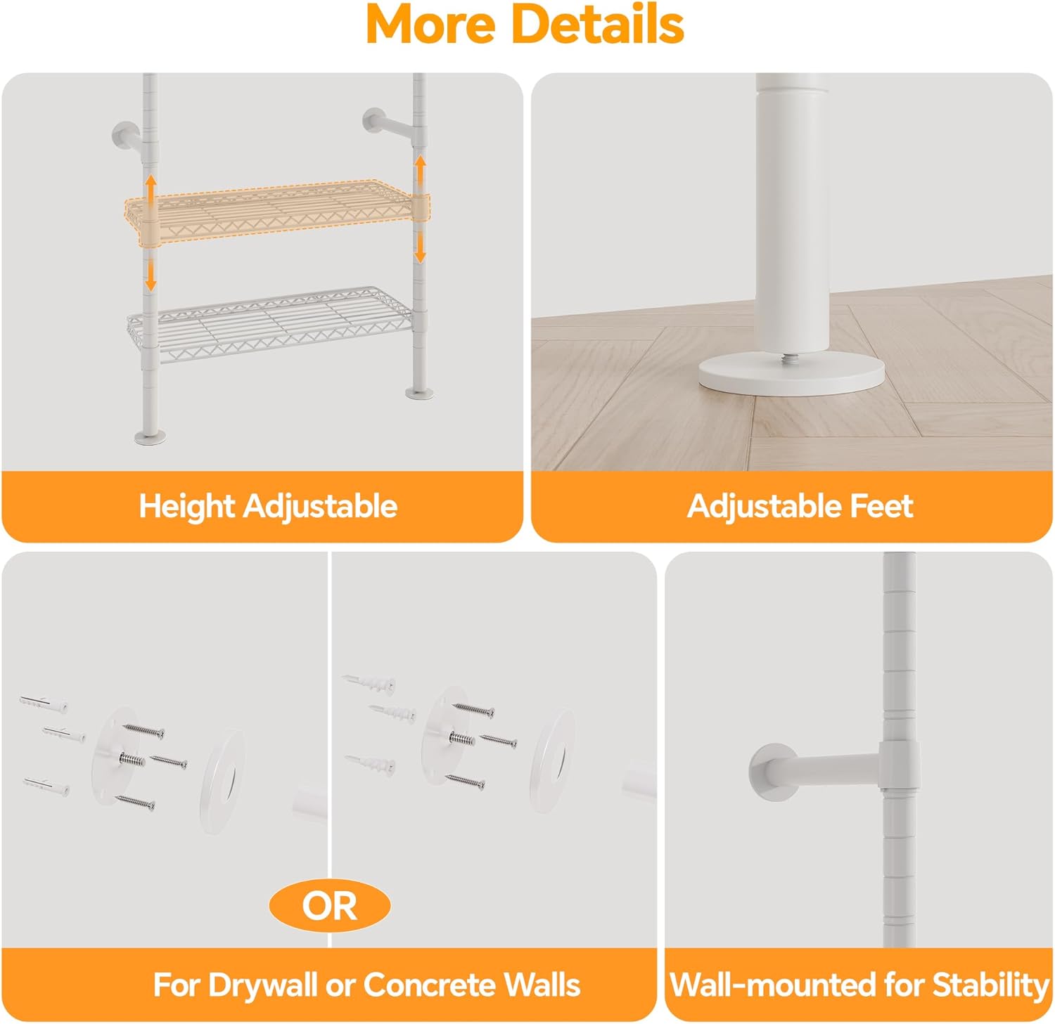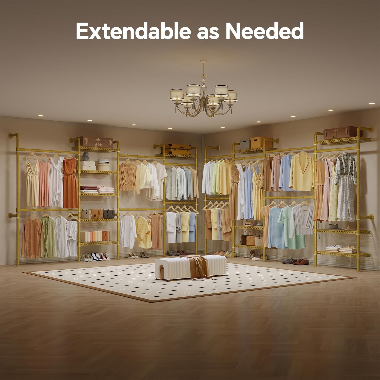 W4 Industrial Pipe Clothing Rack Wall Mounted Closet System Expandable Clothes Rack for Hanging Clothes, Heavy Duty Garment Rack Adjustable for Walk in Closet, Black