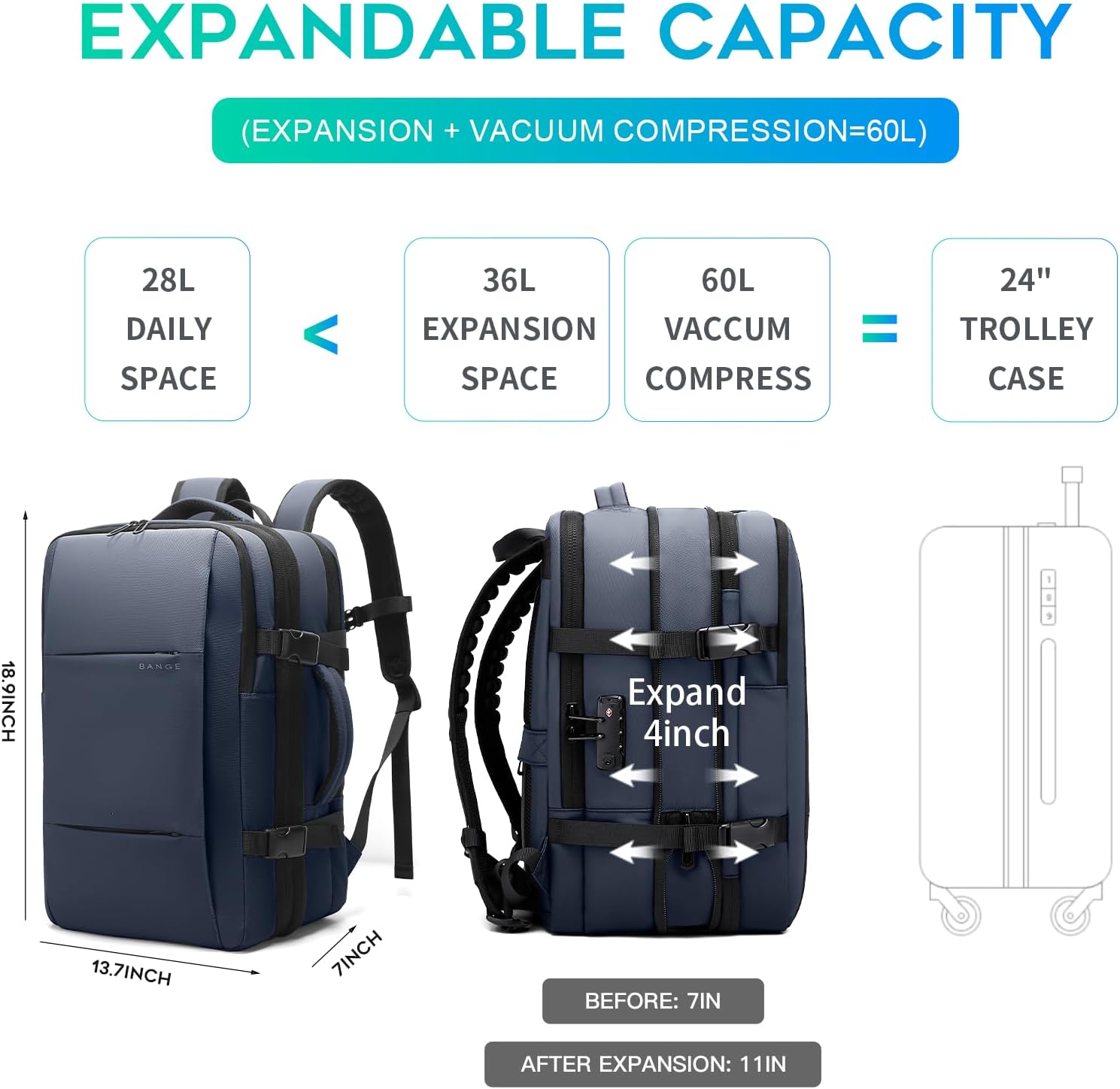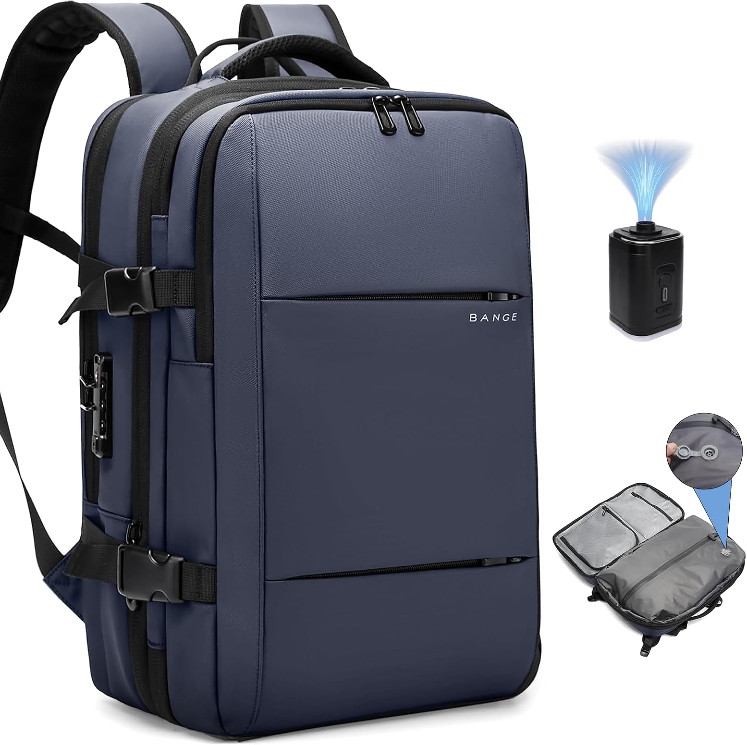 BANGE Air Vacuum Backpack with Pump,Air Packing Vacuum System Compression Back Pack, Expandable Anti Theft Backpack for Business Traveling